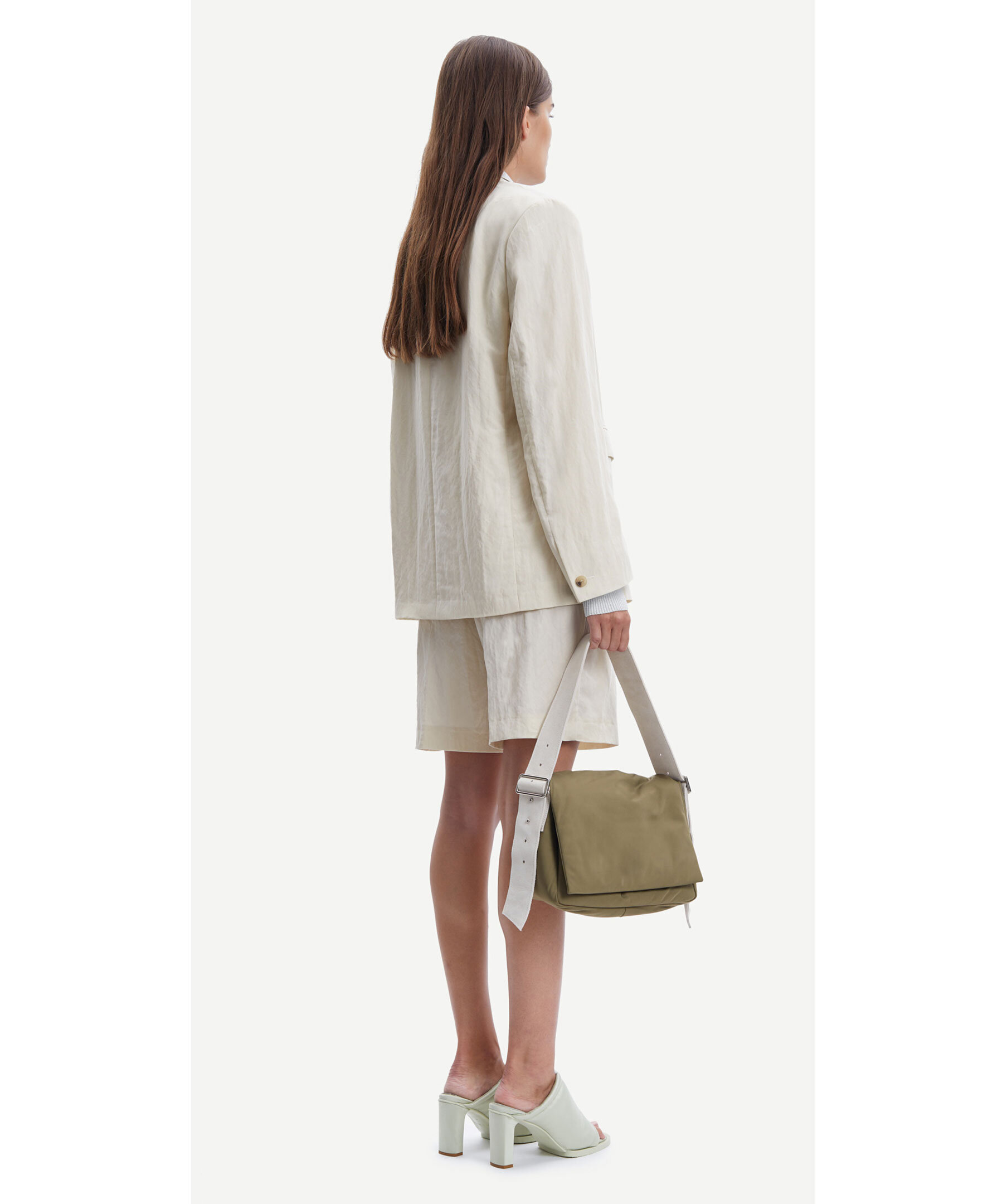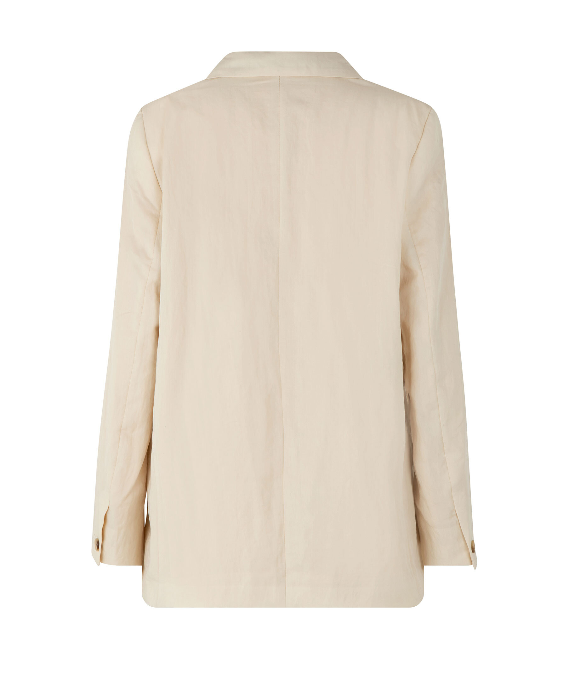 Benvit kavaj från Samsoe Samsoe. Stängs framtill med enkel knäppning. Två fickor framtill med lock. Enkla manschetter. Kavajen har en lätt rynkad textur.