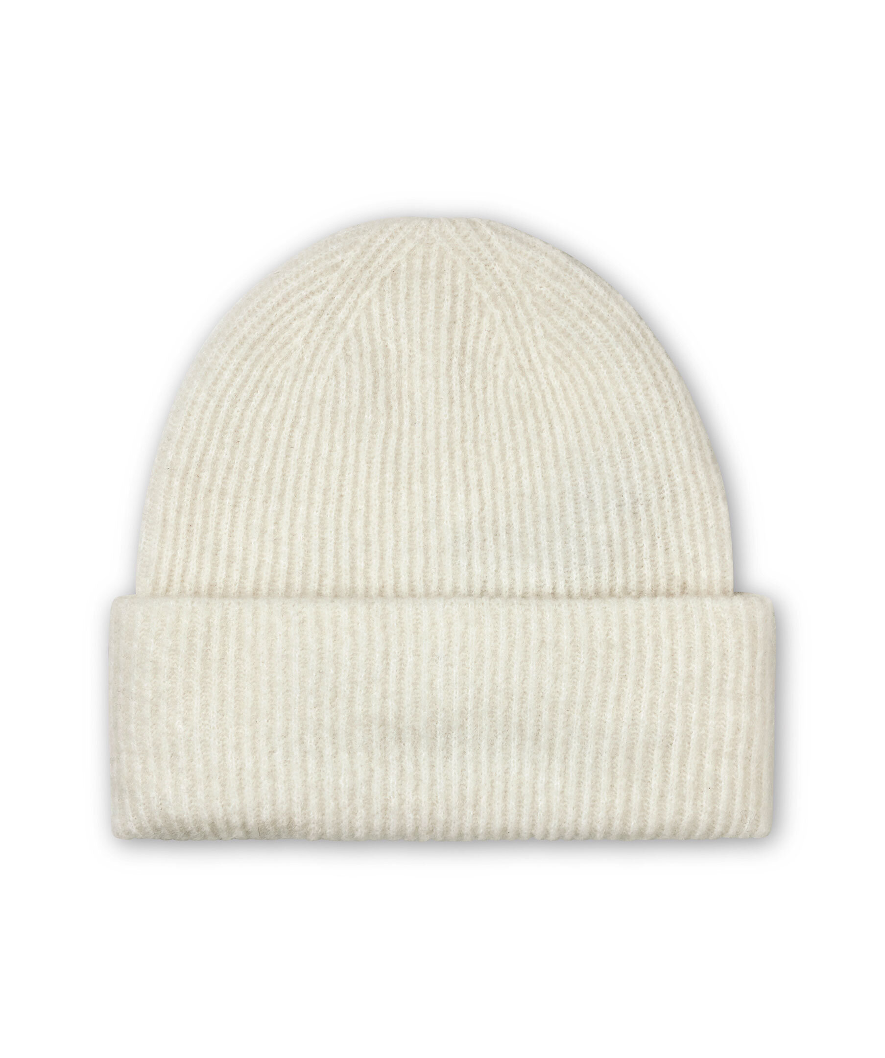 Ljusgrå melerad, stickad mössa från Samsoe Samsoe i varm och skön ullmix. Har en uppvikt kant och är ribbstickad.