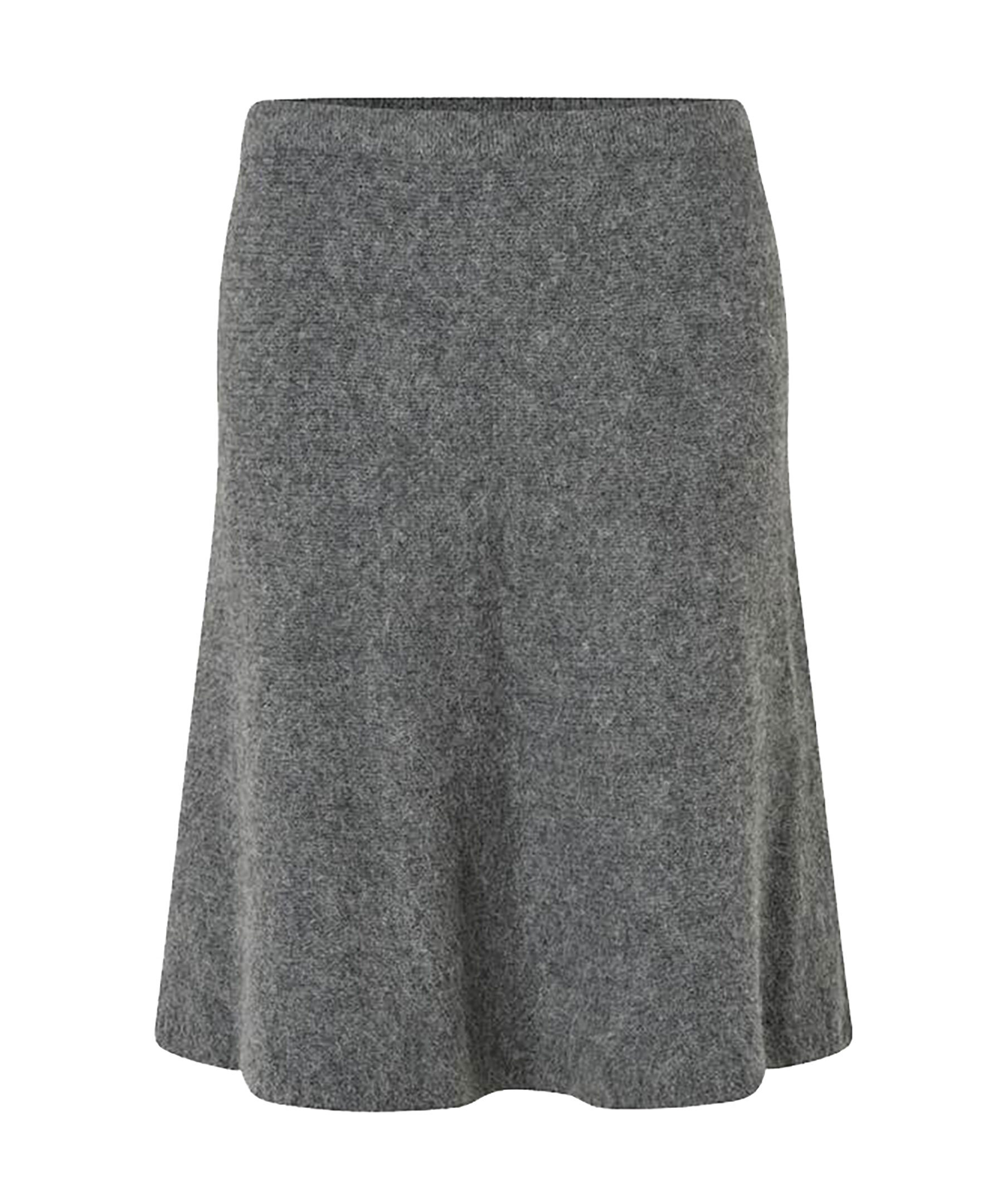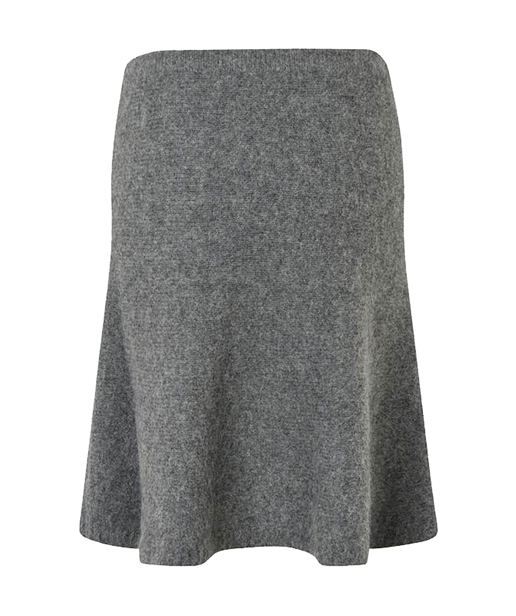 Grå stickad kjol från Samsoe Samsoe. Midi kjol med en regular fit i A-linje. Kjolen har elastisk midja och en borstad look. Tillverkad av en alpackablandning.