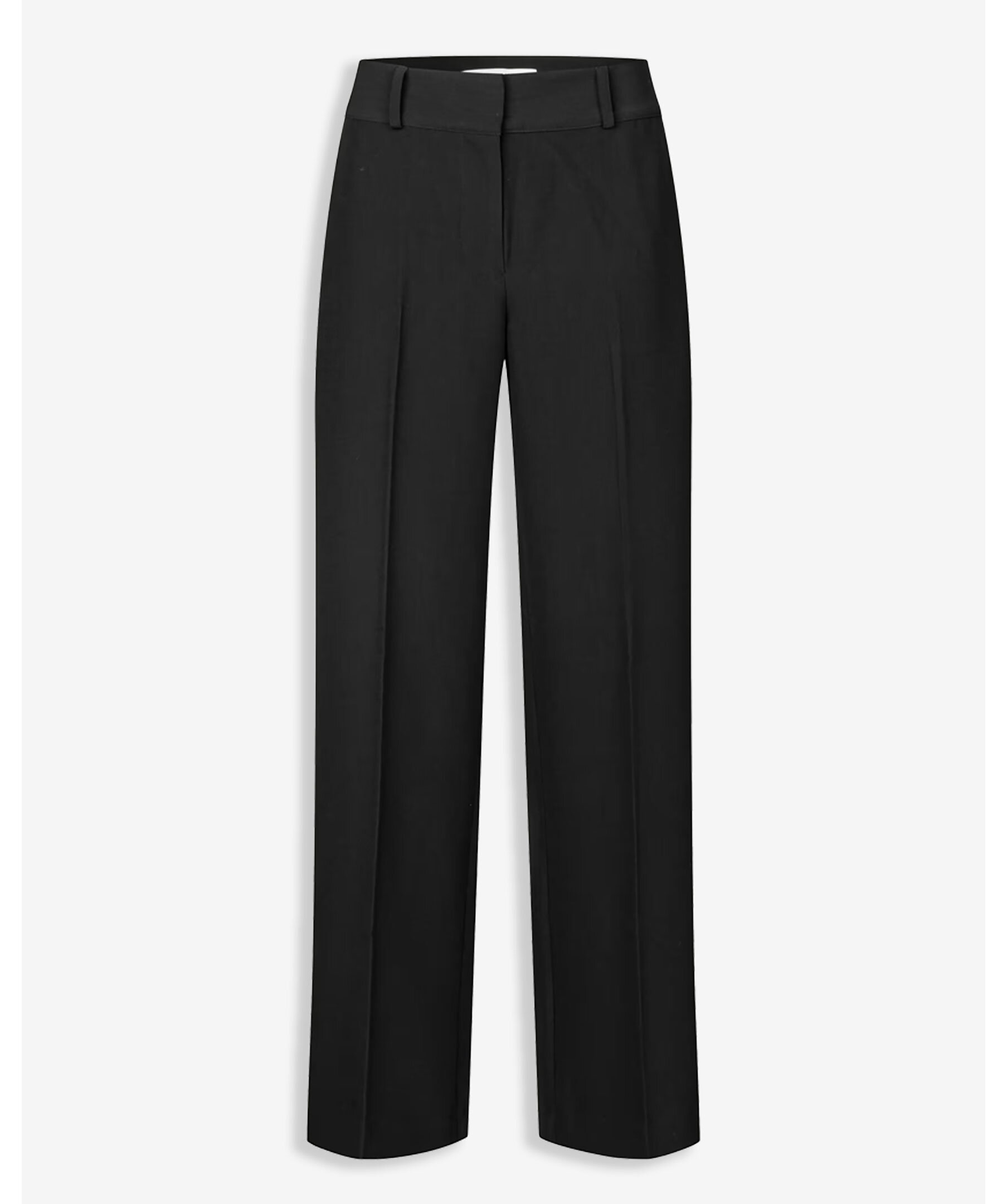 Svarta kostymbyxor från Samsoe Samsoe. Byxorna har en låg midja med bälteshällor, raka ben, dold hyska och dragkedja i gylfen samt två sidfickor. Tillverkad i en polyesterblandning.