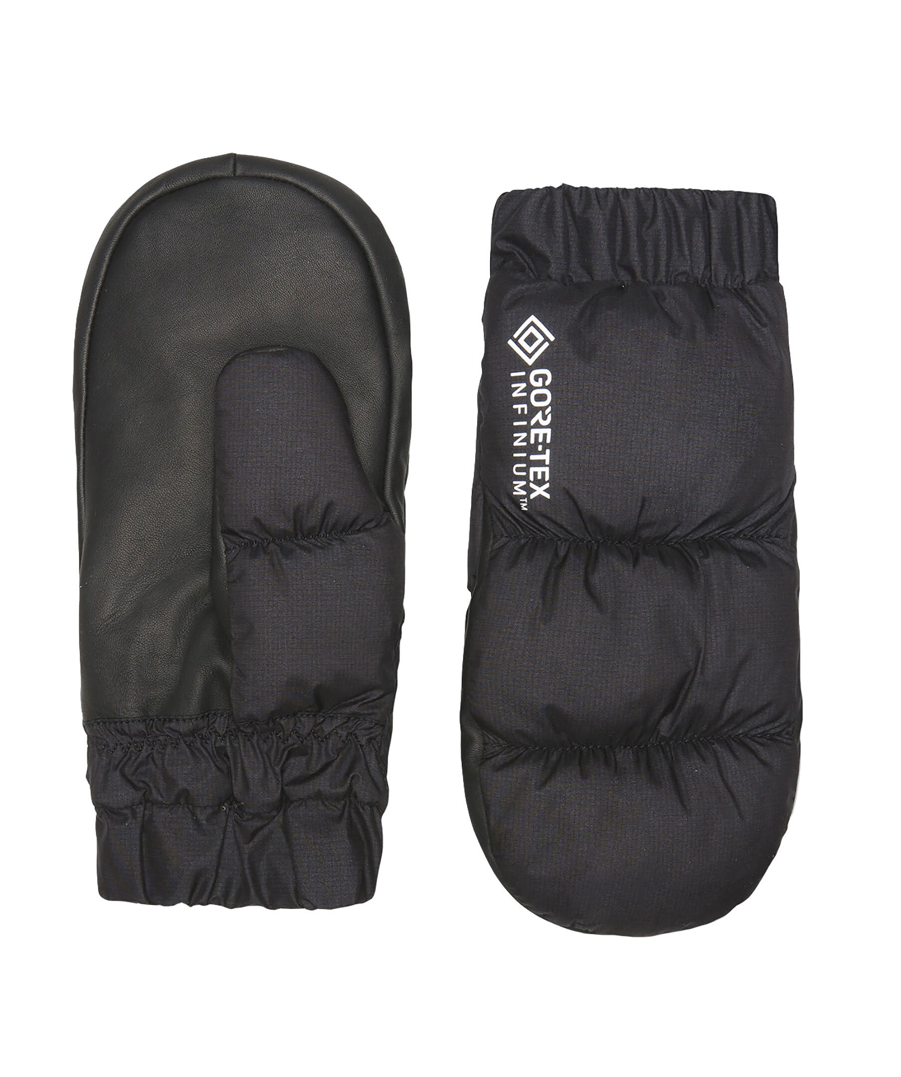 Svarta, quiltade, vattenavvisande och vindtäta vantar från Samsoe Samsoe. Resår i ärmslut, ripstop Gore-Tex Infinium polyamidtyg och PrimaLoft vadderad fyllning. Läderhandflator i LWG-certifierat läder, fleecefodrad och har parkrokar. Slitstark vattenavvisande beläggning, 100% vindtät, extremt andningsbar 6m2 Pa/W.