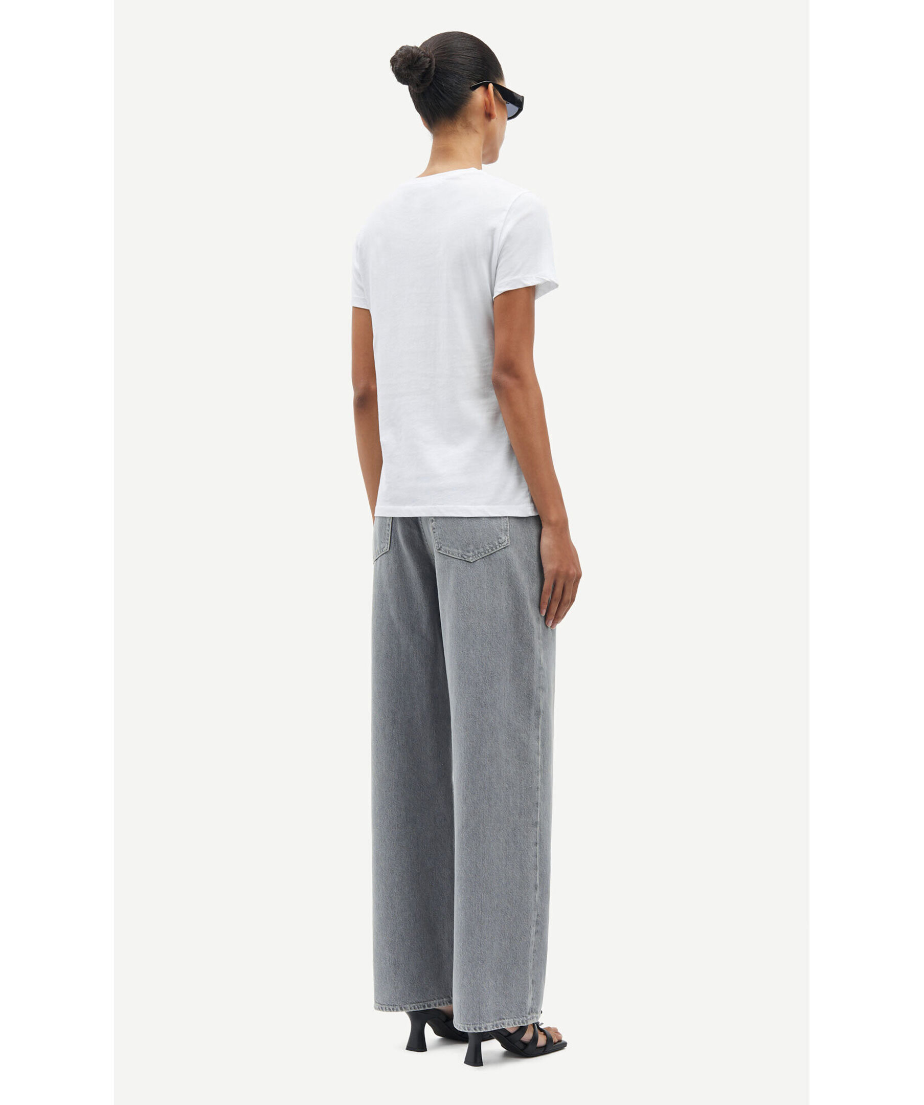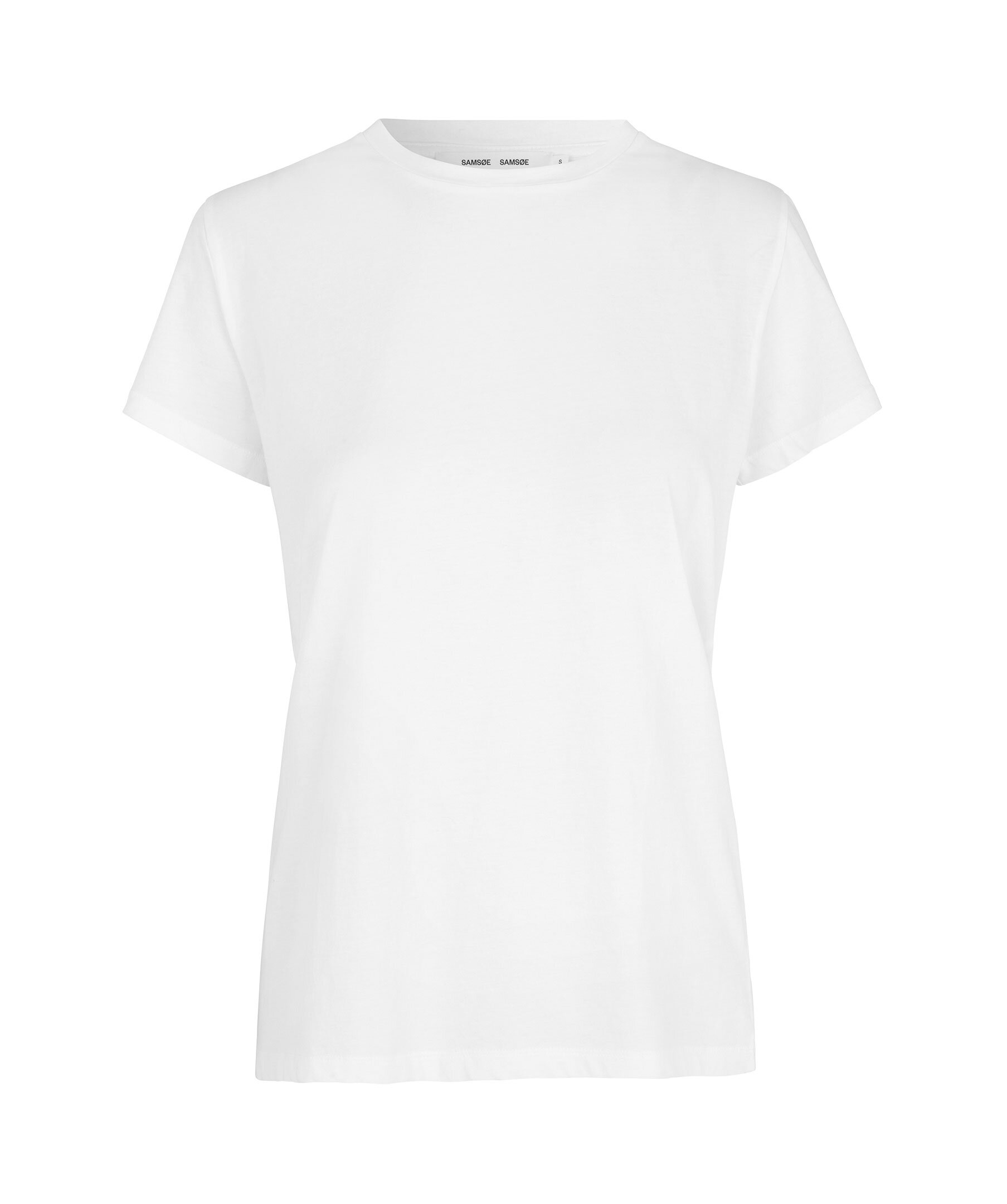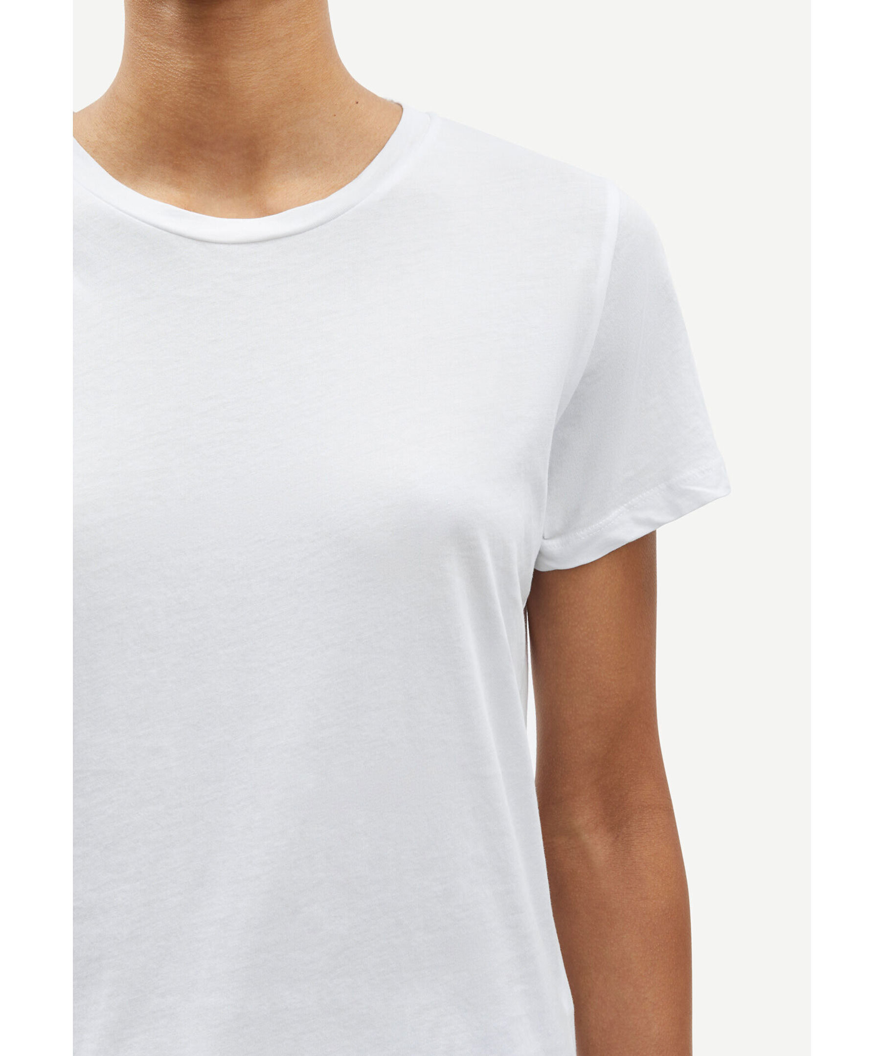 Vit T-shirt från Samsoe Samsoe. Rundad halsringning. Tillverkad i 100% Organic cotton. Figrunära.