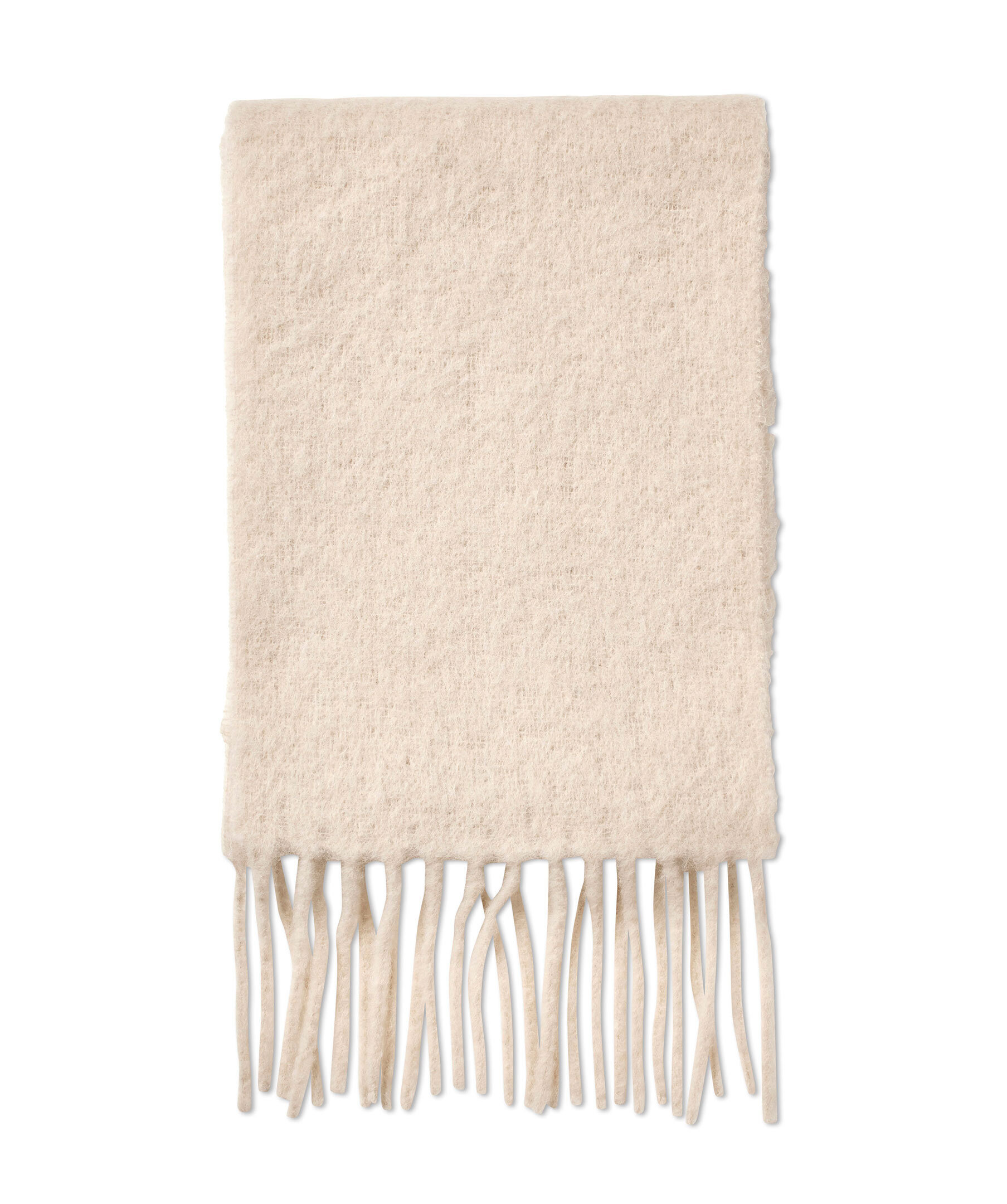Beige halsduk med fransar från Samsøe Samsøe. Gjord i en mjuk alpackablandning. Halsduken är 25cm bred och 210cm lång utan fransarna.