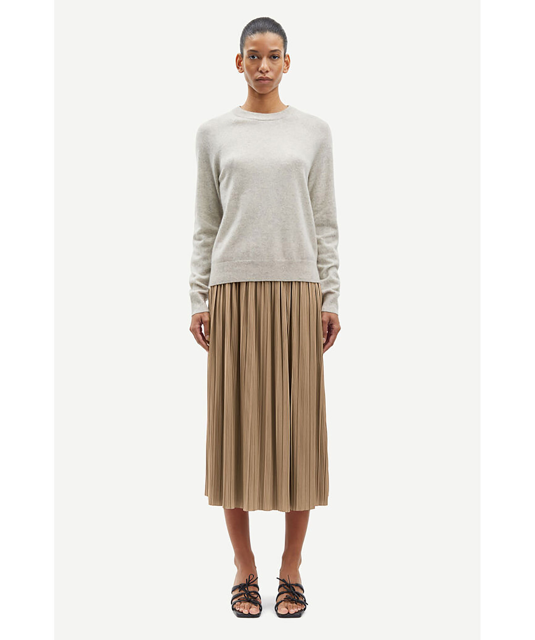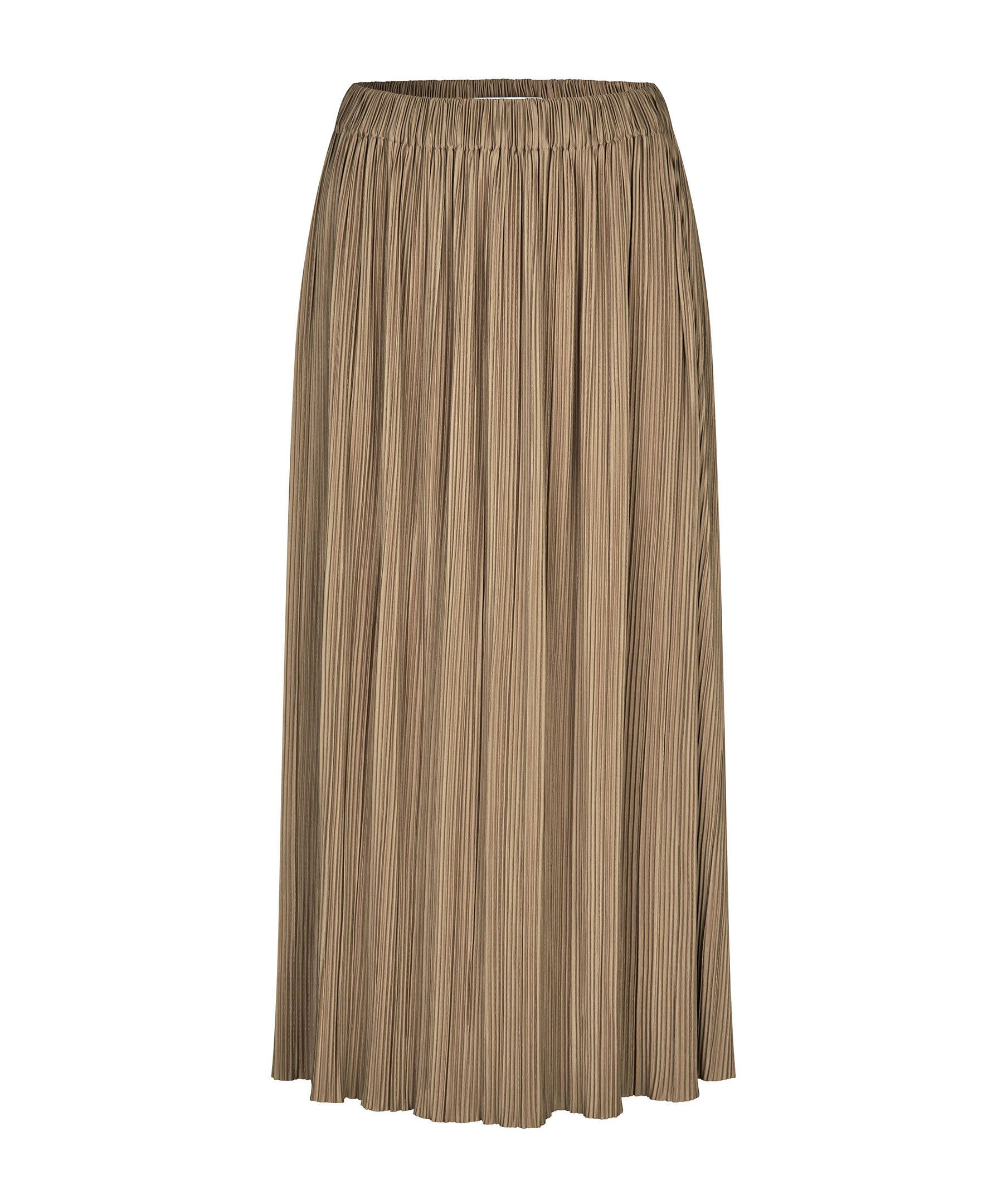 Khakifärgad, plisserad långkjol från Samsoe Samsoe. Resår i midjan som ger en ren och enkel passform. Huvudmaterial tillverkad av återvunnen polyester.