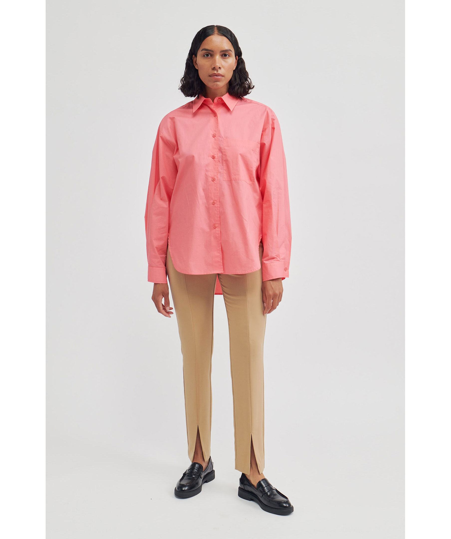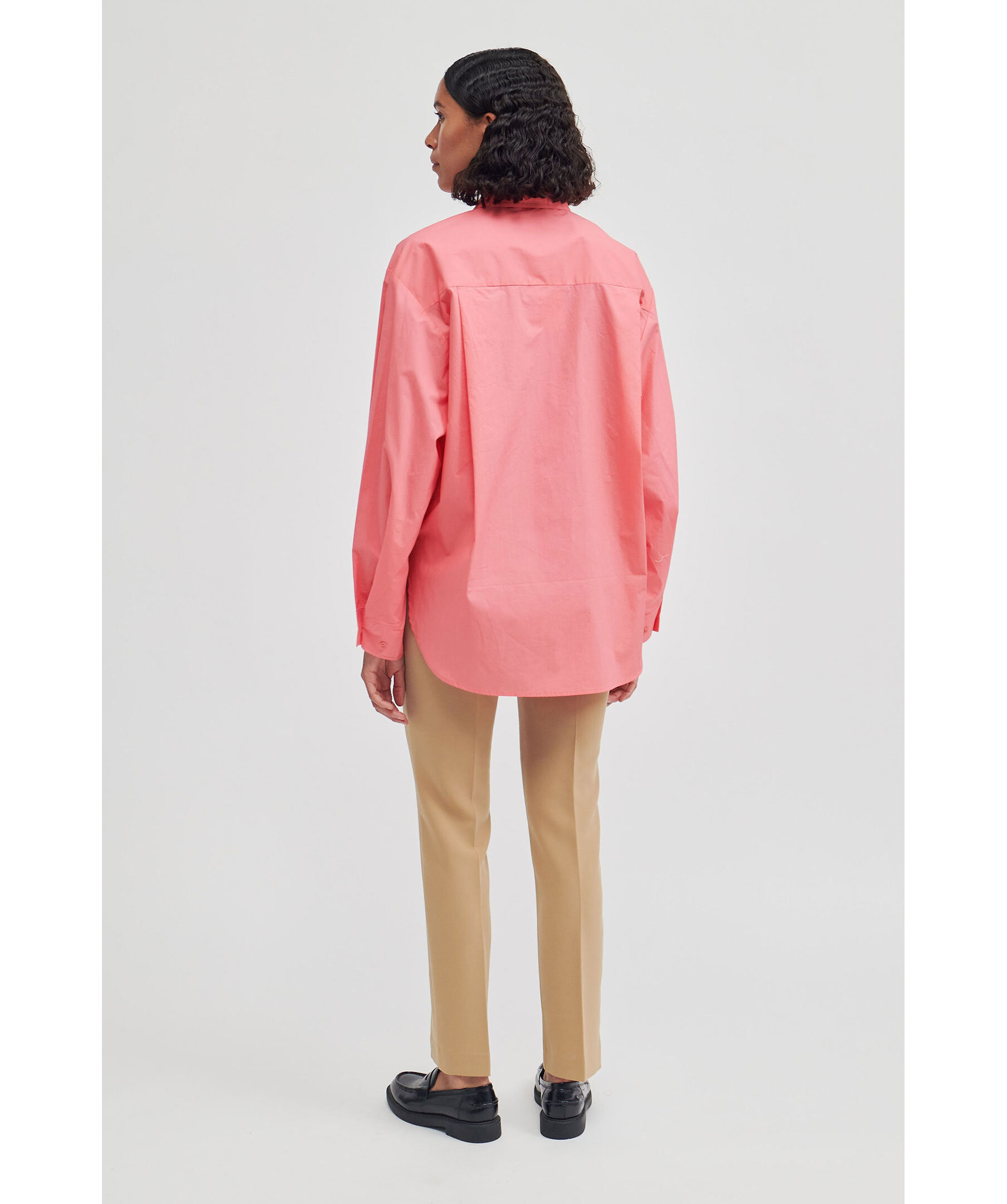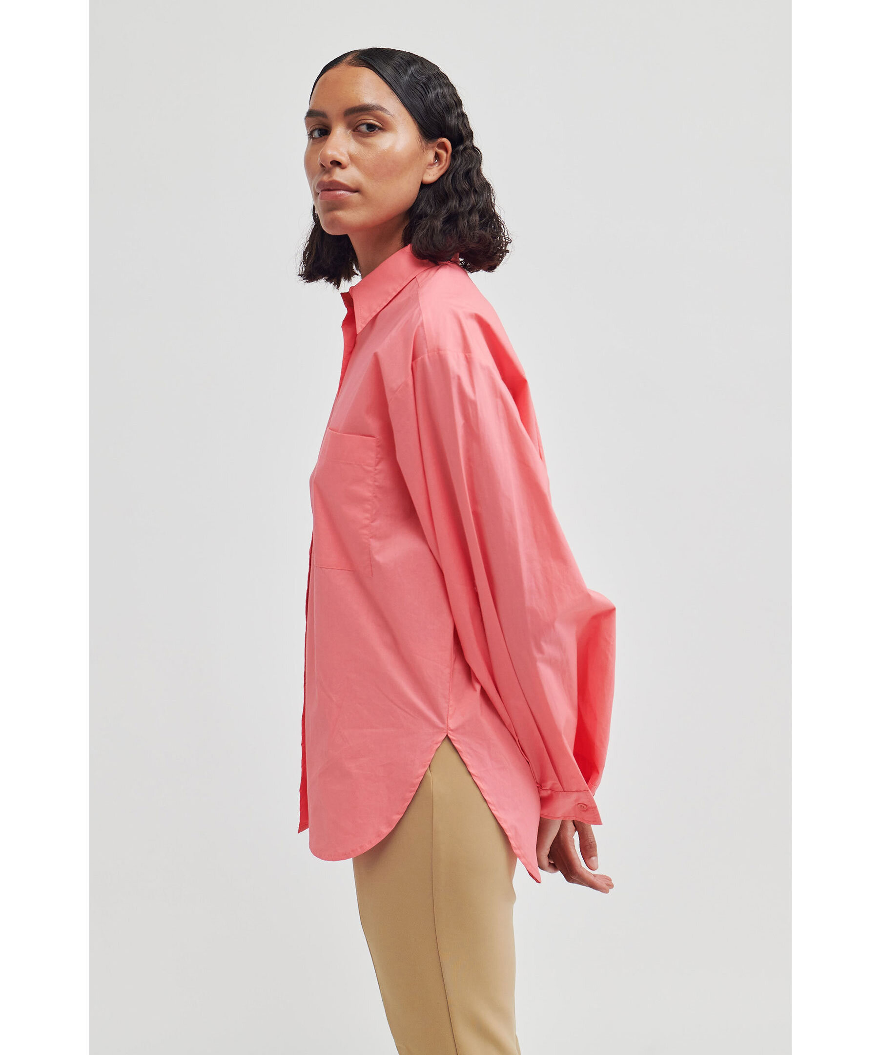 Rosa skjorta i en avslappnad passform från Second Female. Skjortan har en bröstficka och är något längre baktill.