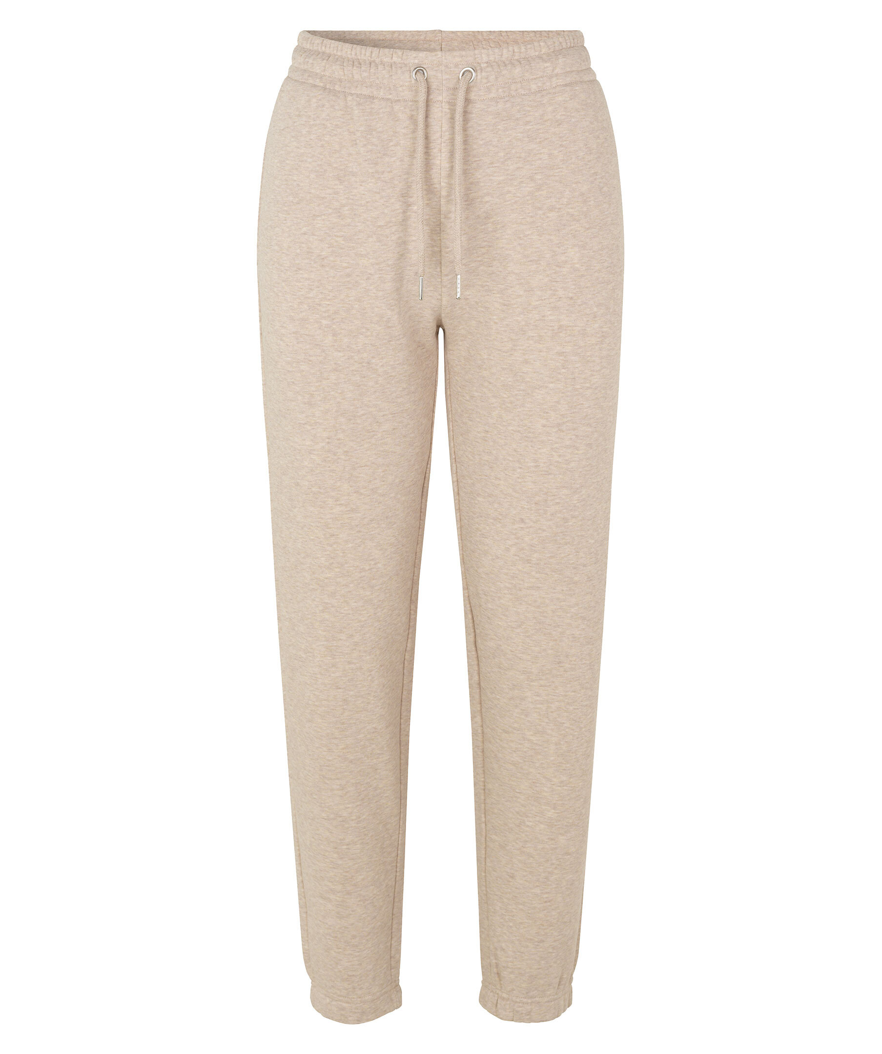 Beigea mjukisbyxor från Second Female. Dragsko i midjan och ribbade muddar i benslut. Fickor i sidorna. Tillverkad i bomull och polyesterblandning.