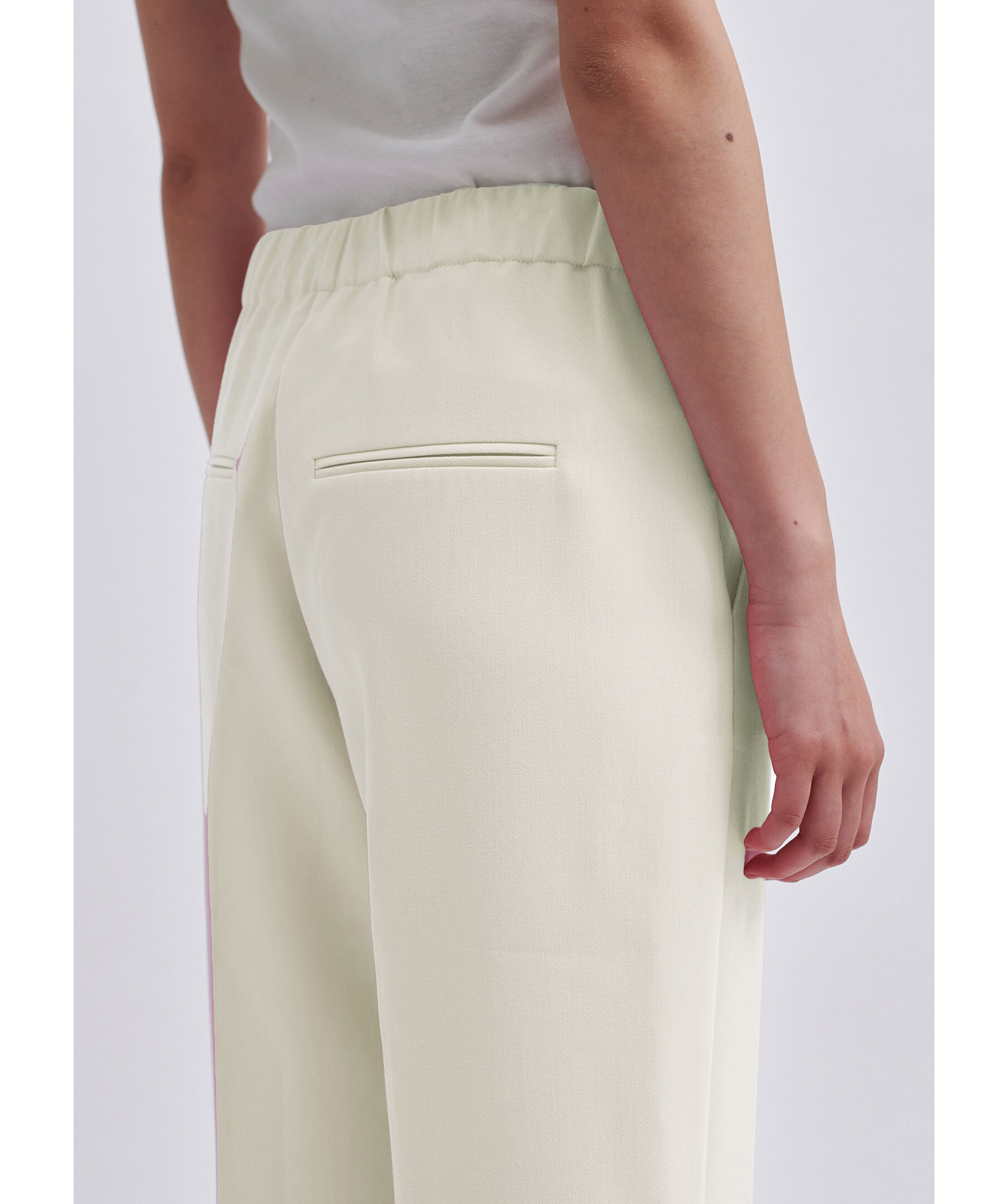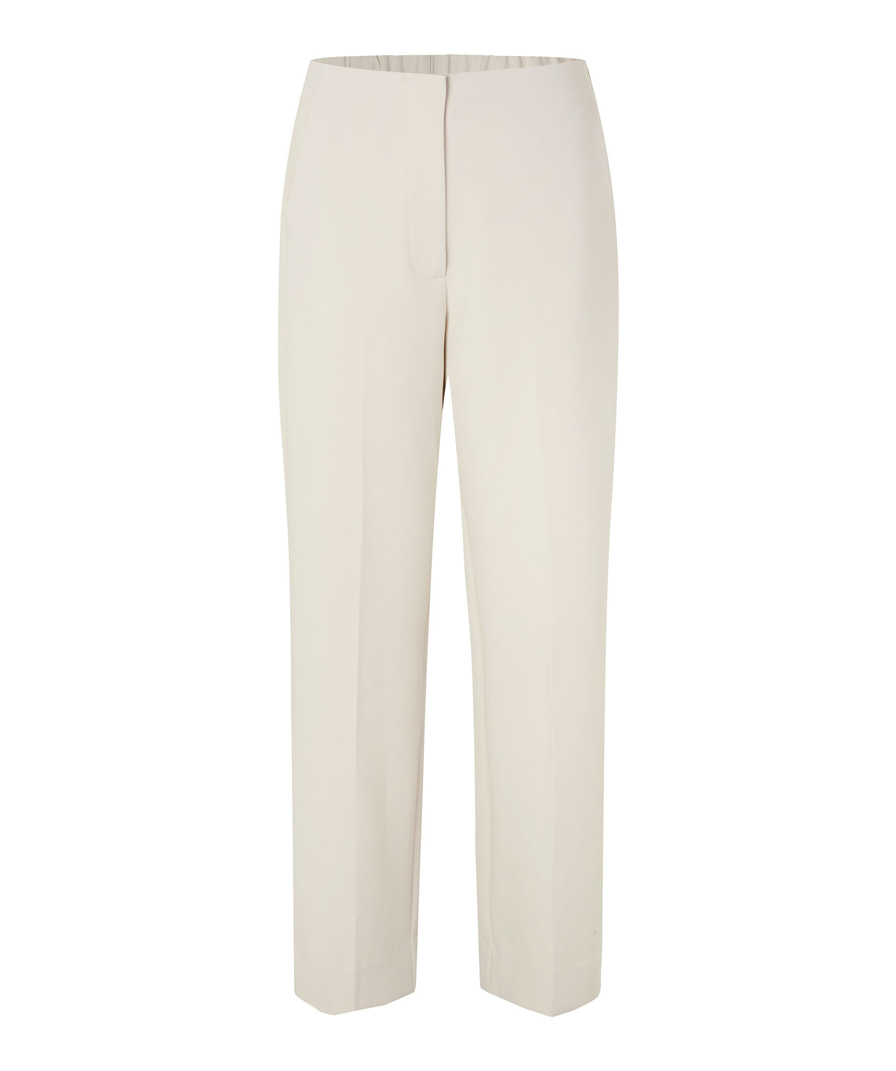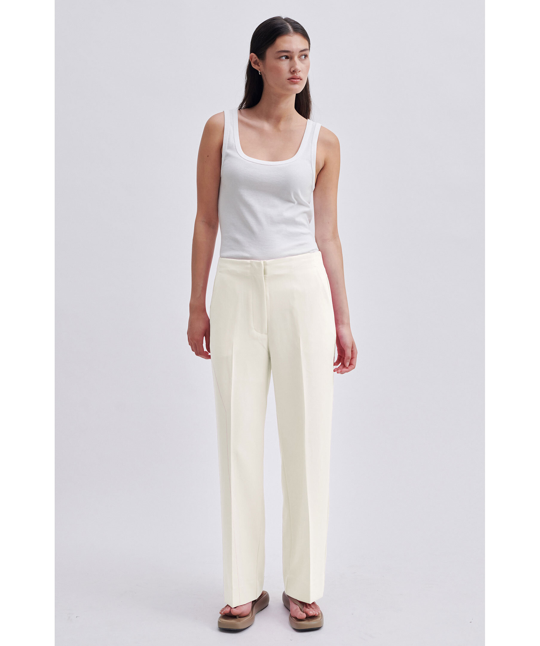 Ljusbeigea kostymbyxor från Second Female. Byxorna är tillverkade i en viskosblandning och har ett brett midjeband och pressveck. Två sidfickor samt två passpoalfickor bak. Rak passform.