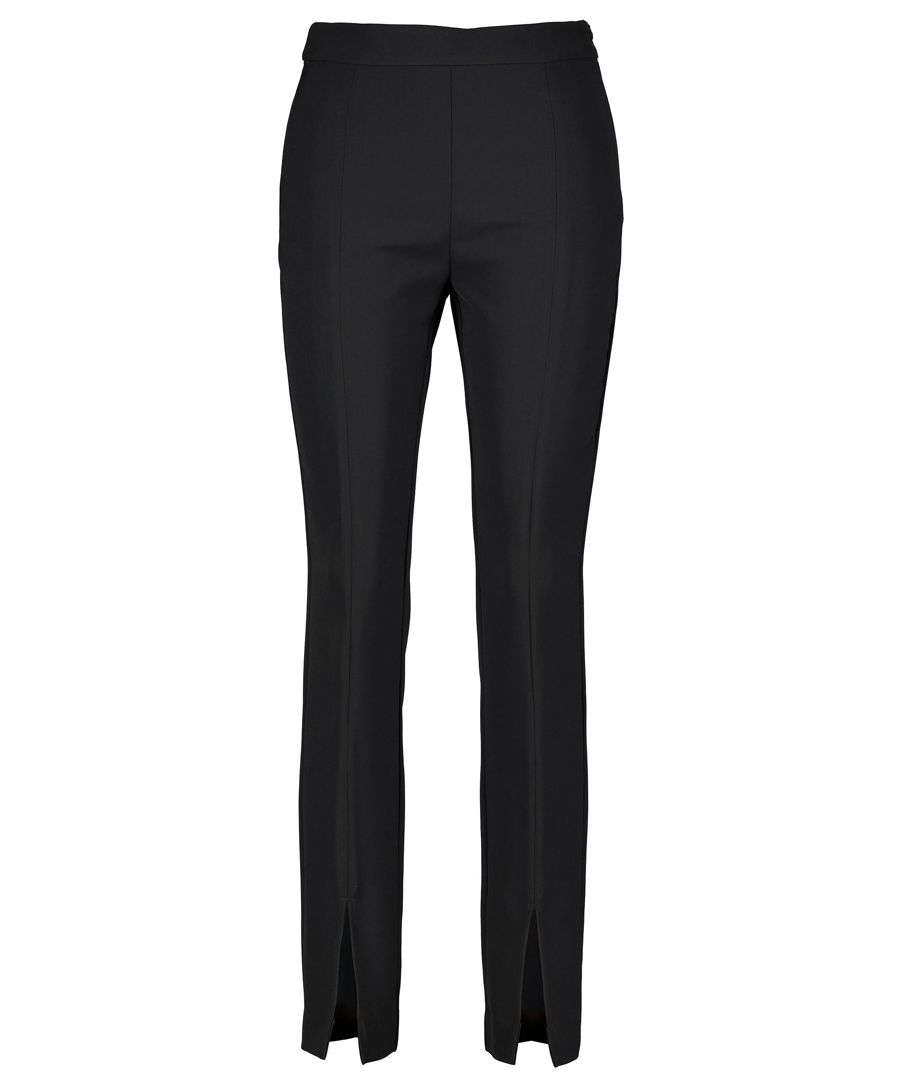 Svarta kostymbyxor från Second Female. Smal passform, dold dragkedja i sidan samt slitsar framtill på byxbenen.