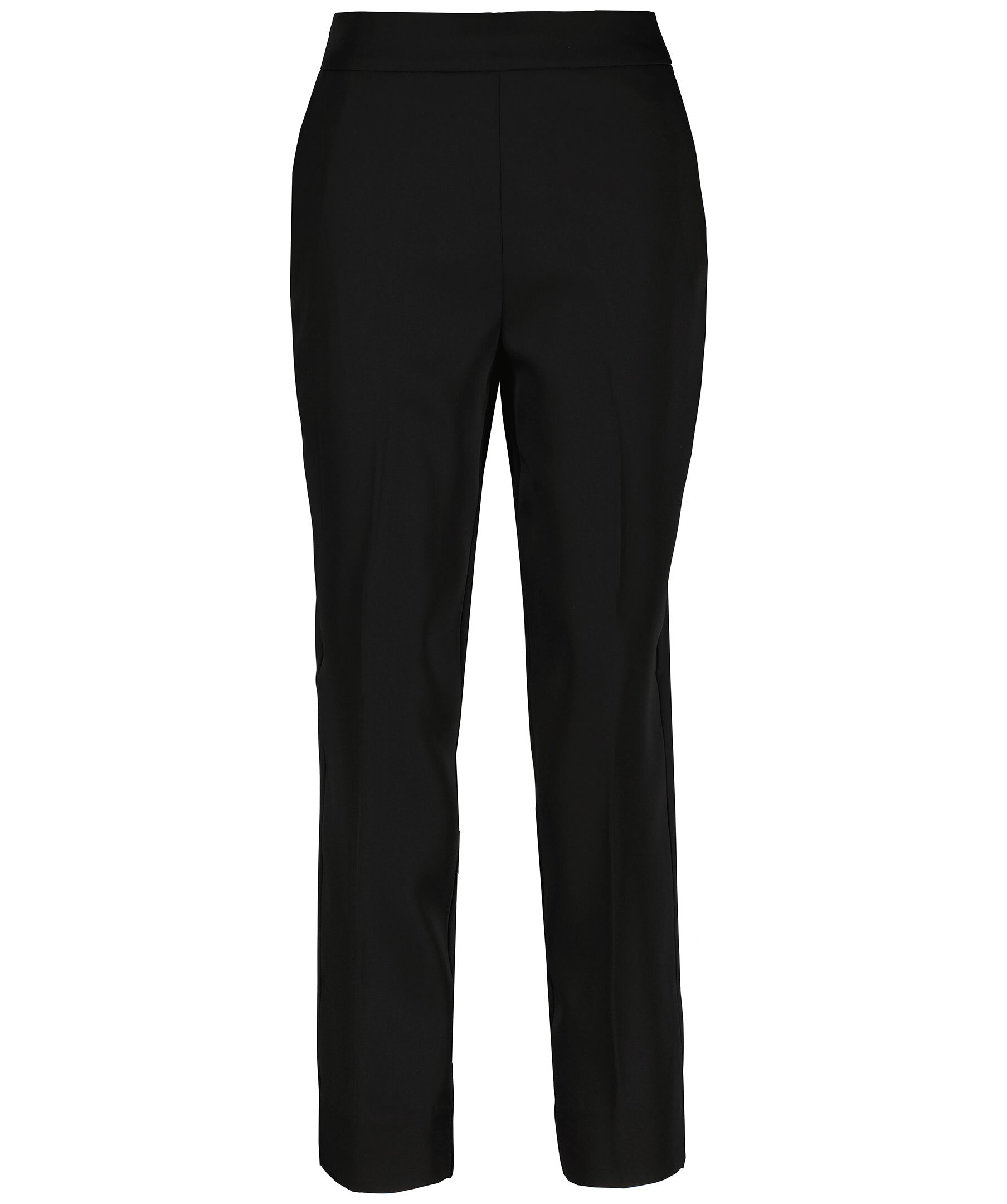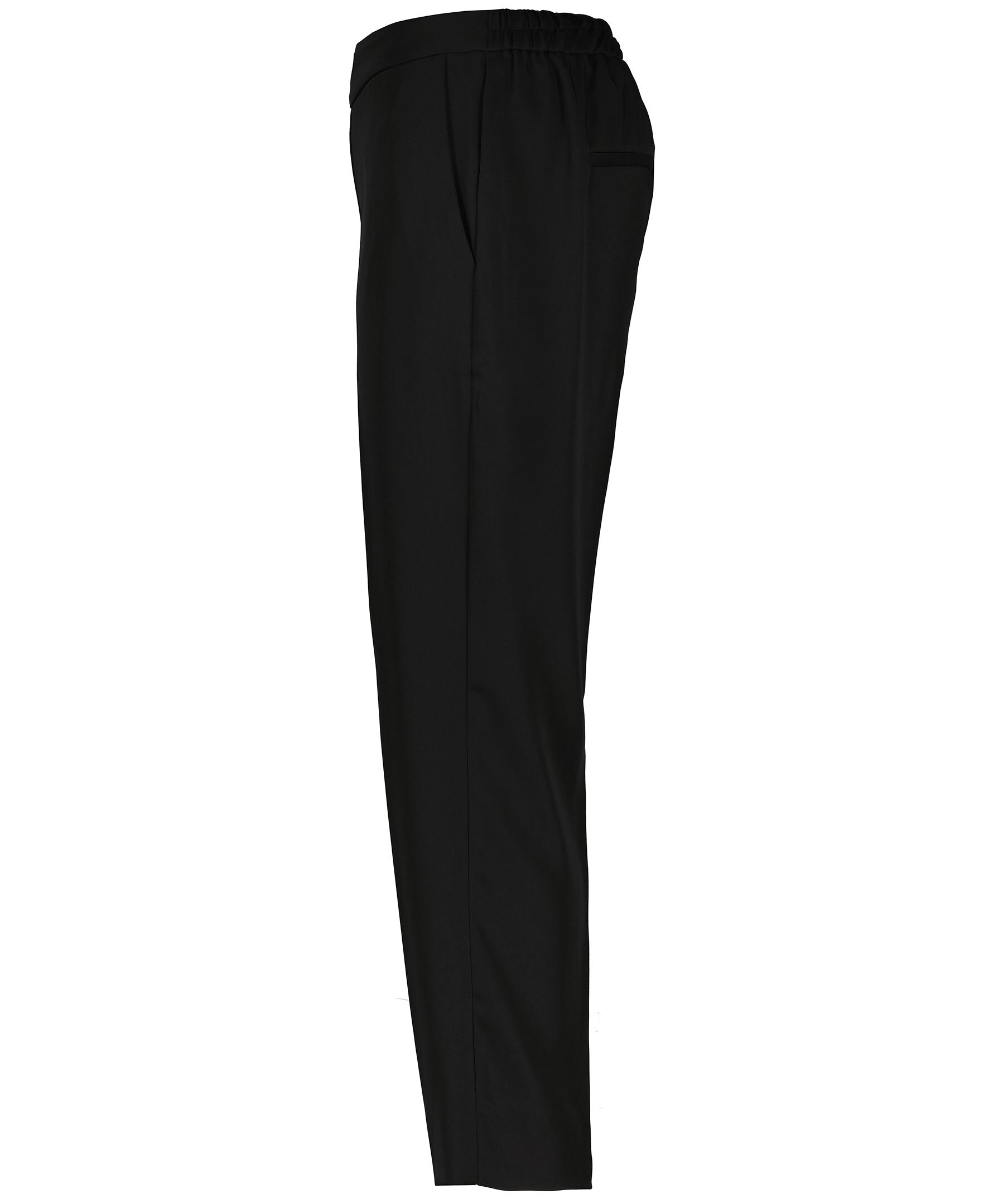 Svarta kostymbyxor från Second Female. Vida byxben, pressveck fram och bak samt hög midja. Mudd på baksidan av midjan och öppna snedställda fickor i sidorna och raka fickor bak.