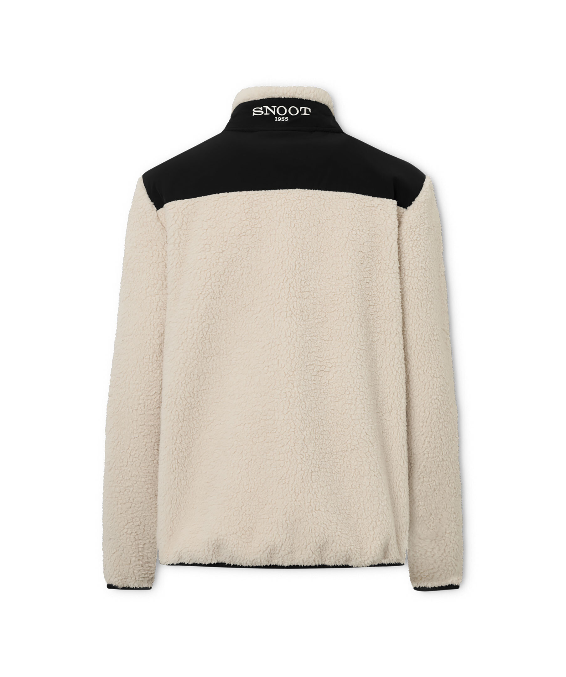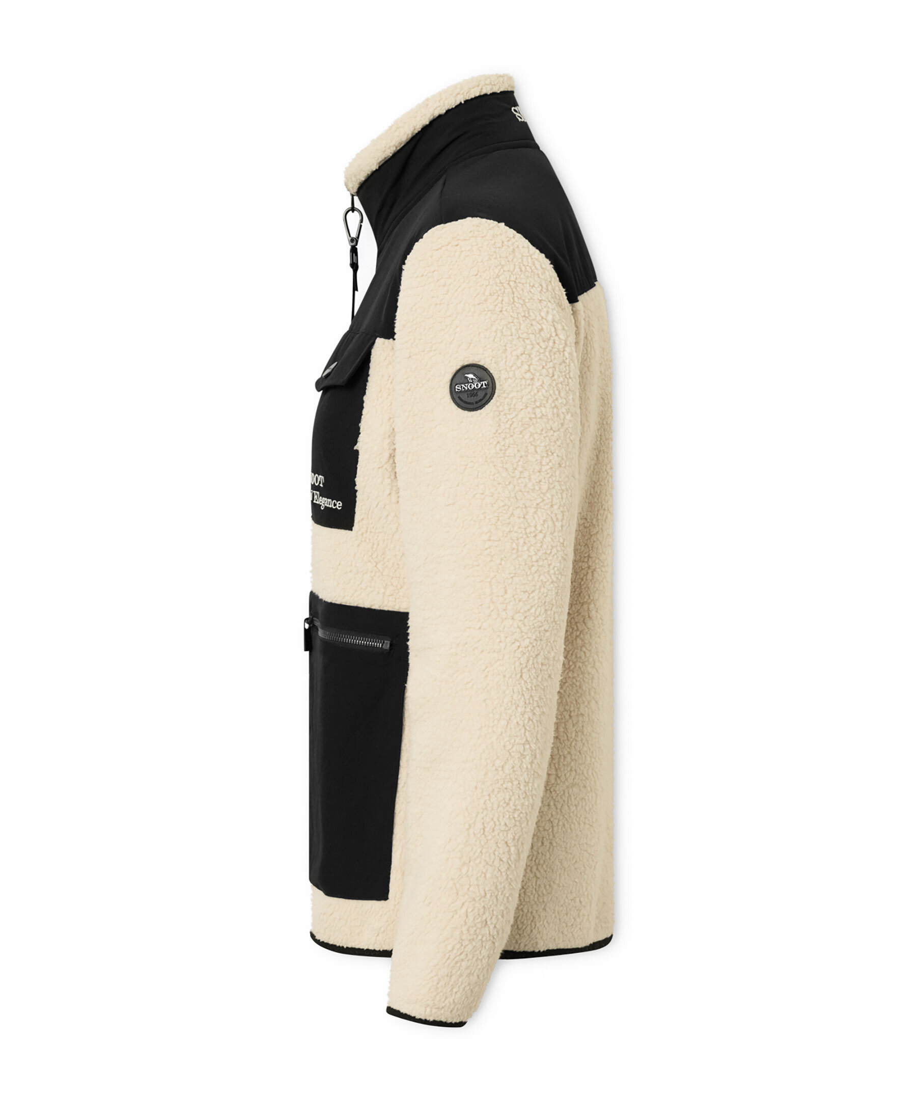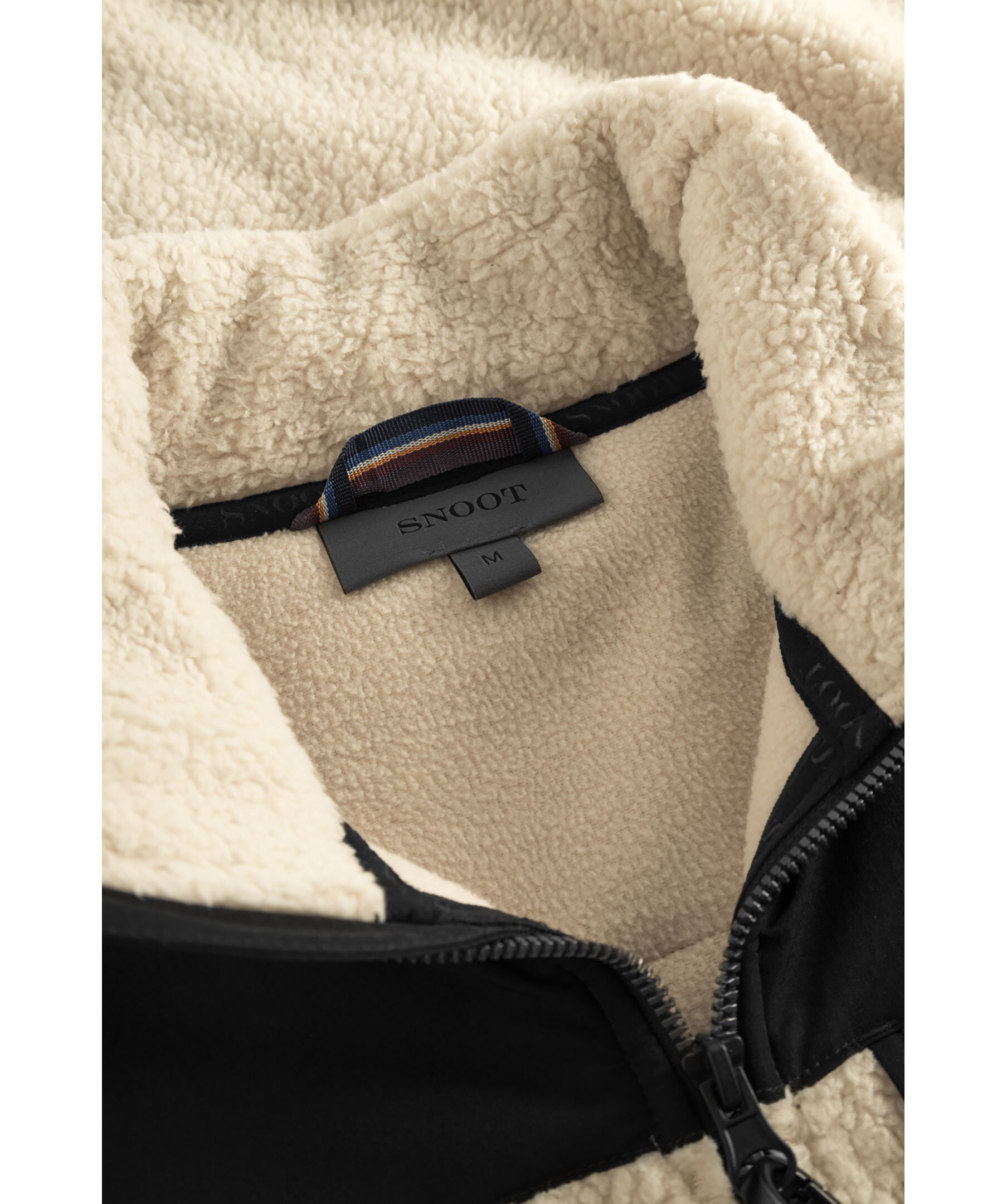 Ariccia-jackan är ett mysigt mellanlager med ett mjukt pile fleece-material som är sammanfogat med ett ännu mjukare mikrofleece-material på insidan. Det finns en stretchig tygok på axlarna, kragen och fickorna. Vid ärmänden hittar du en elastisk logobindning. Det finns högkvalitativa Metalux-dragkedjor, ett SNOOT-broderi på baksidan av kragen samt en SNOOT-märke på armen.