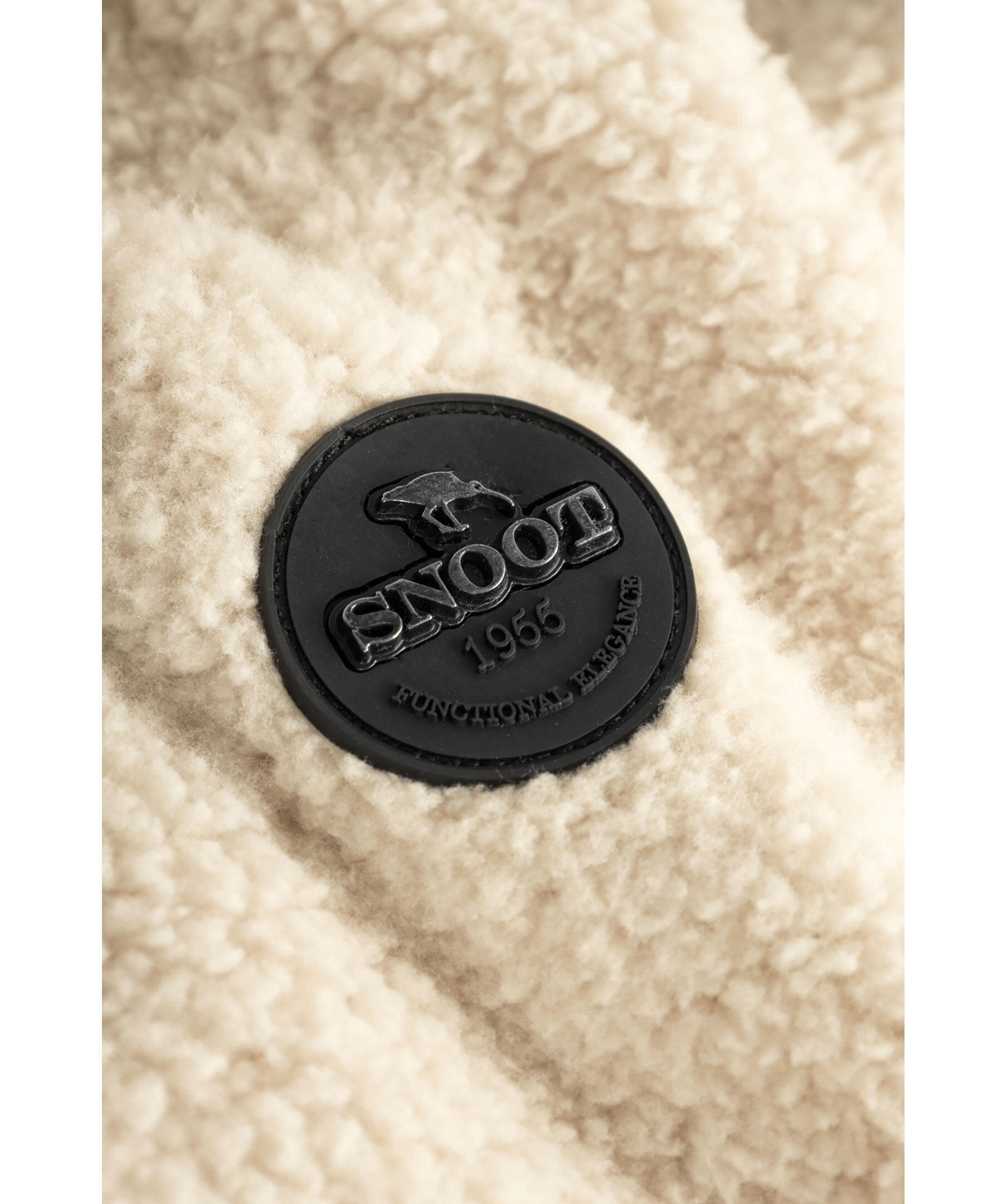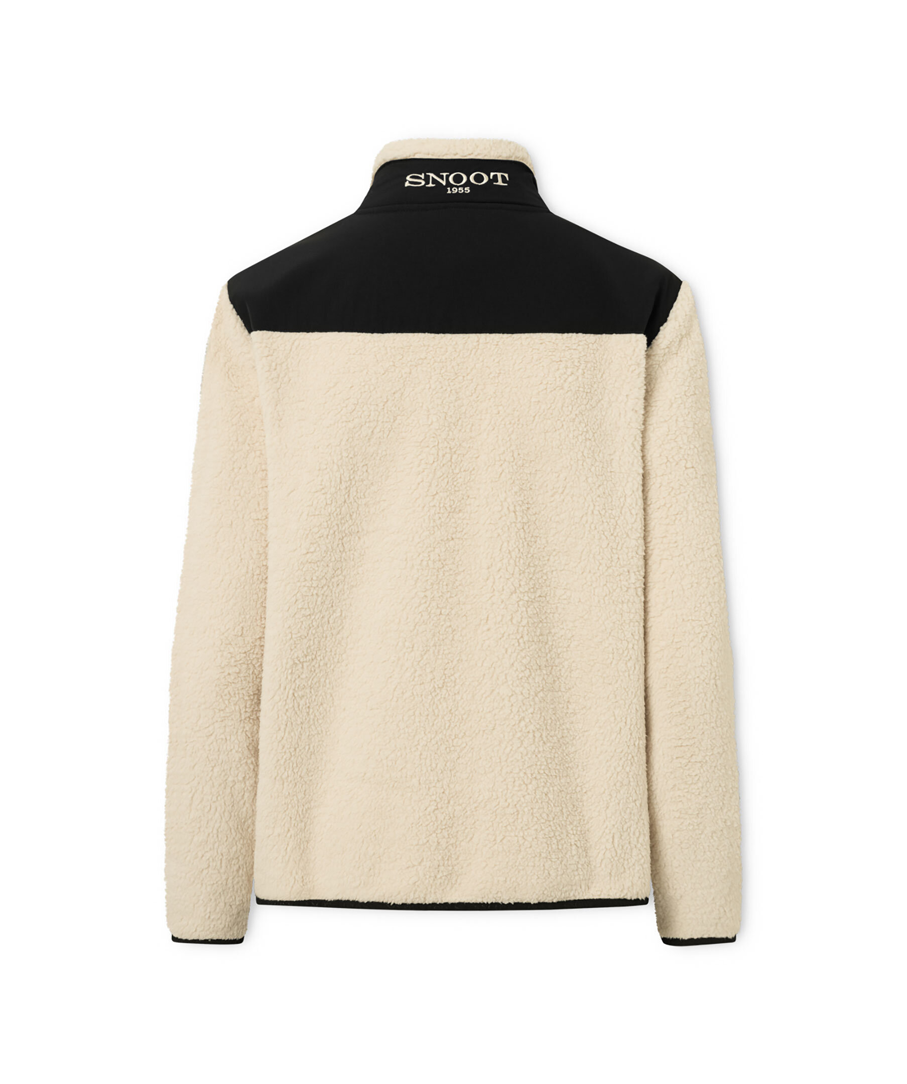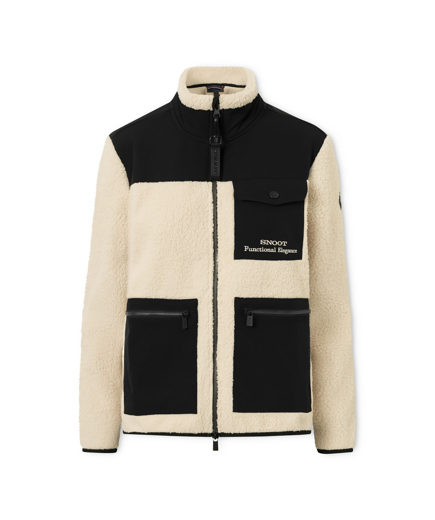 Ariccia-jackan är ett mysigt mellanlager med ett mjukt pile fleece-material som är sammanfogat med ett ännu mjukare mikrofleece-material på insidan. Det finns en stretchig tygok på axlarna, kragen och fickorna. Vid ärmänden hittar du en elastisk logobindning. Det finns högkvalitativa Metalux-dragkedjor, ett SNOOT-broderi på baksidan av kragen samt en SNOOT-märke på armen.