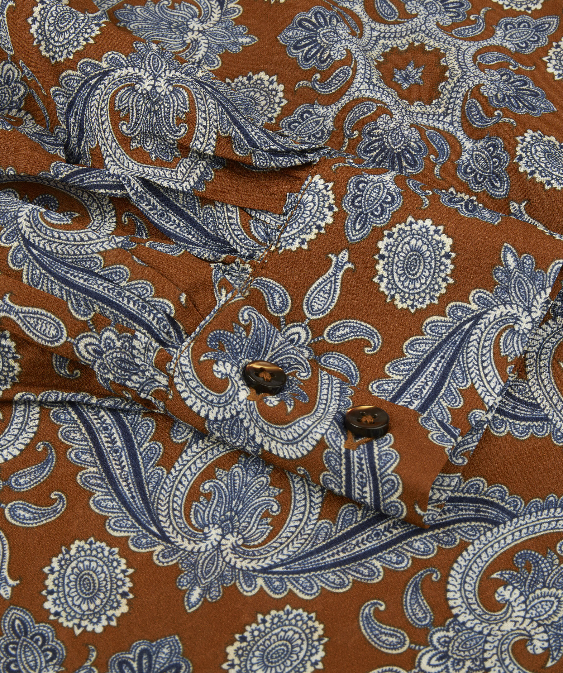 Brun skjorta i en oversize modell, tillverkad i viskos. Skjortan har volymärmar, veck i ryggen samt en puff ovanför ärmsluten.