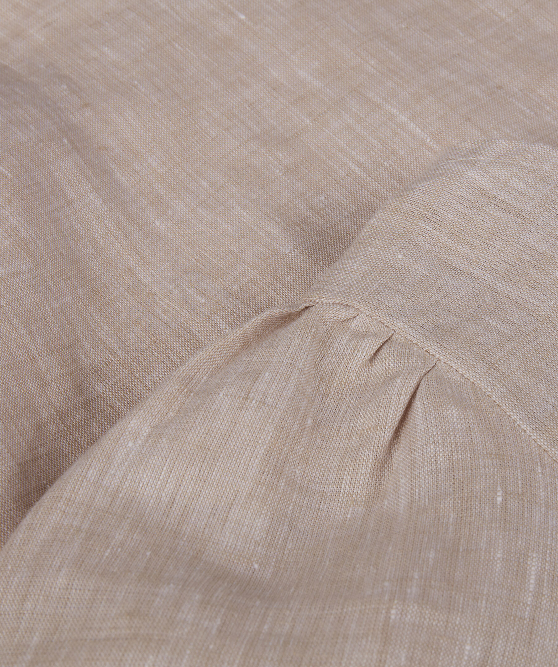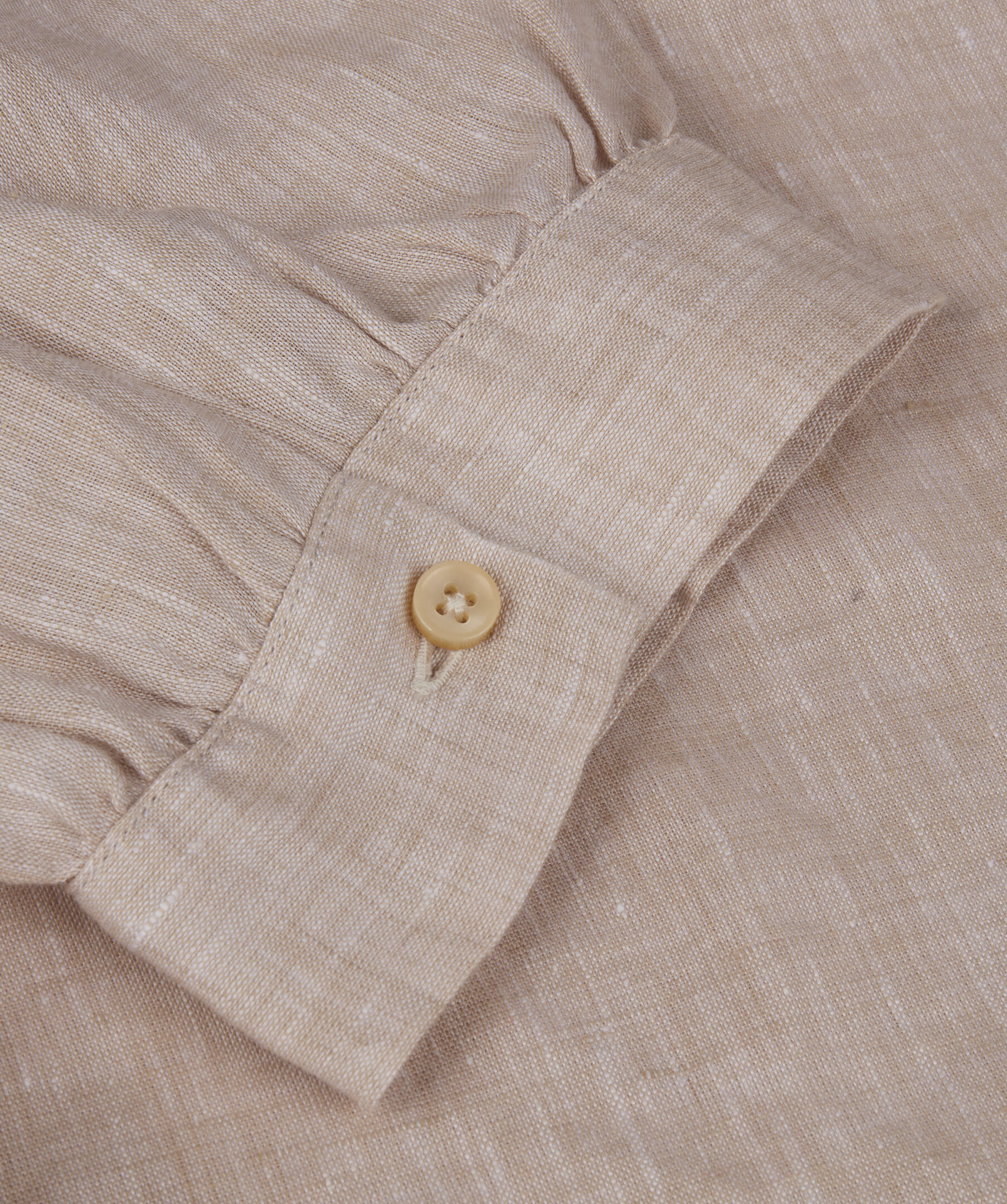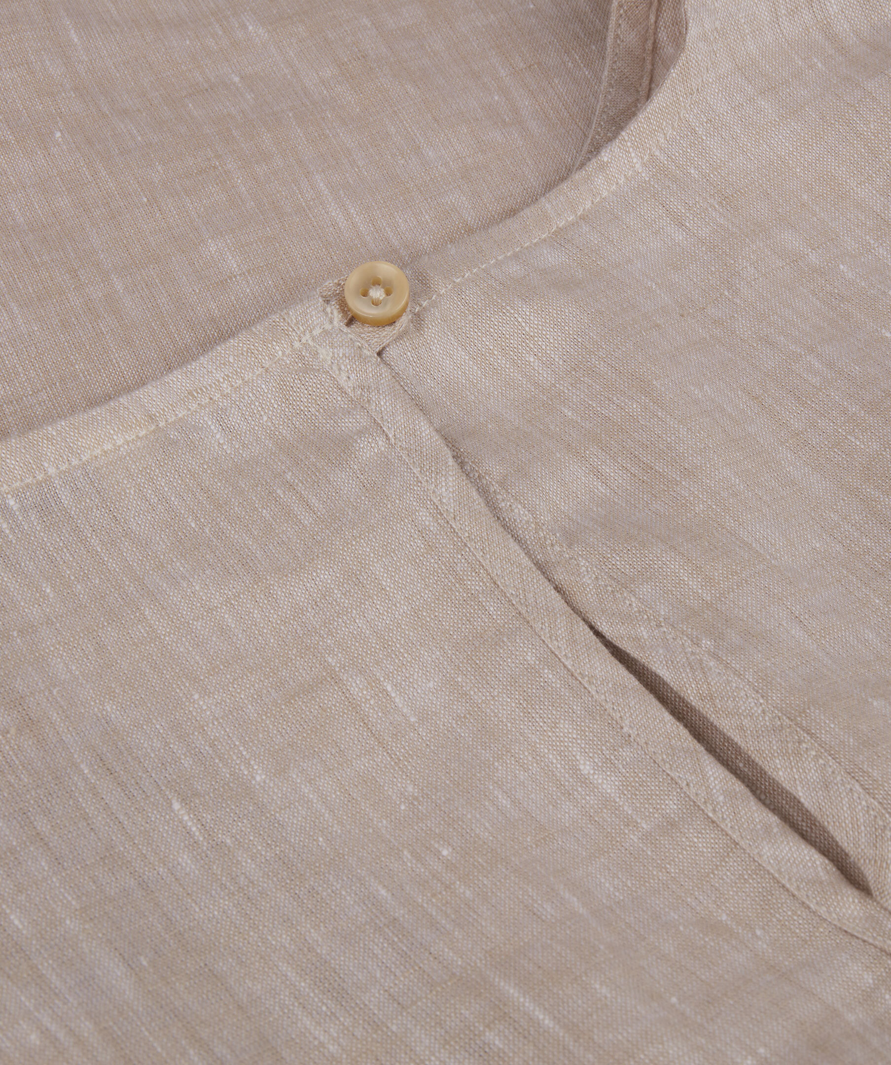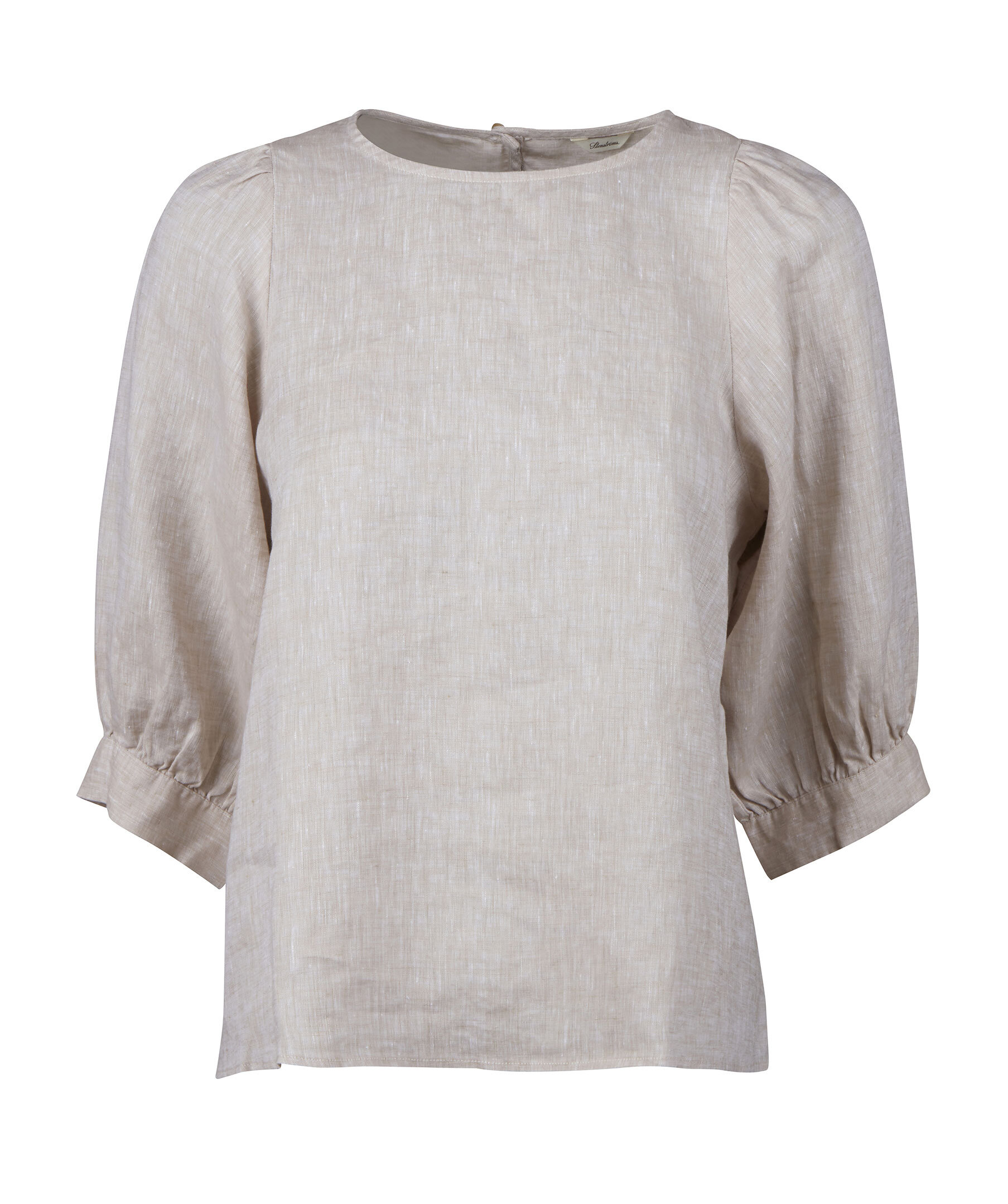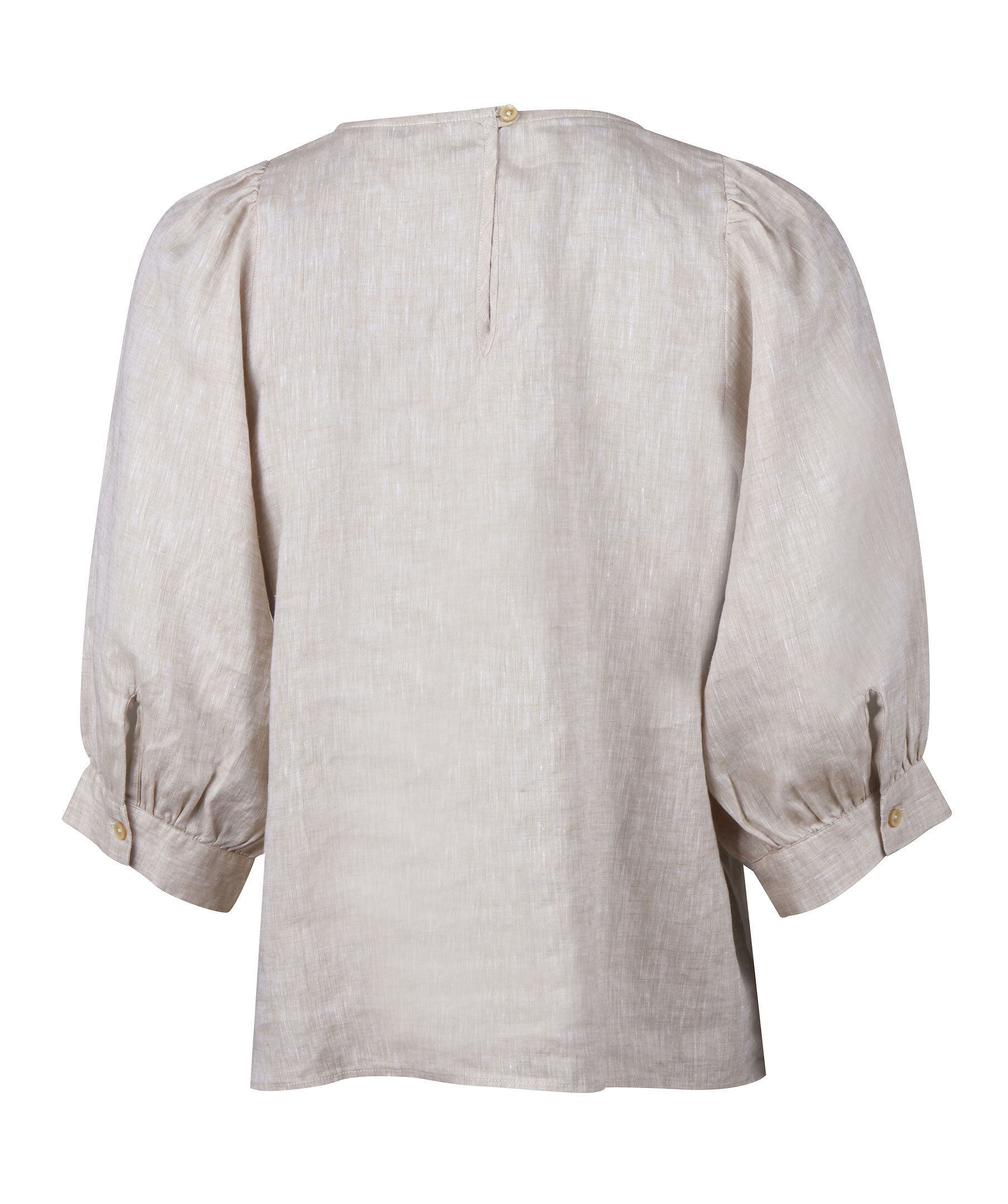 Ljusbeige blus med avslappnad passform. Tillverkad i linne med rundringad halslinje och 3/4 ärmlängd.