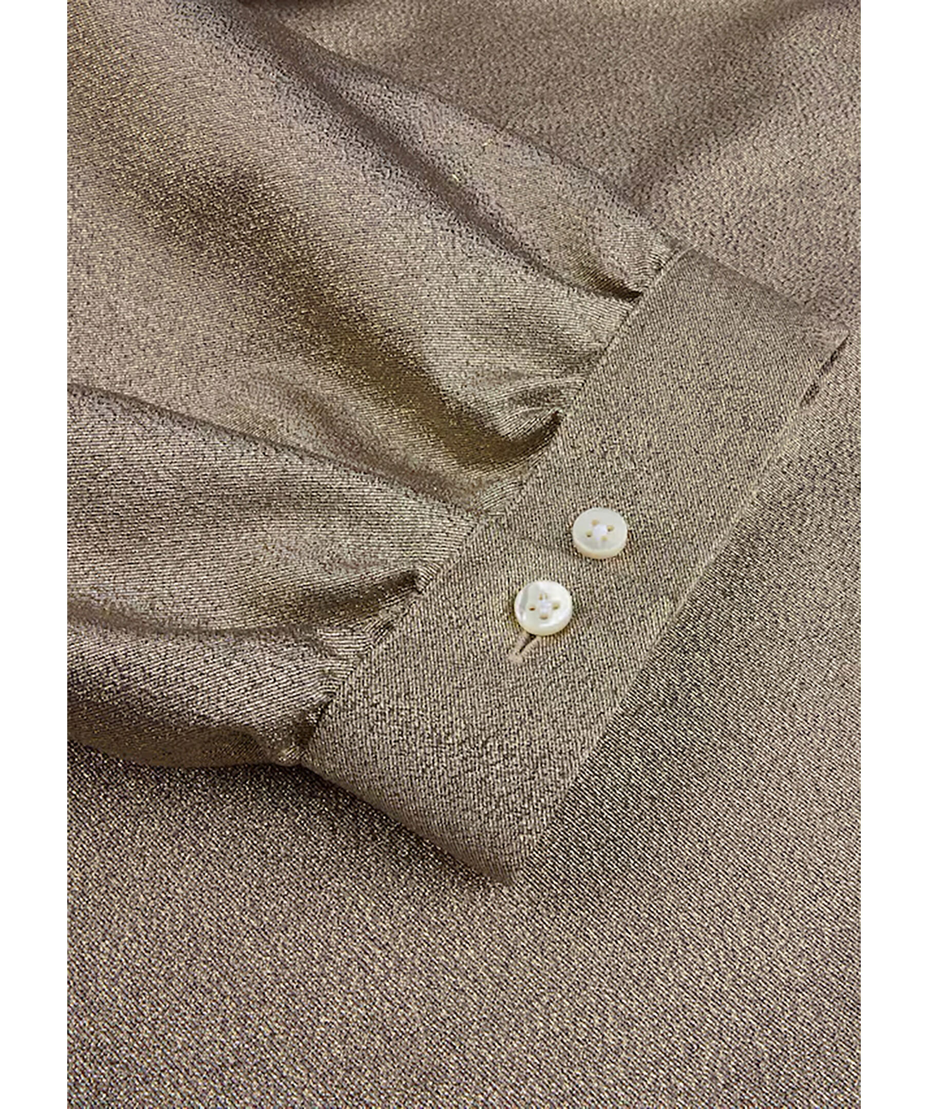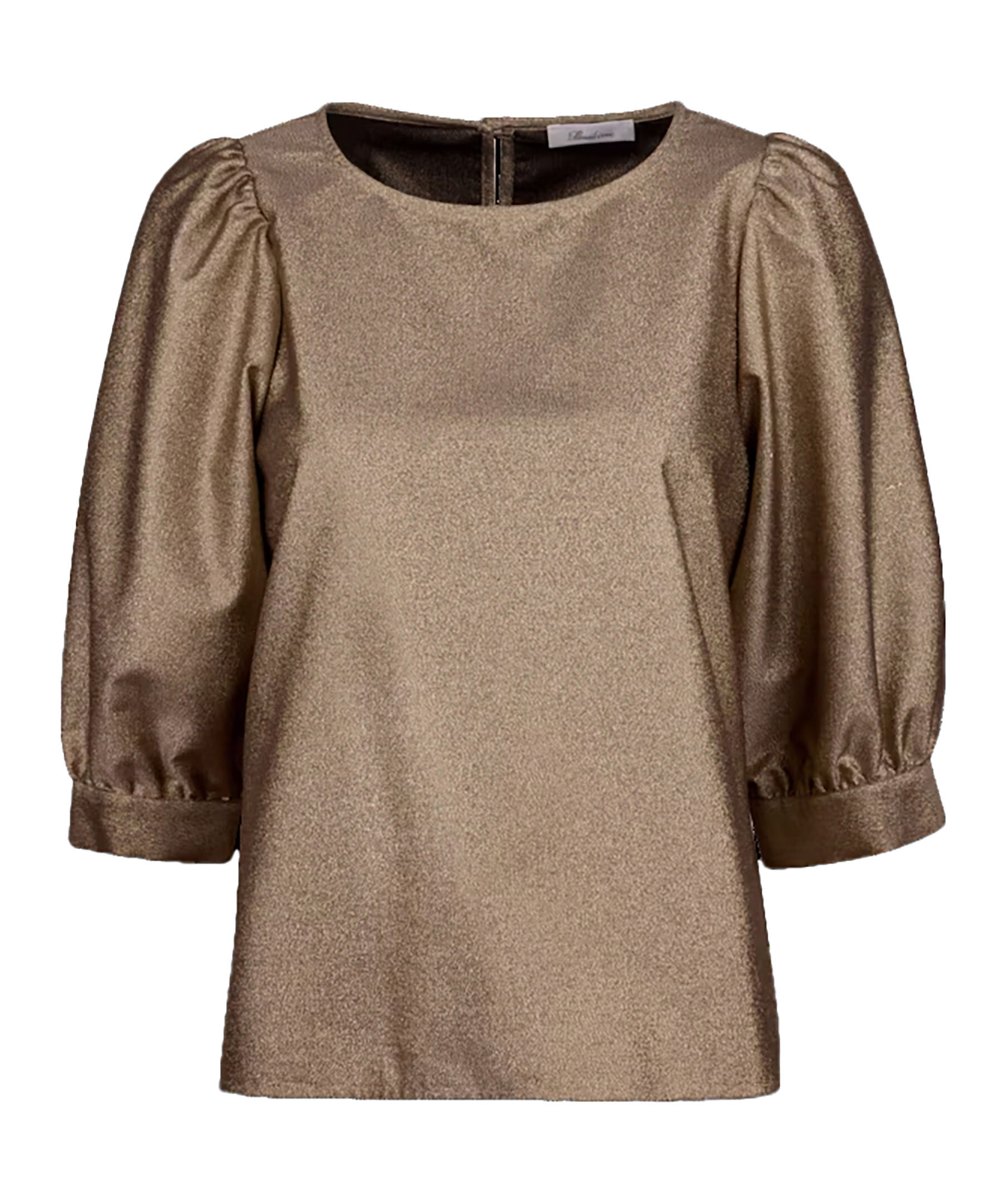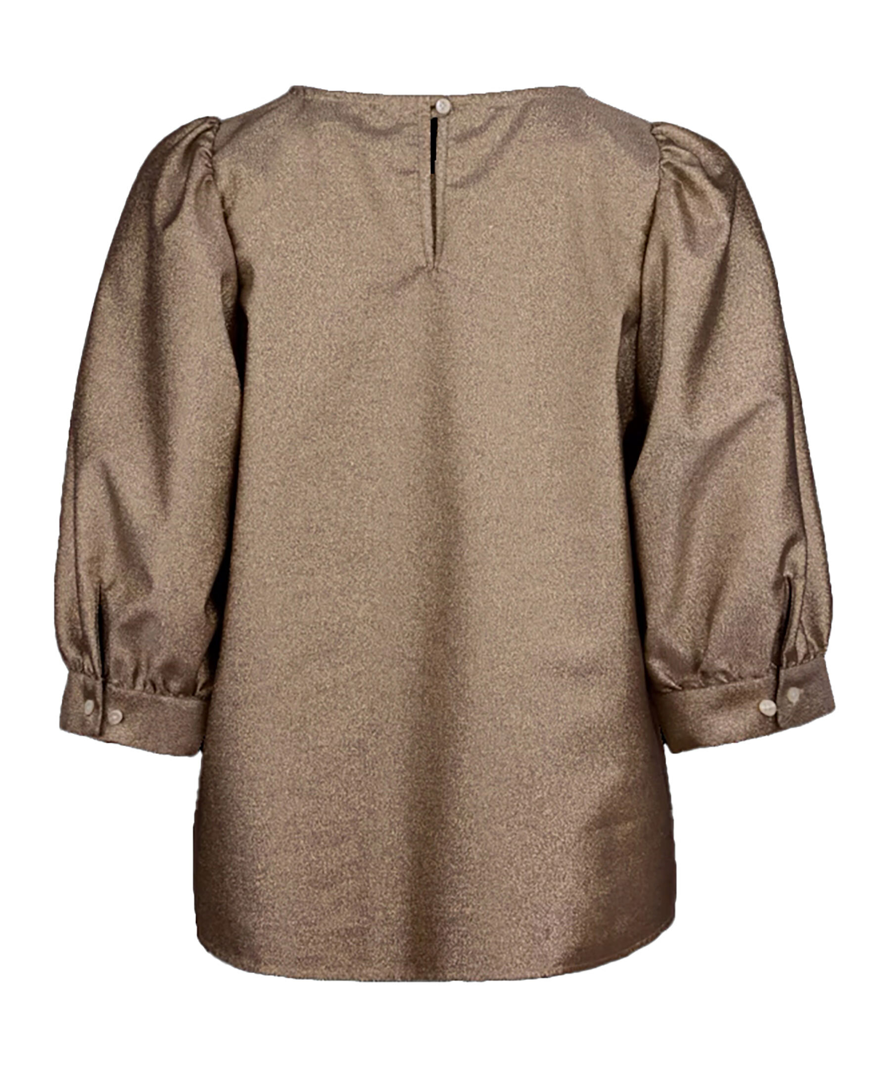 Guldig blus från Stenströms. Blusen har puffärmar och knäpps i nacken med knapp. Två machettknappar vid ärmslut. Tillverkad av en 99% bomullsblandning.