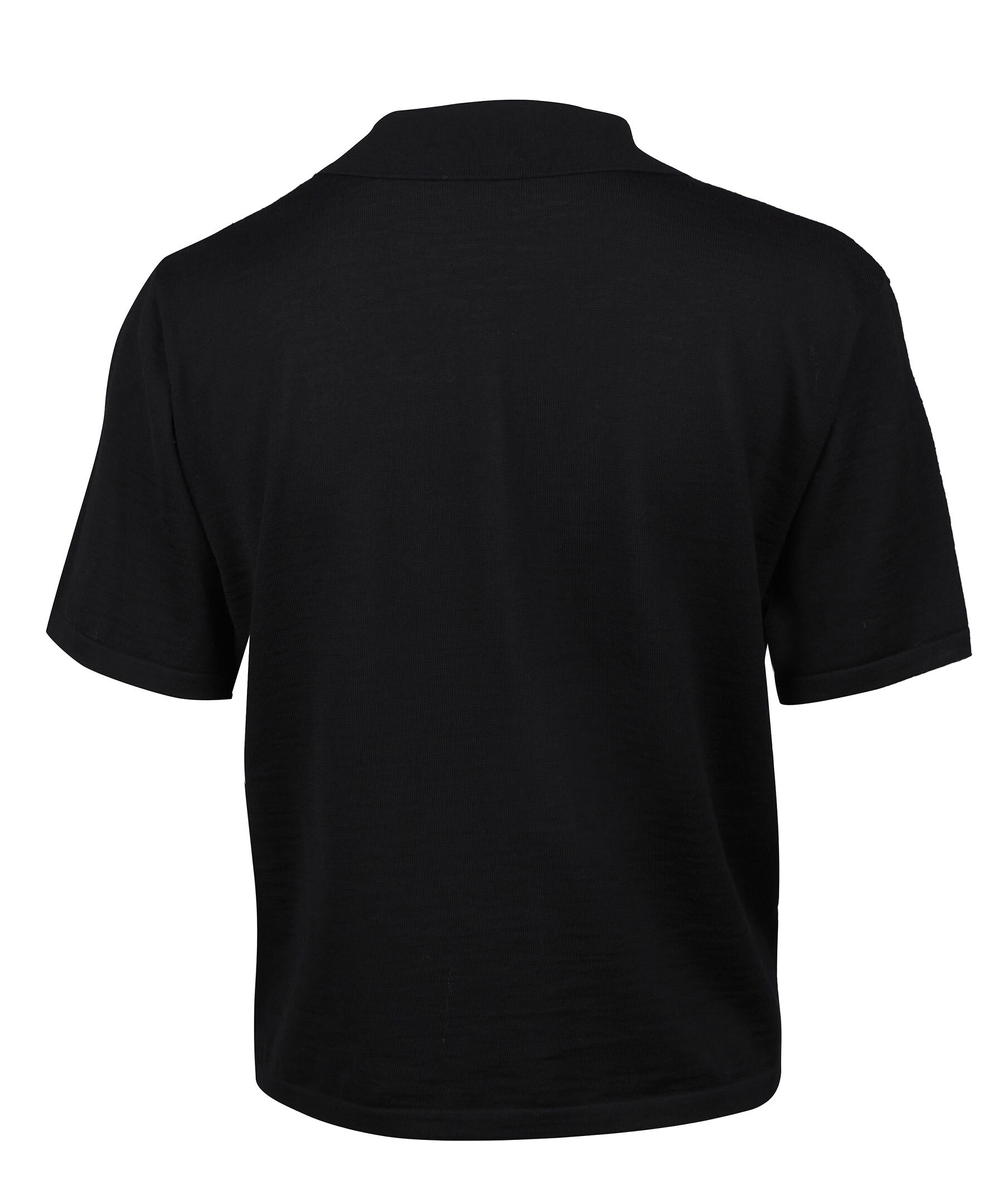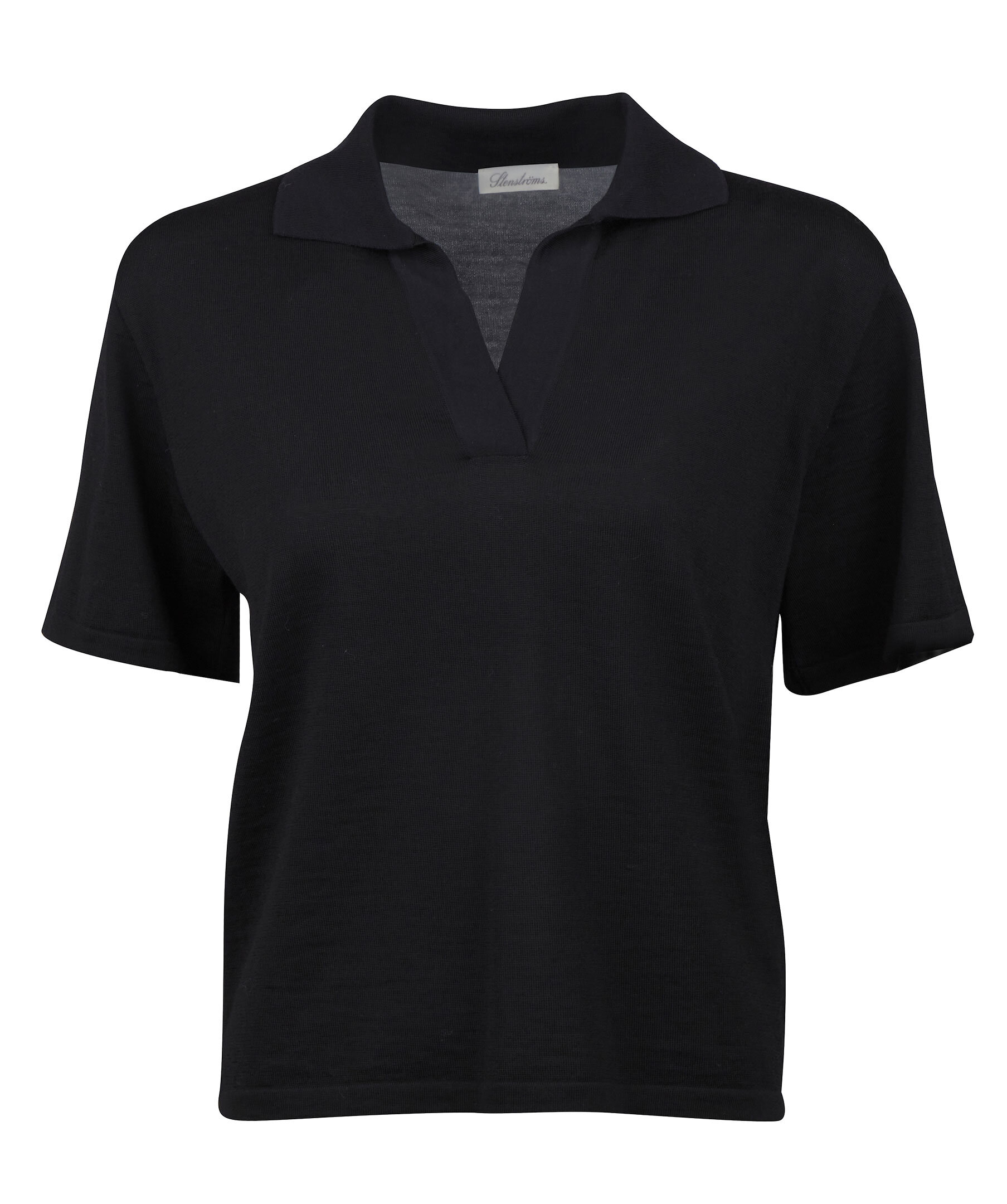 Stickad kortärmad tröja från Stenströms i Merinoull med öppen krage som skapar en V-ringning. Det perfekta plagget för en avslappnad och elegant stil.