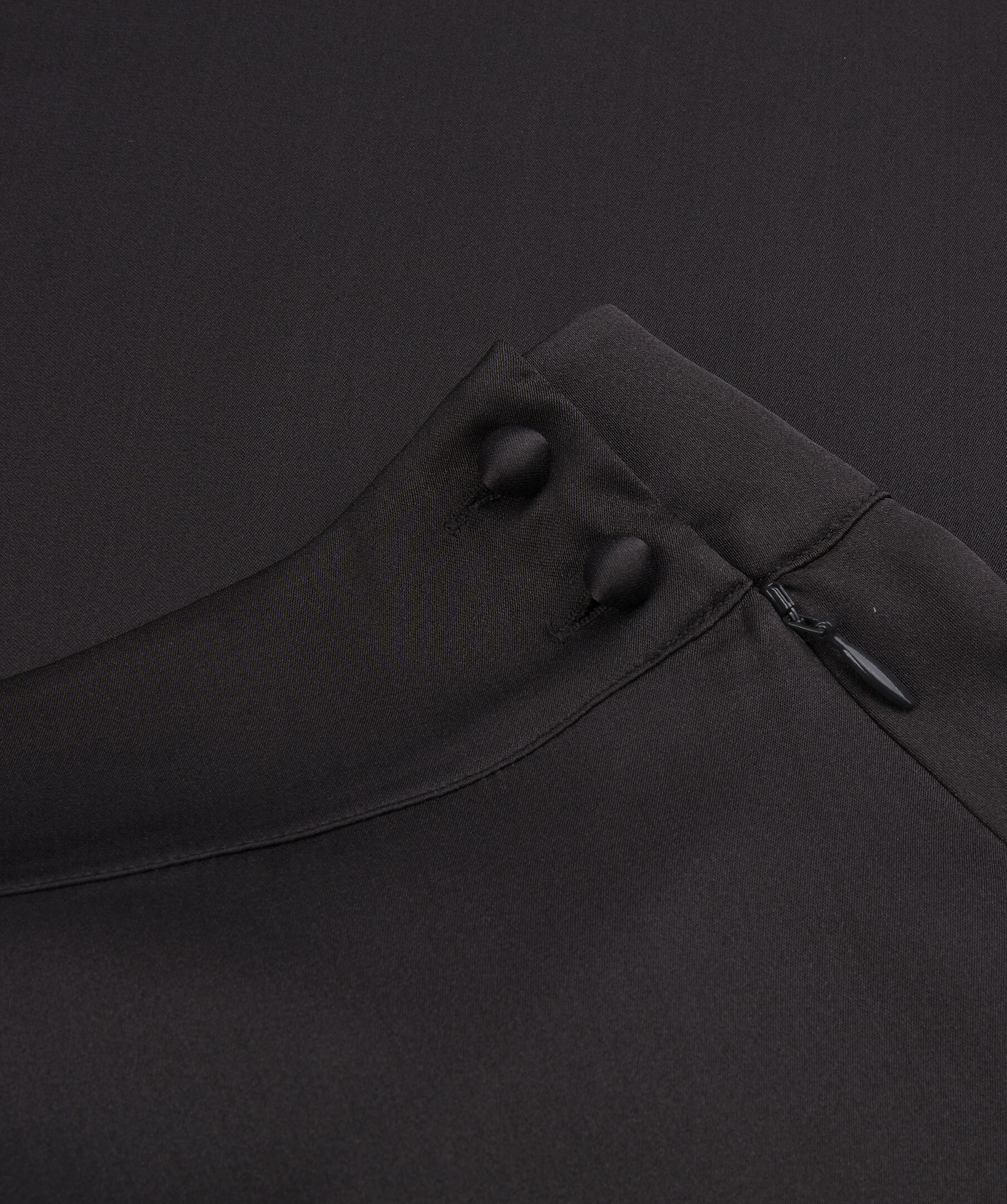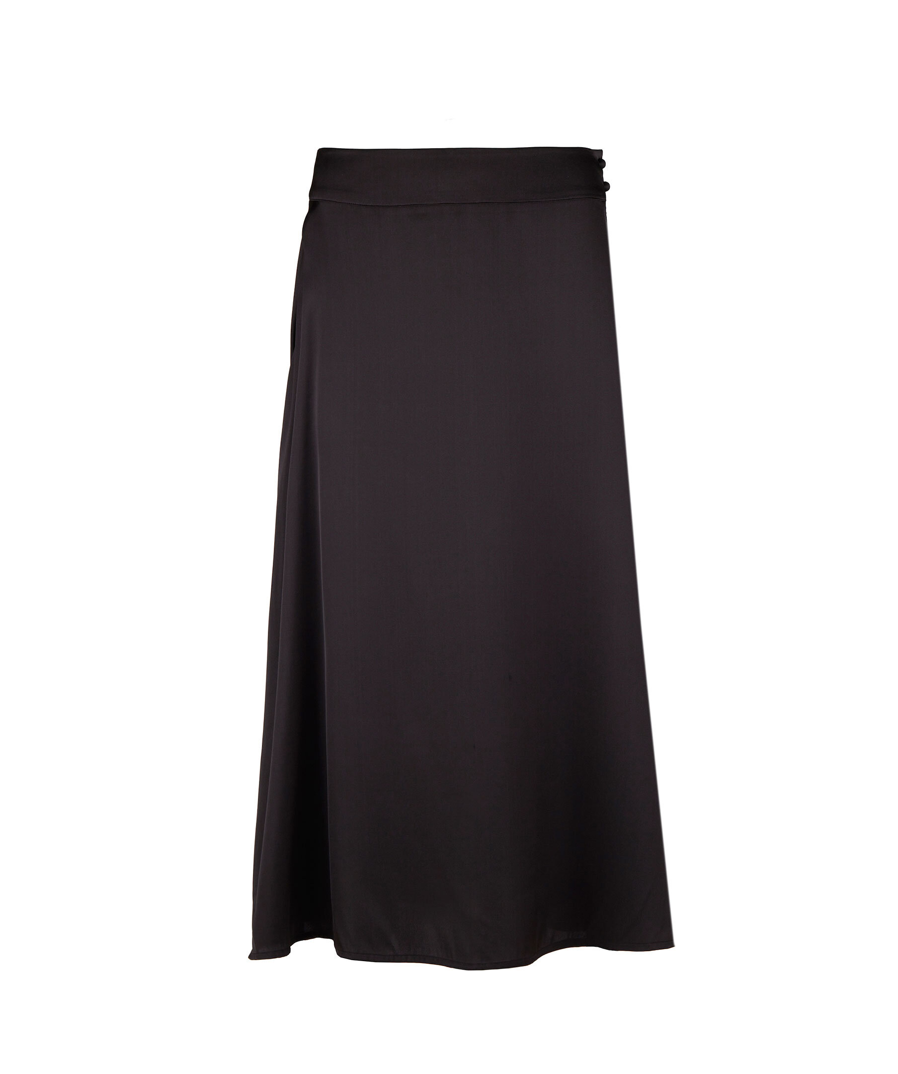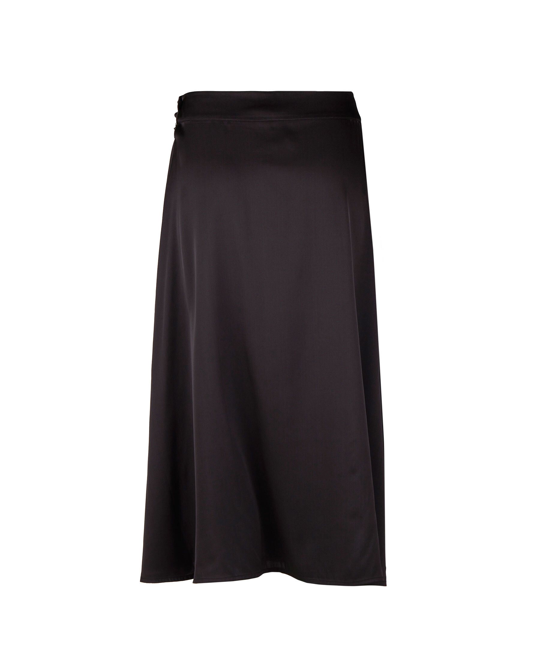 Medellång sidenkjol med adderad stretch. Dold dragkedja och klädda knappar i midjan.