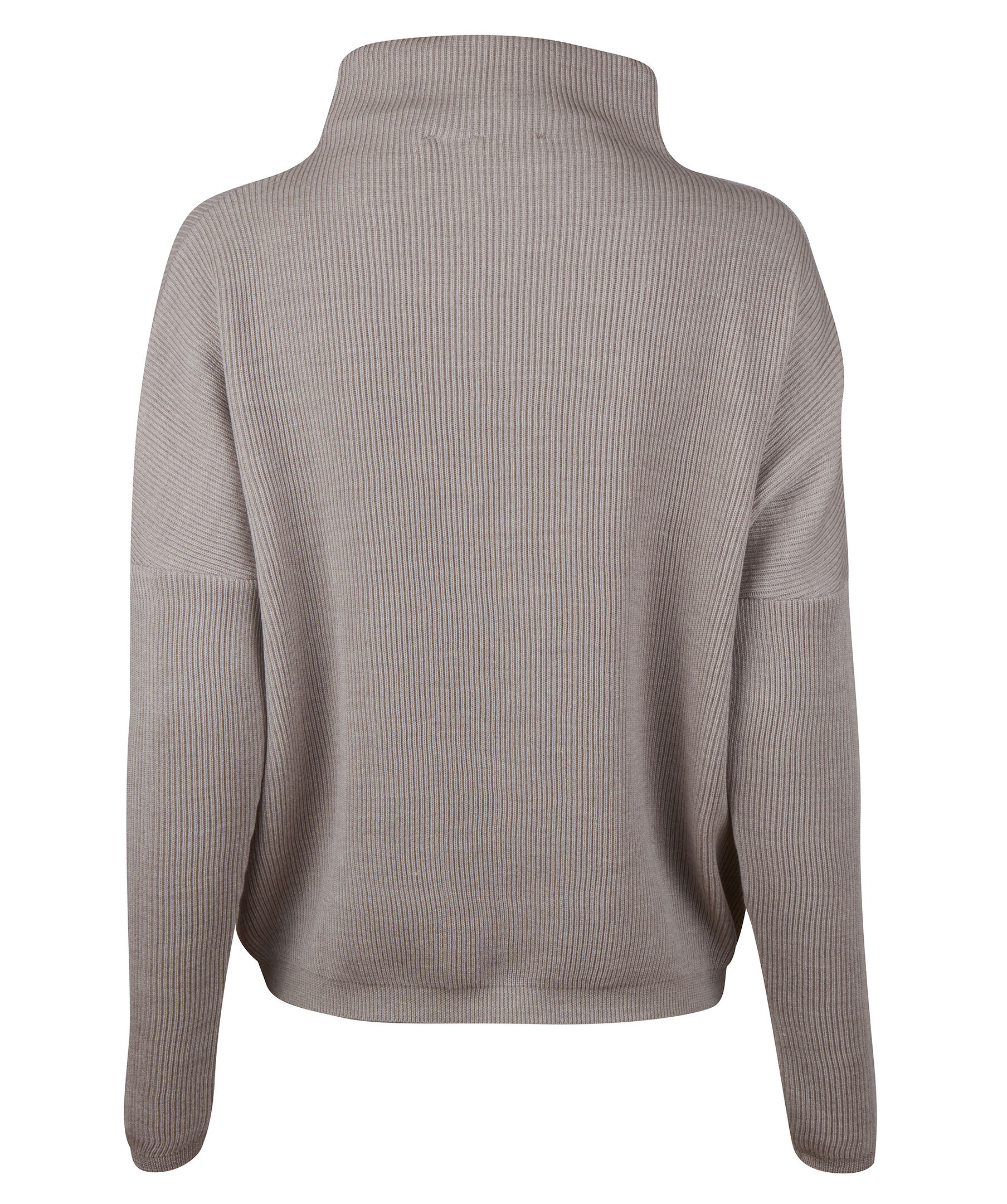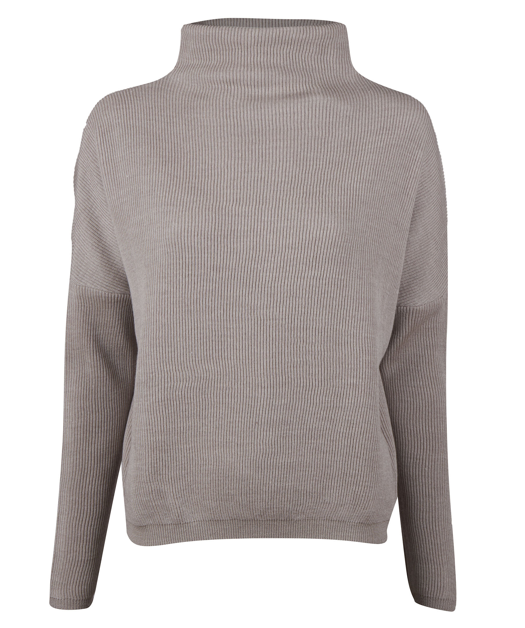 Ribbstickad tröja, med en oversize passform. Tillverkad i merinoull och detaljerad med en hög krage.