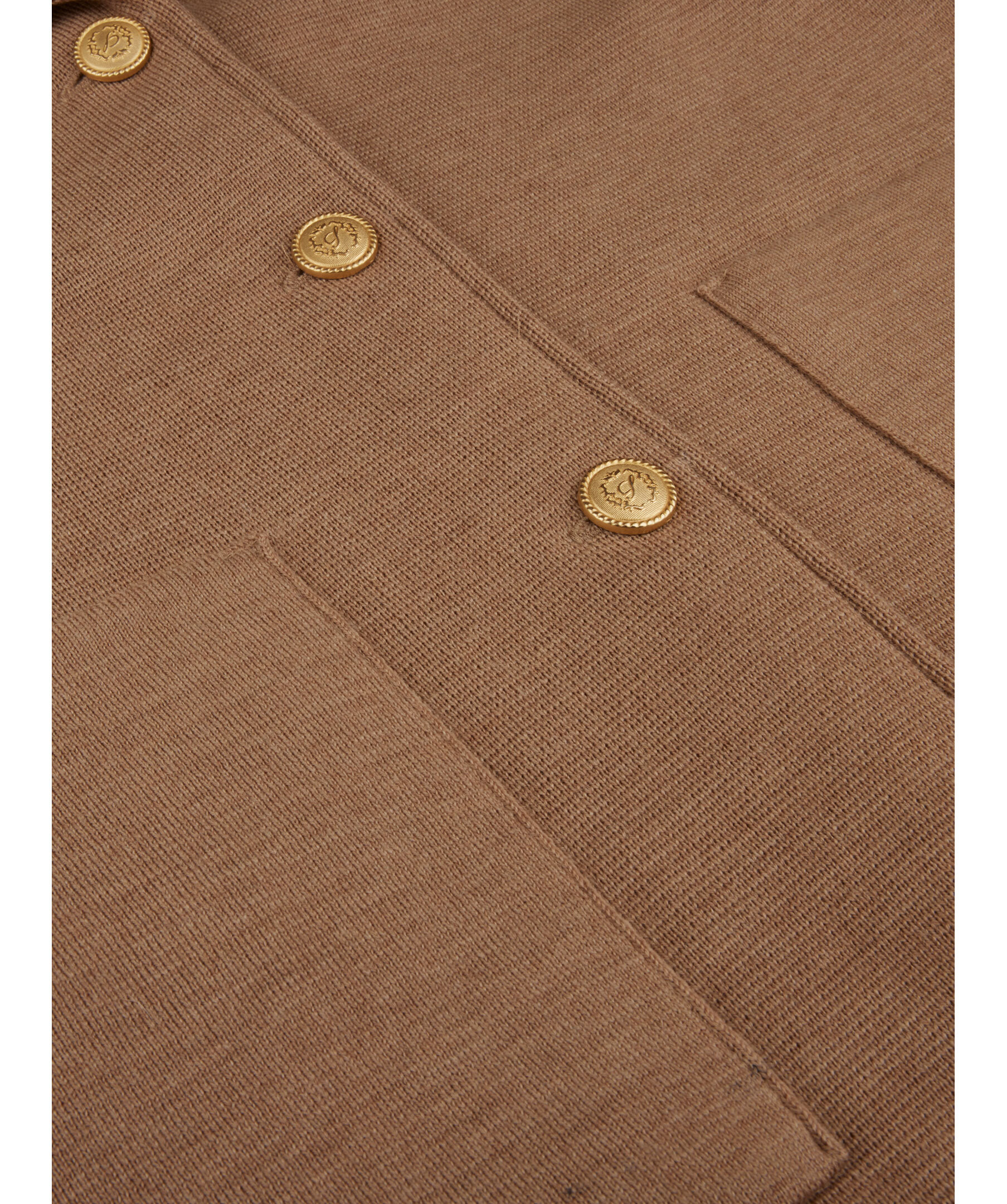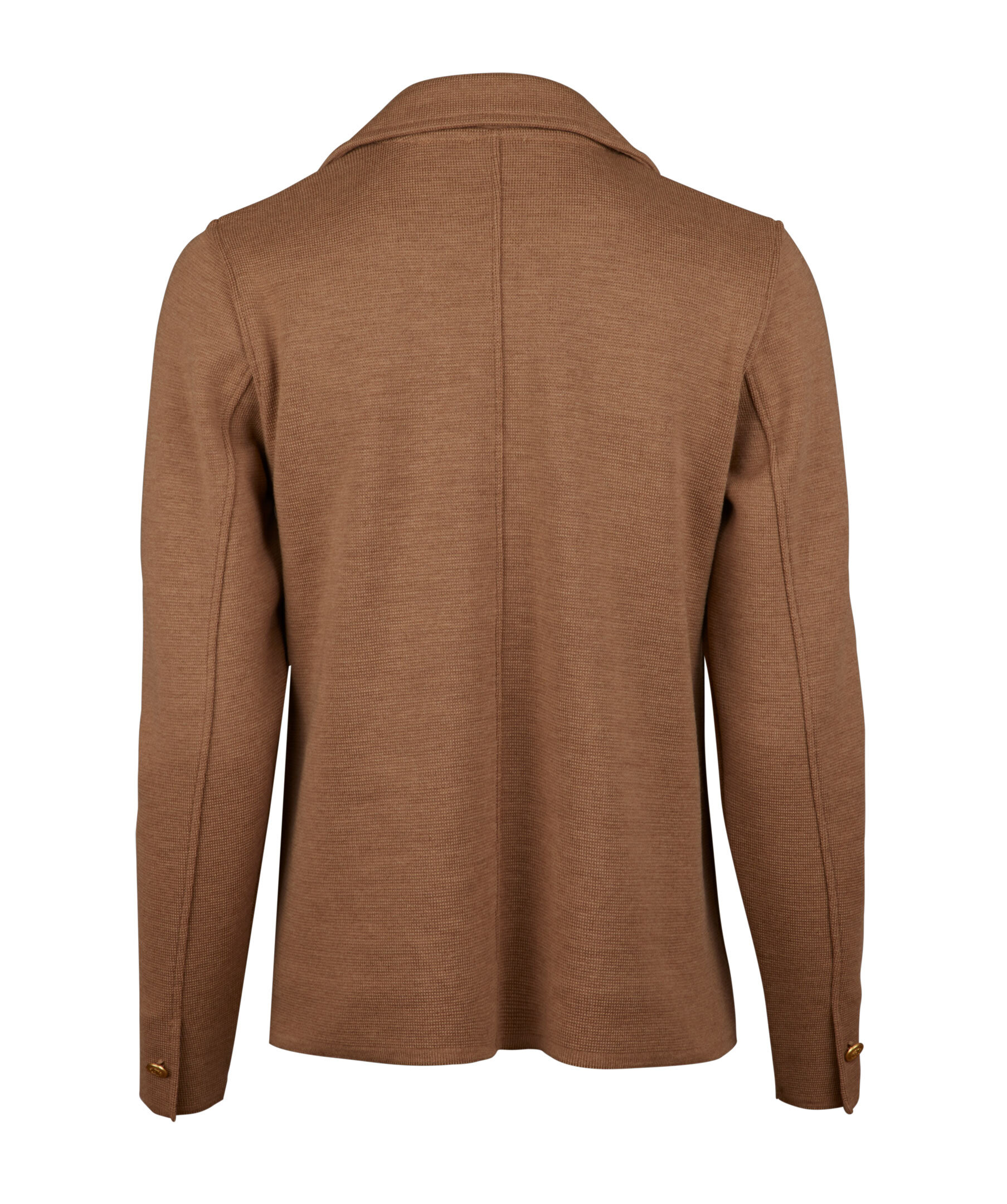 Brun kofta från Stenströms och har en rak passform. Koftan har slag, guldknappar och två fickor framtill. Tillverkad av merinoull.