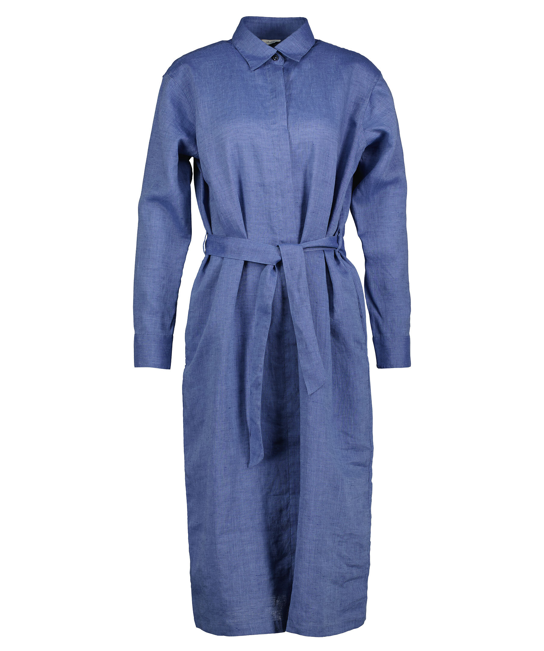 Blå skjortklänning från Stenströms. Tillverkad i 100% linne. Dold knäppning i fram samt snörning.
