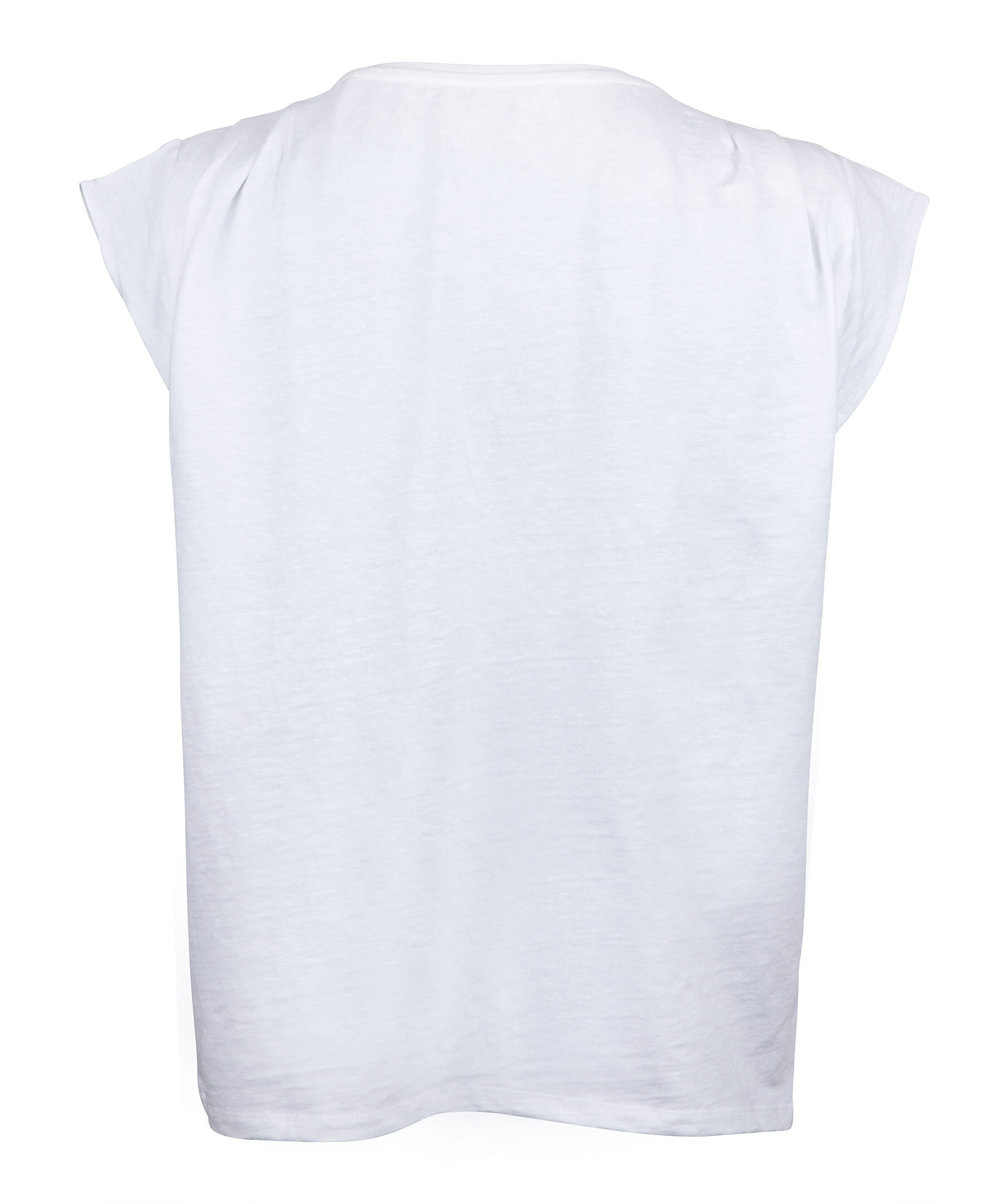 Vit topp, med en oversize passform, i linne och jersey. Detaljerad med veck vid axlarna.