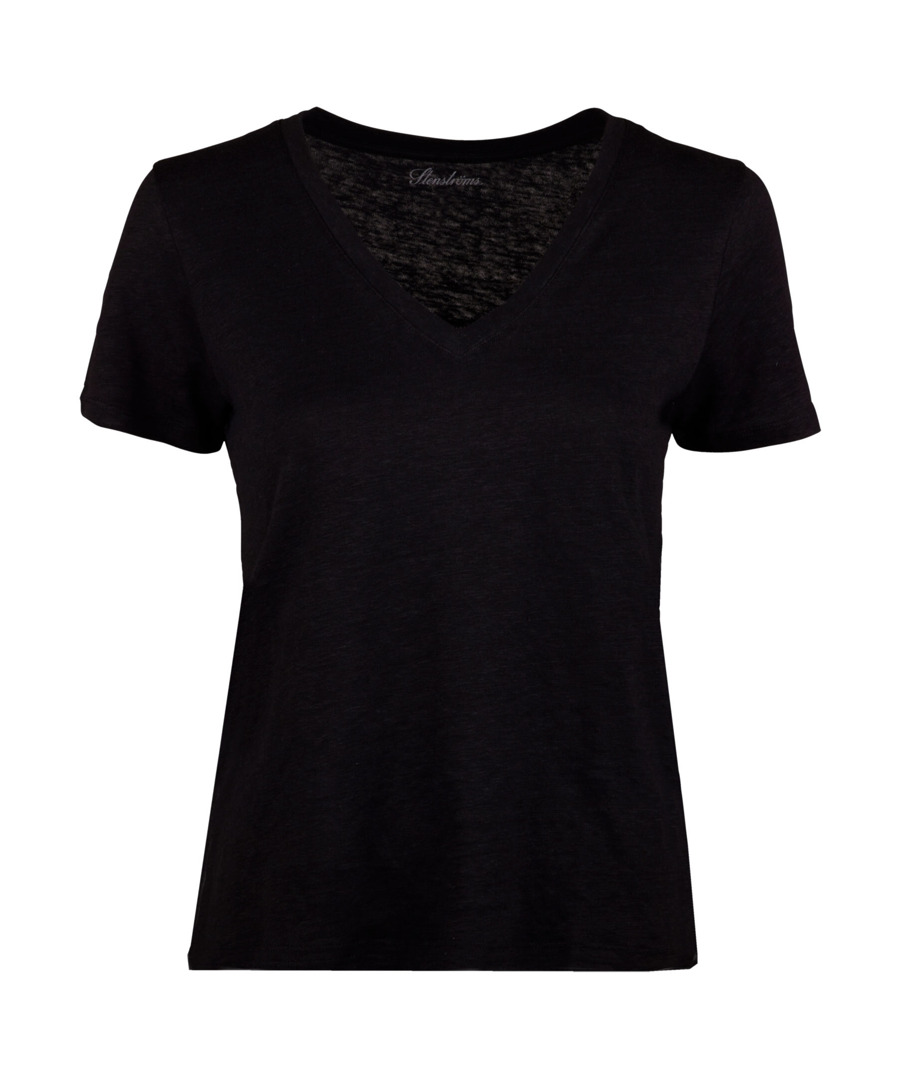 Denna T-shirt är tillverkad av linne och har en klassisk passform. Skjortan har en v-ringning och korta ärmar.