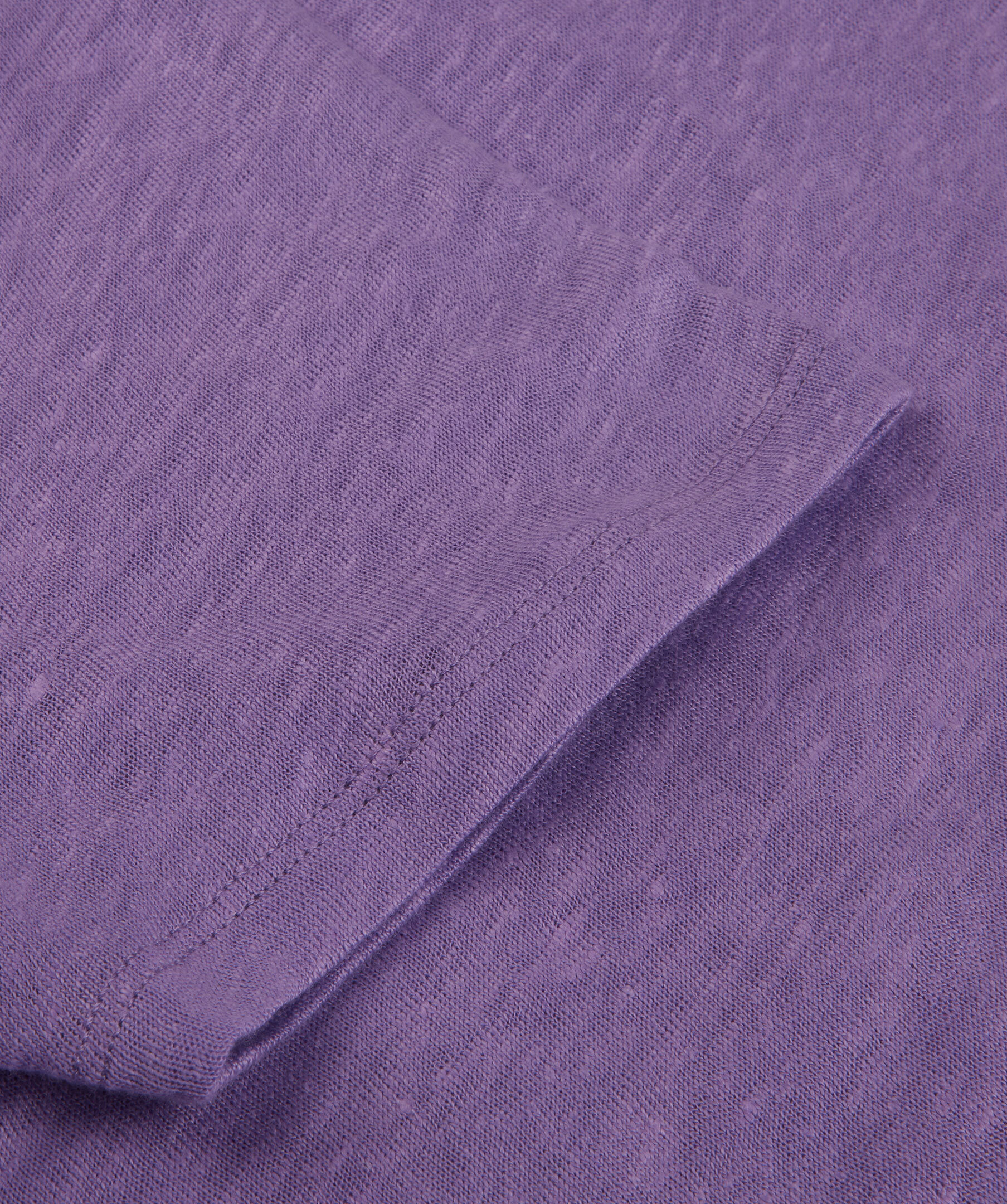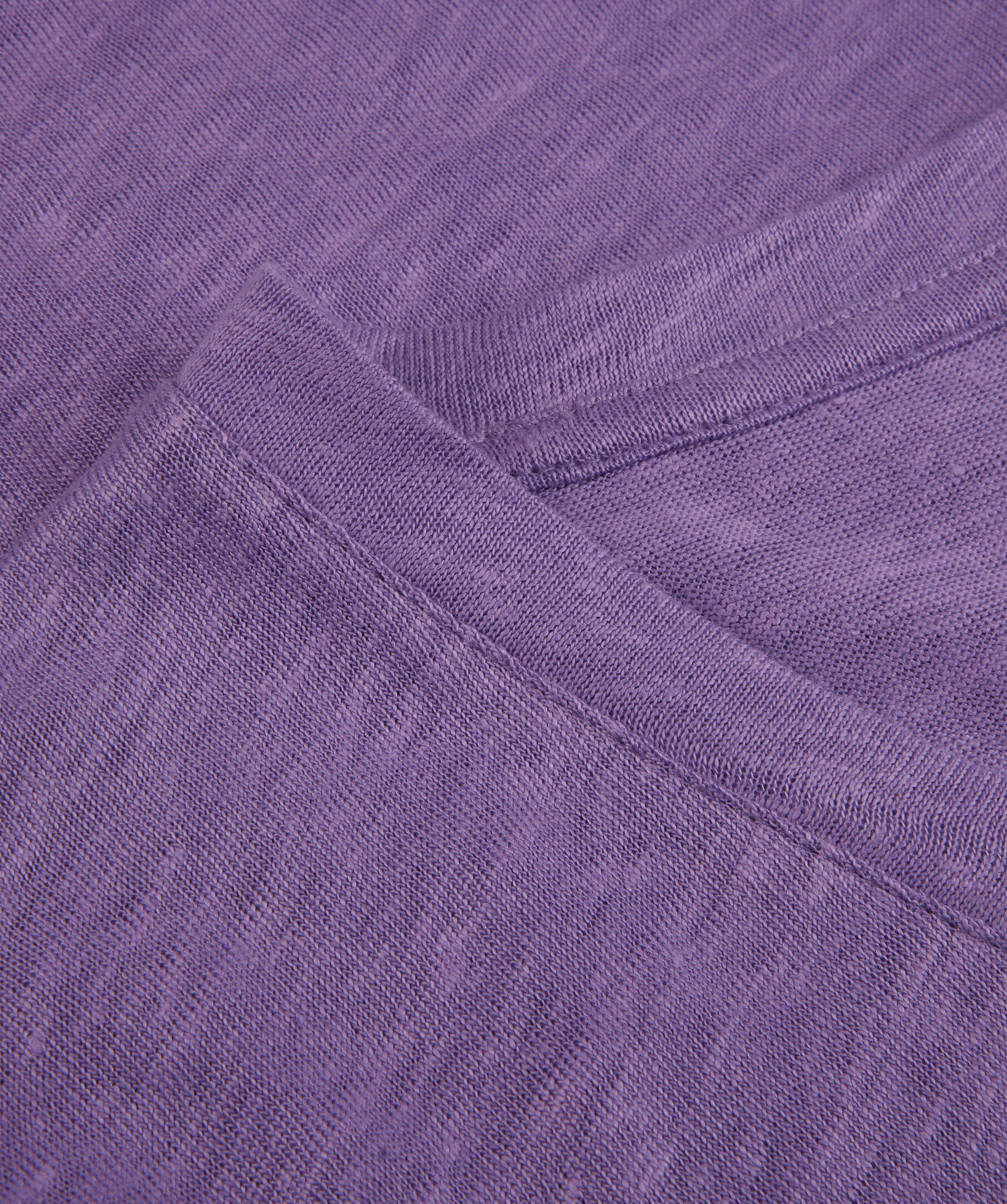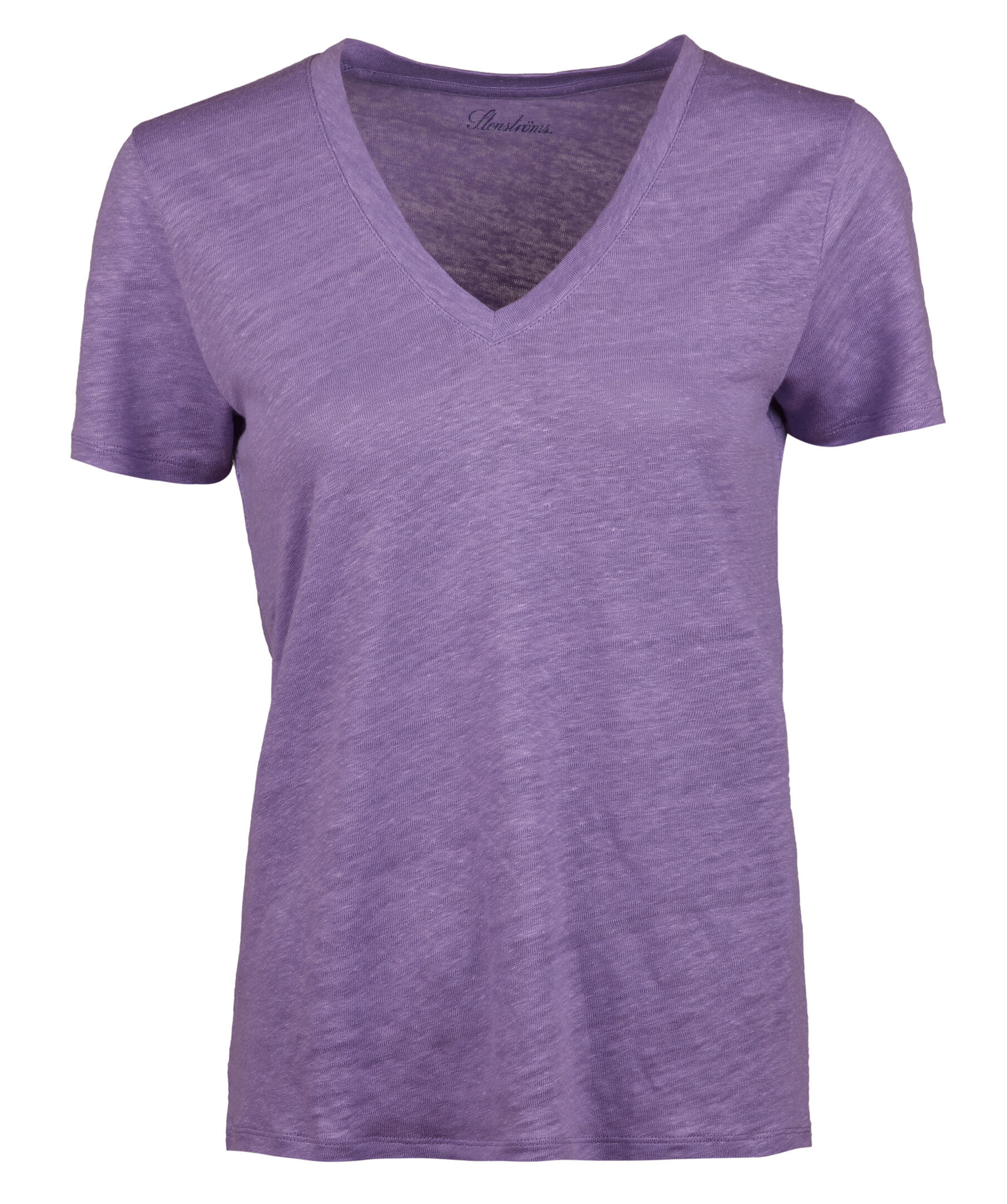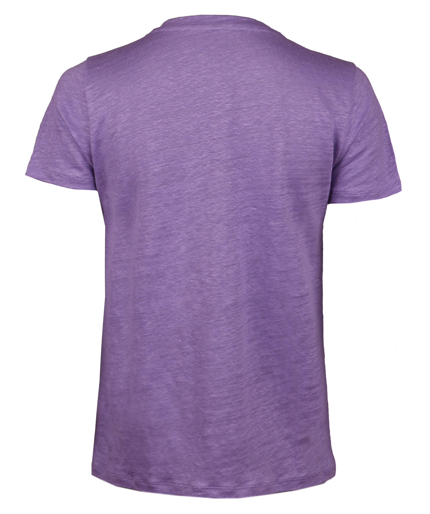 Lila oversized t-shirt, tillverkad av 100% linne jersey. Designad med en v-ringning.