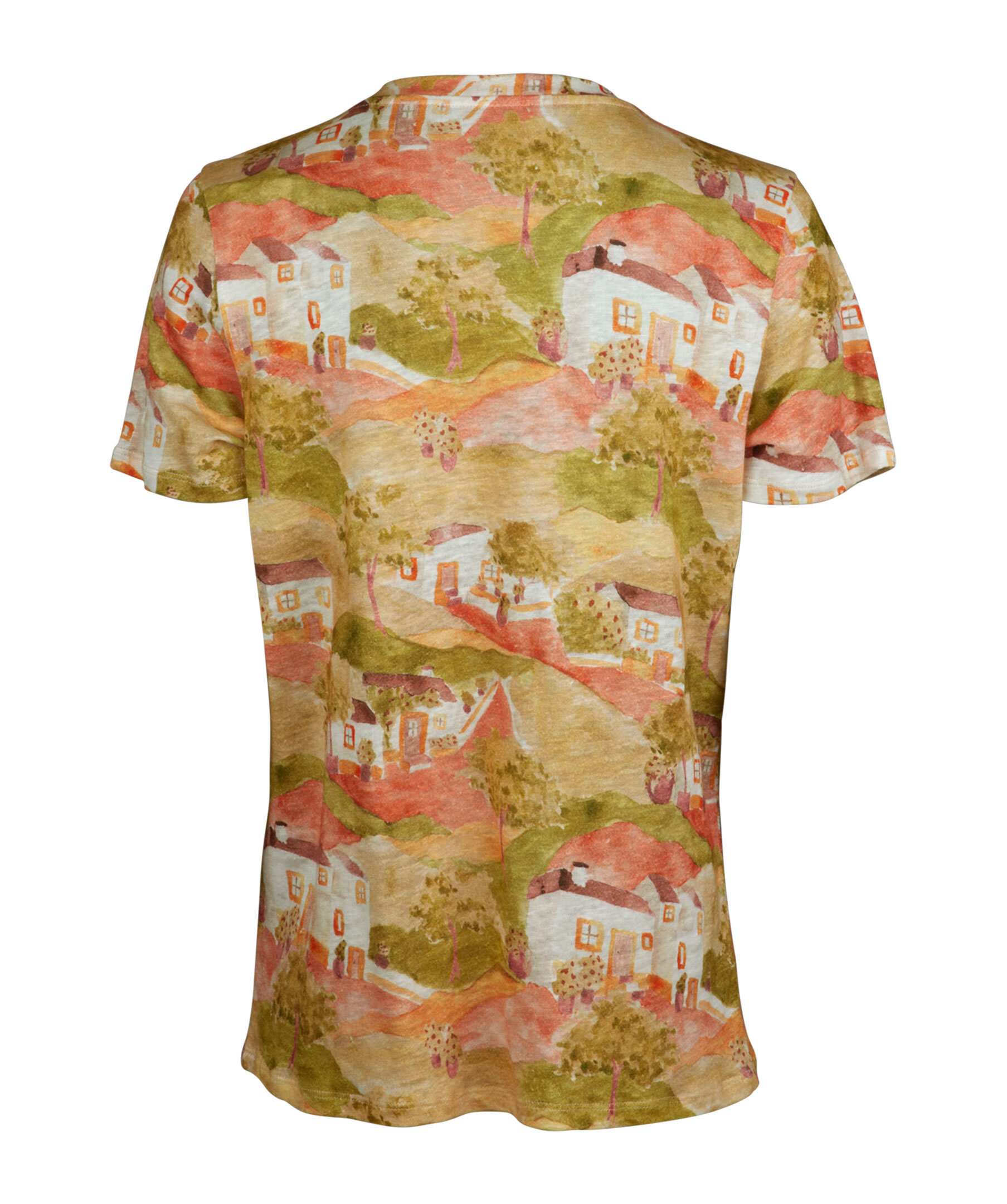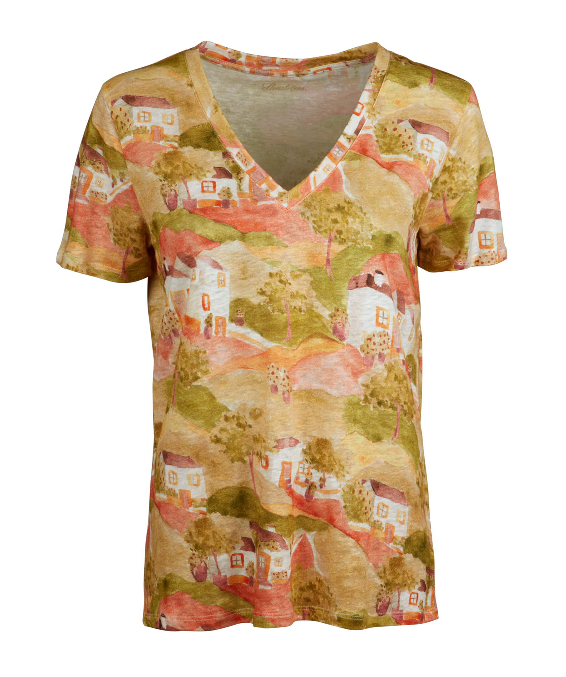 Denna v-ringade t-shirt är tillverkad av linne och har ett mönster.