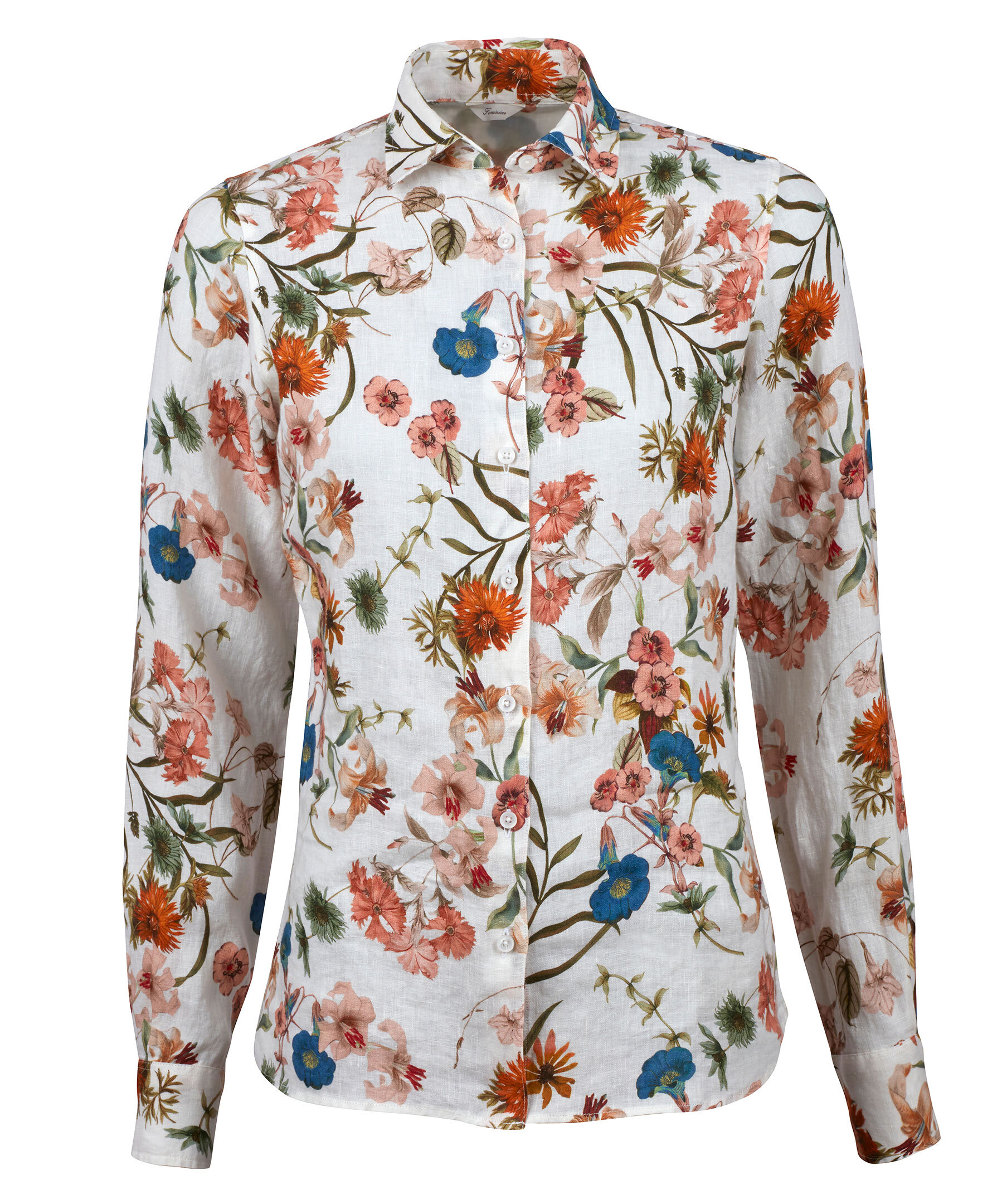 En klassisk linneskjorta i feminin modell går aldrig ur tiden. Den här skjortan är skuren i en lätt linne som andas och är har en avslappnad kvinnlig passform med en något markerad midja. Det luftiga tyget gör den bekväm att bära, speciellt under varma sommardagar. Bär den tillsammans med ett par vita jeans och ballerinaskor eller loafers för en avslappnad somrig look.
