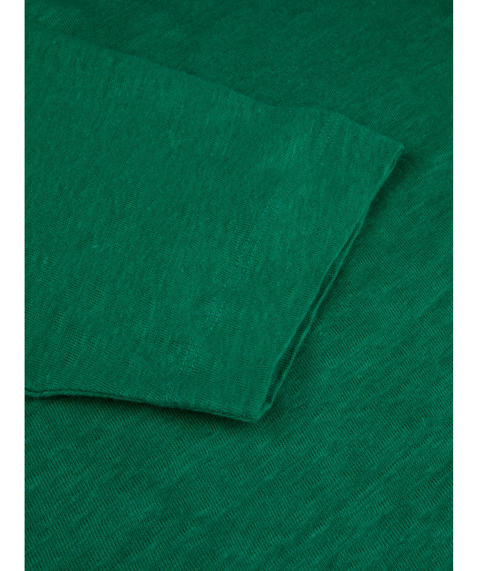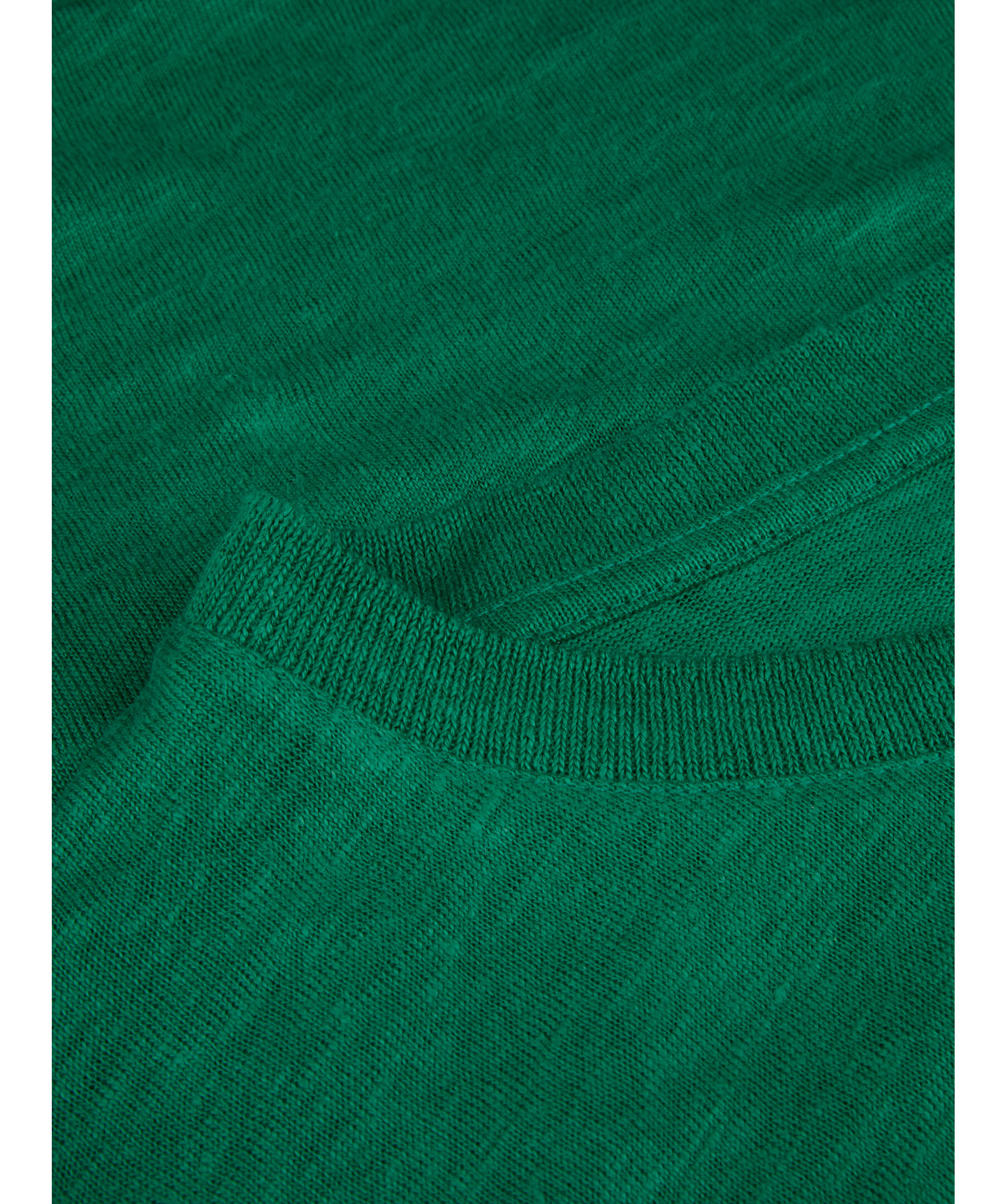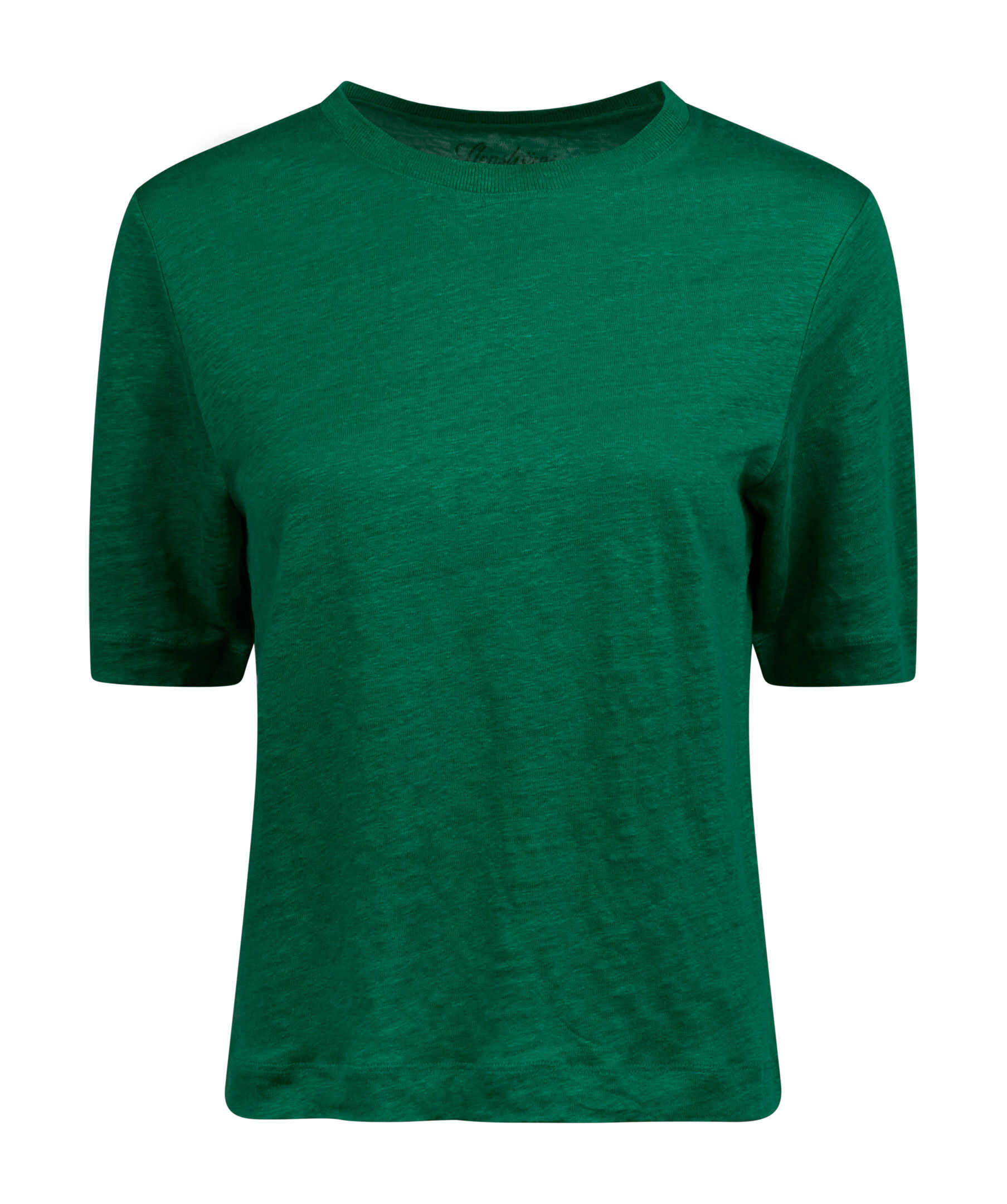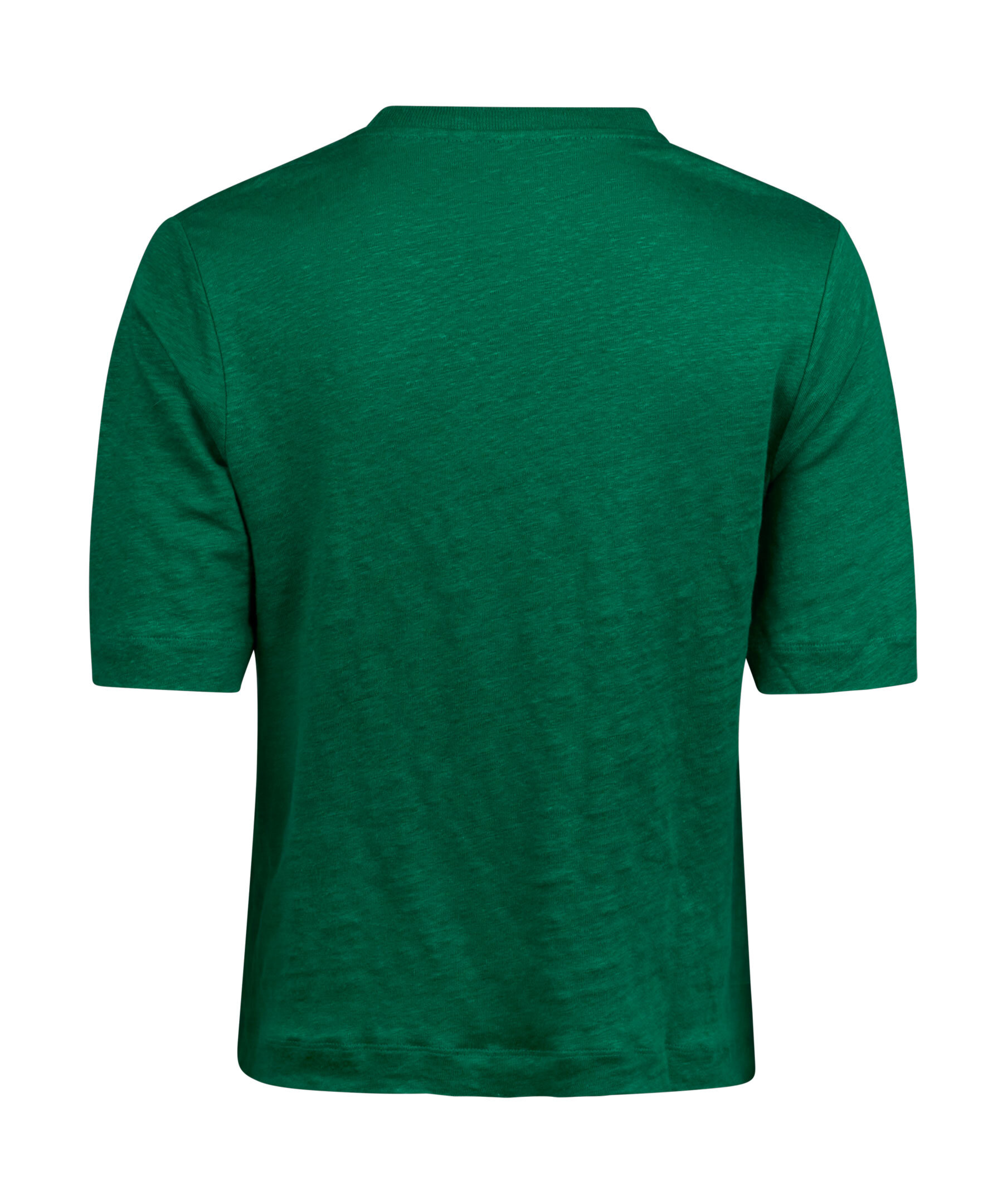 Denna topp är tillverkad av linne och har rundad halsringning och korta ärmar.