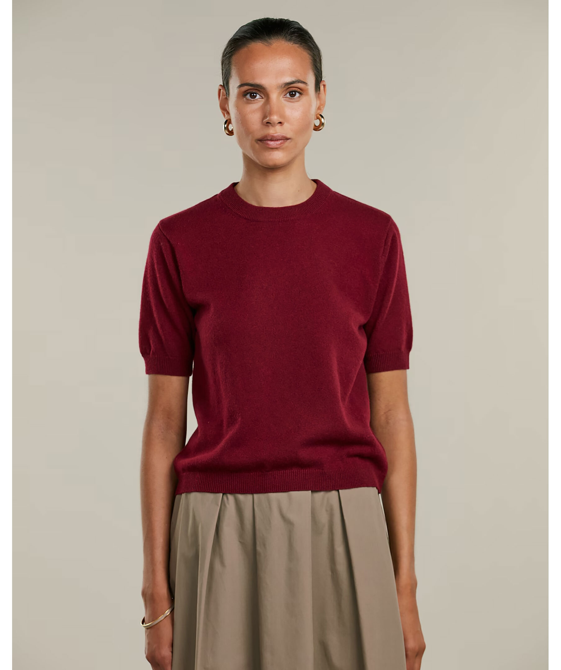 Janet röd kashmirtop från Stenströms. Denna stickade topp är tillverkad i 100 % kashmir och har korta ärmar samt rund halsringning. Ribbstickade detaljer vid krage, ärm- och plaggslut ger en elegant finish. En stilren och tidlös topp som passar både till vardags och fest.