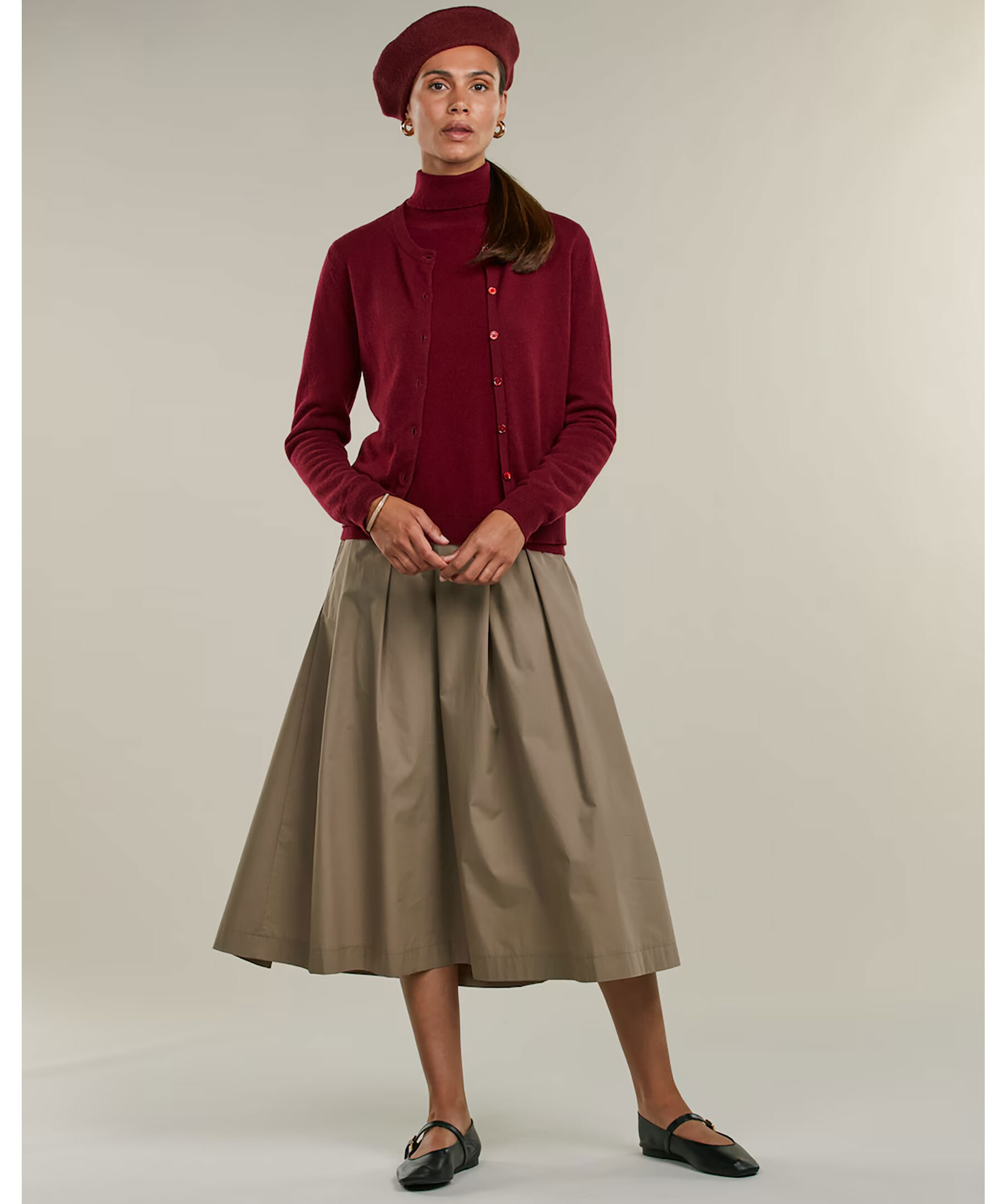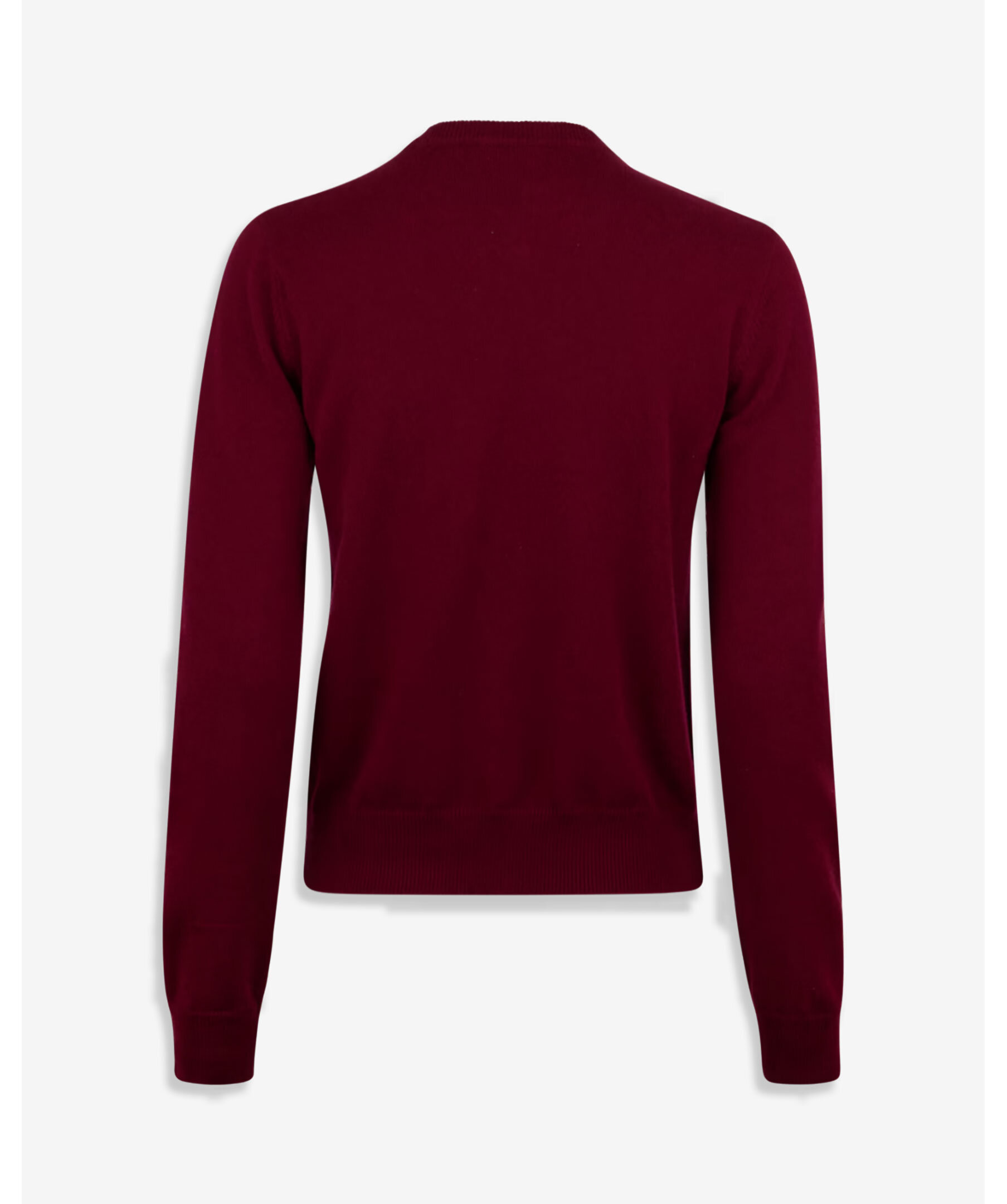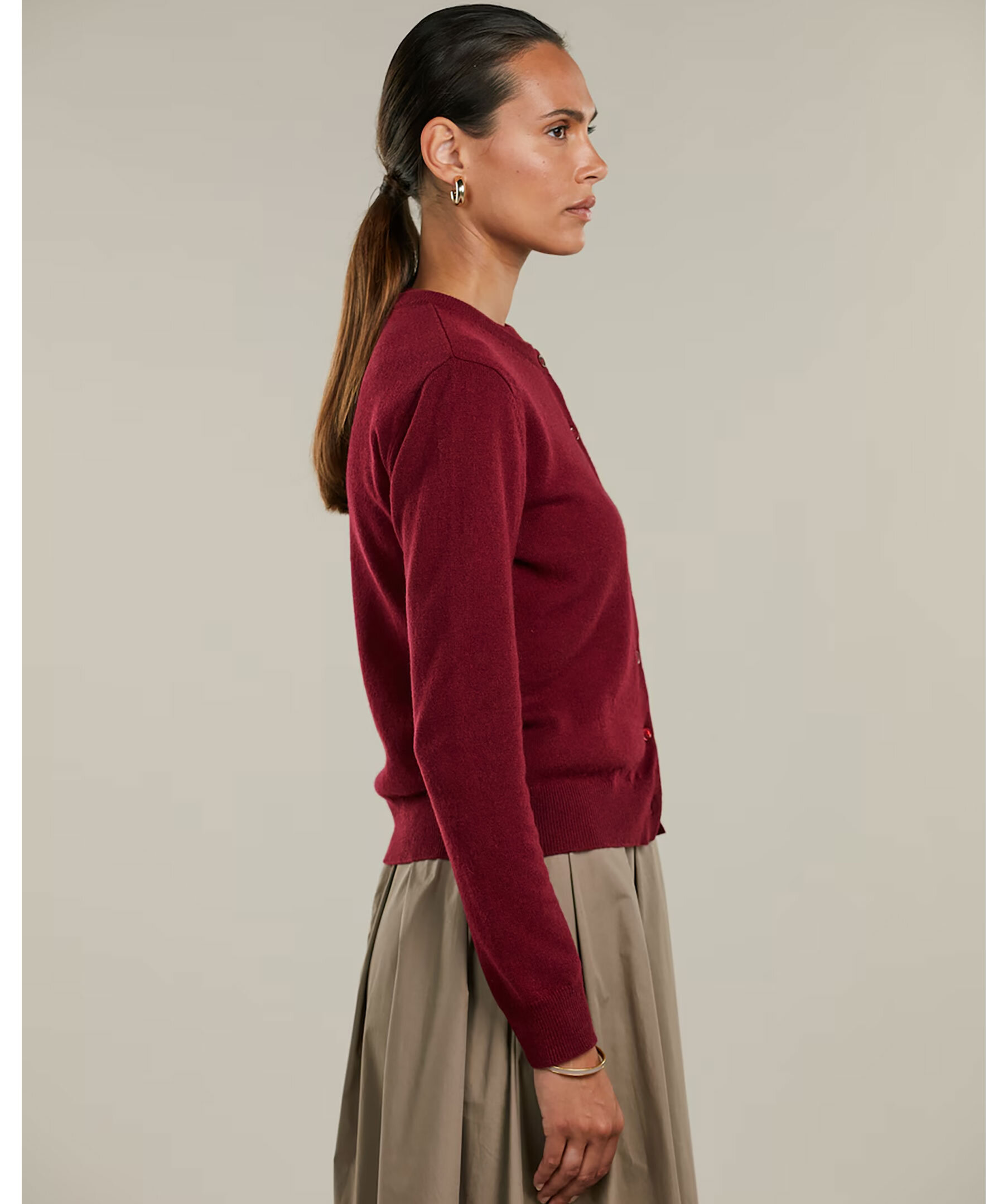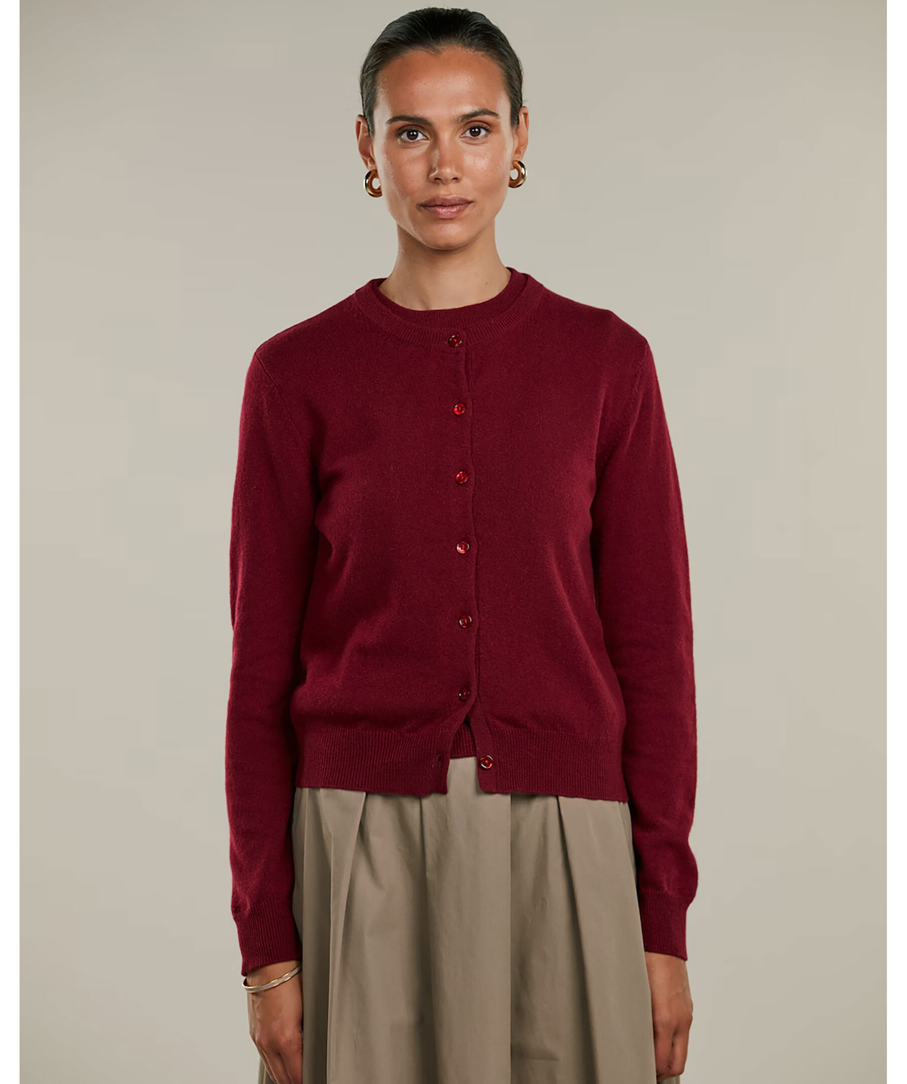 Judith röd kashmirkofta från Stenströms. Denna kofta är tillverkad i 100 % kashmir och har pärlemorknappar. Den är detaljerad med ribbstickad mudd vid krage, ärm- och plaggslut.
