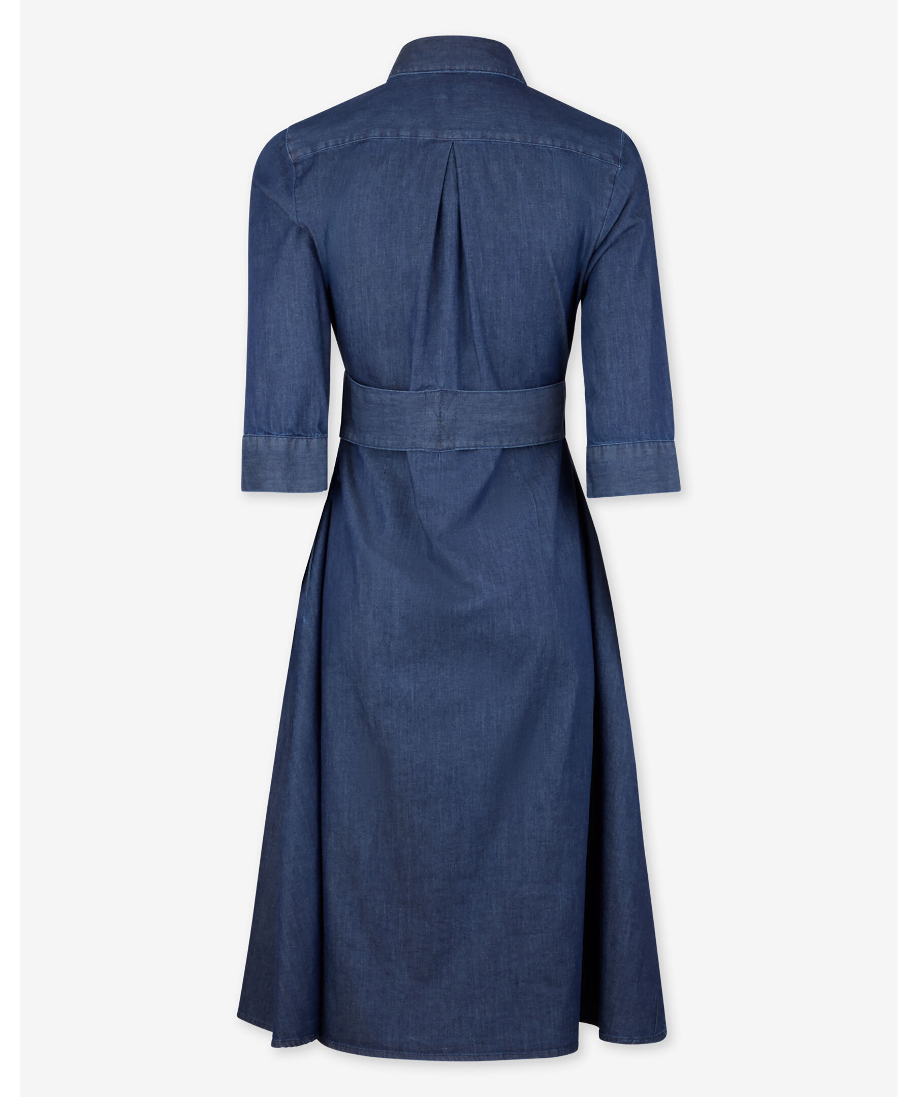 Blå jeansklänning från Stenströms tillverkad i en mjuk bomullsblandning. Klänningen har trekvartsärmar och en dold knappslå samt bälte i midjan.
