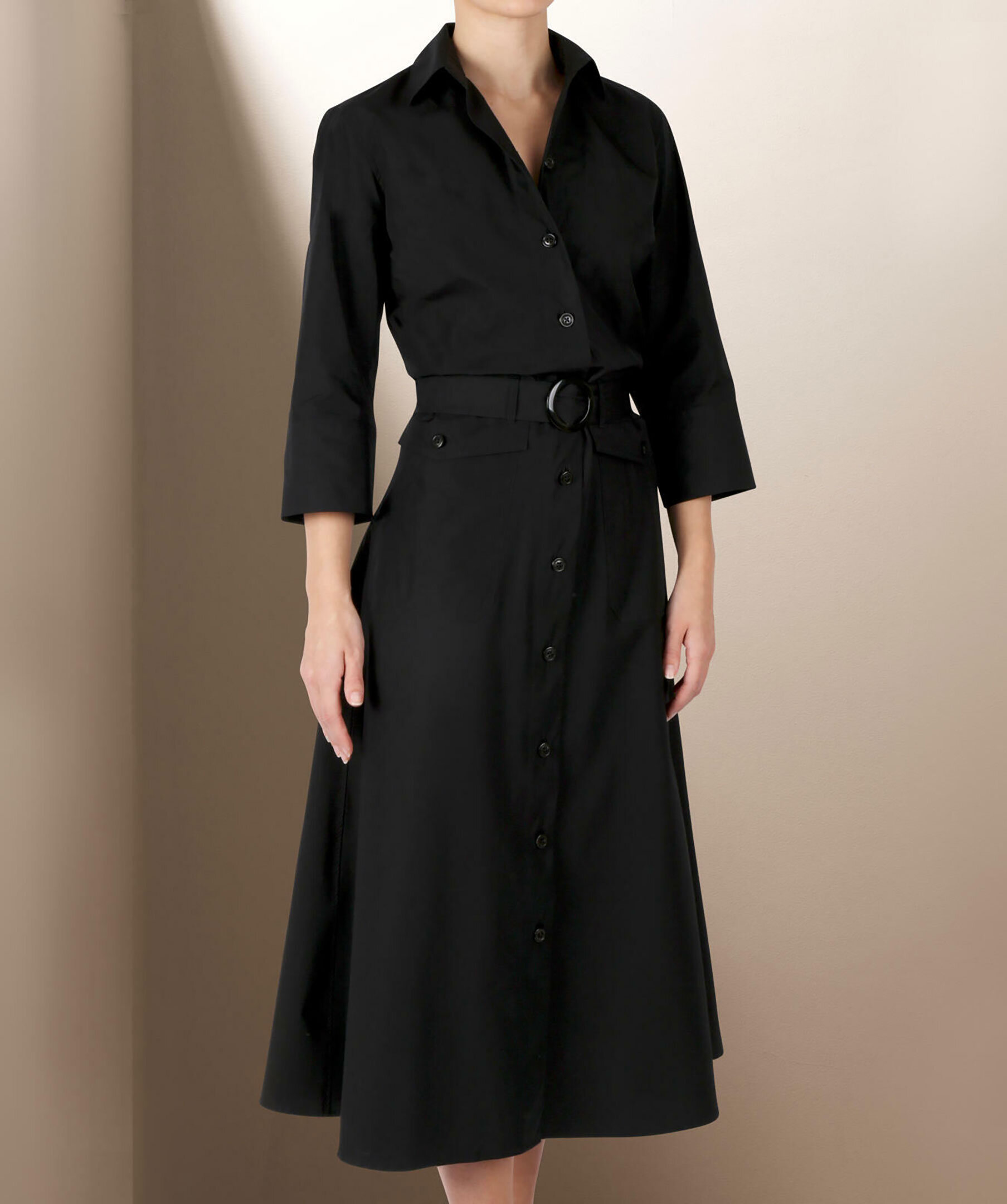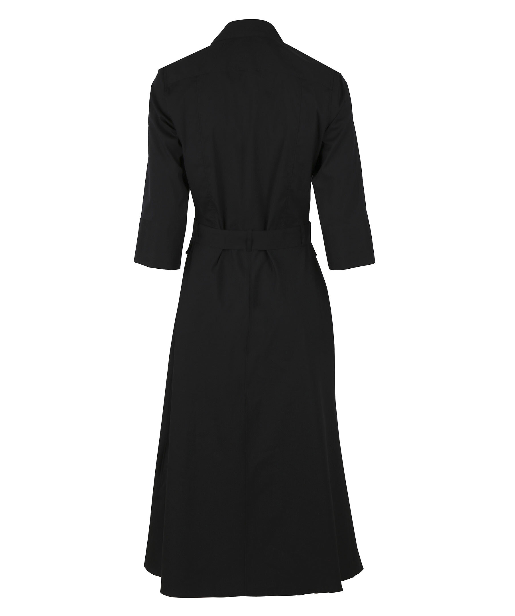 Klänningen Alba har en sofistikerad och elegant stil med detaljer som är hämtade från klassiska arbetarkläder. Utanpåliggande fickor, 3/4 ärmar och ett band i midjan gör att klänningen känns feminin och intressant på samma gång.
