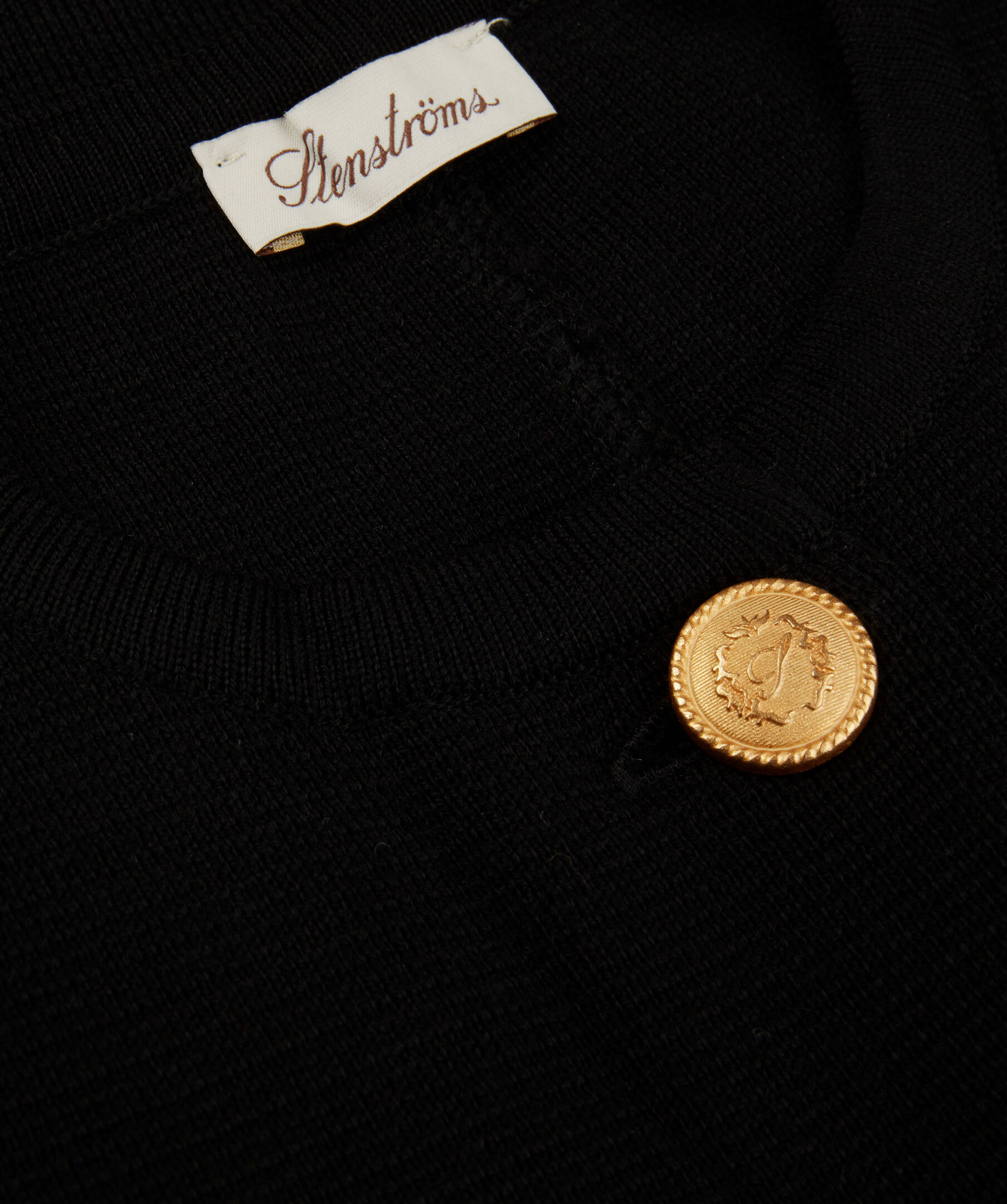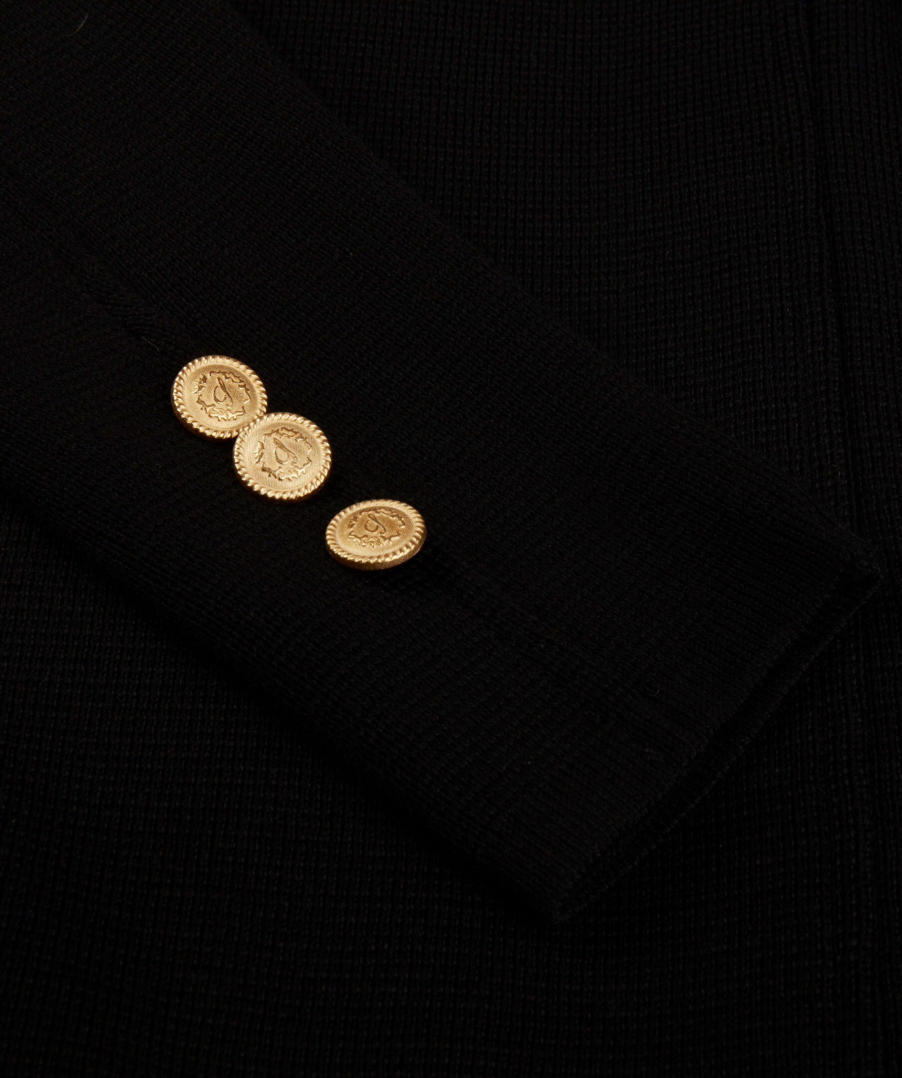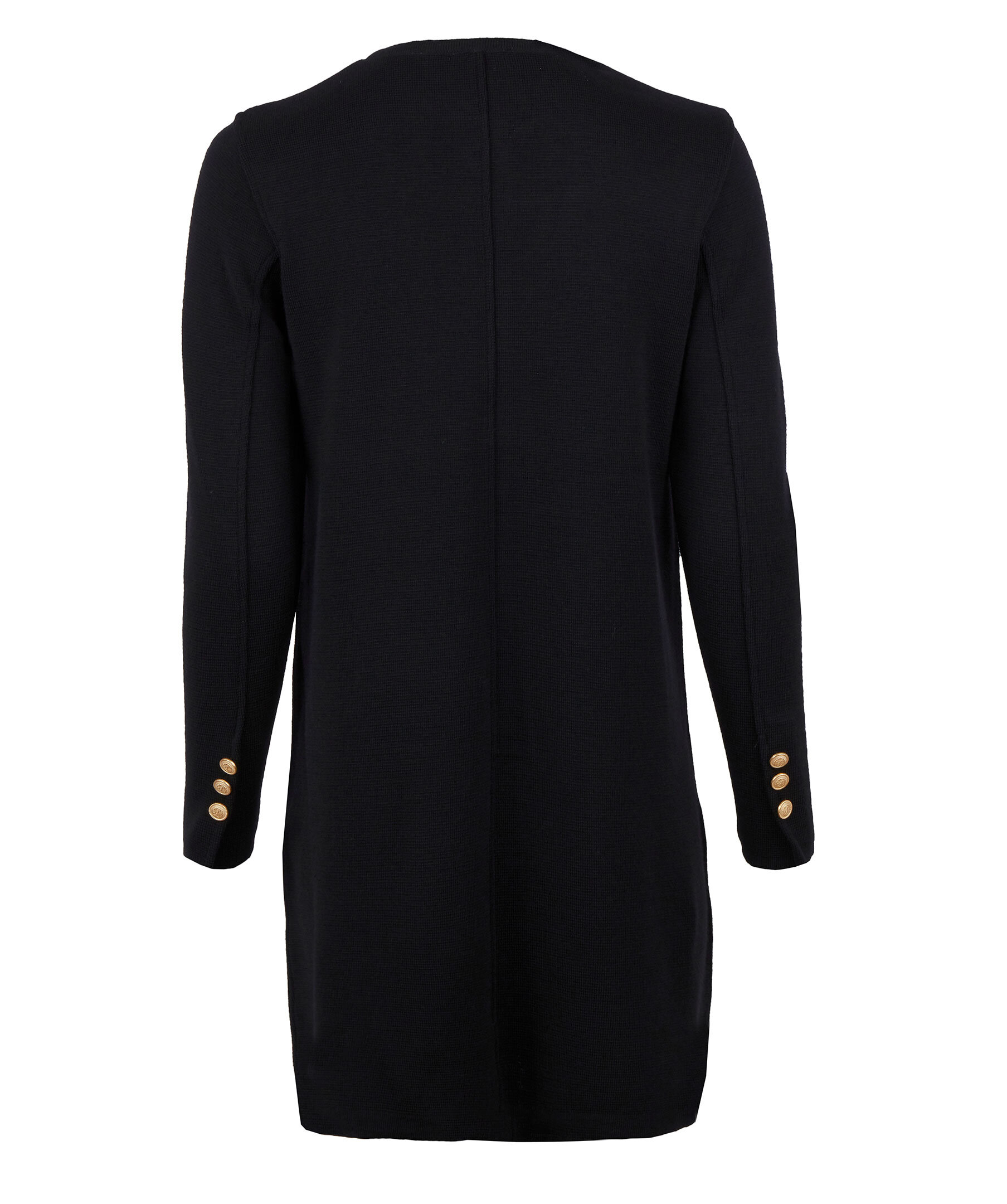 Lång cardigan, tillverkad i merinoull. Designad med guld knappar på ärmen samt på framsidan.
