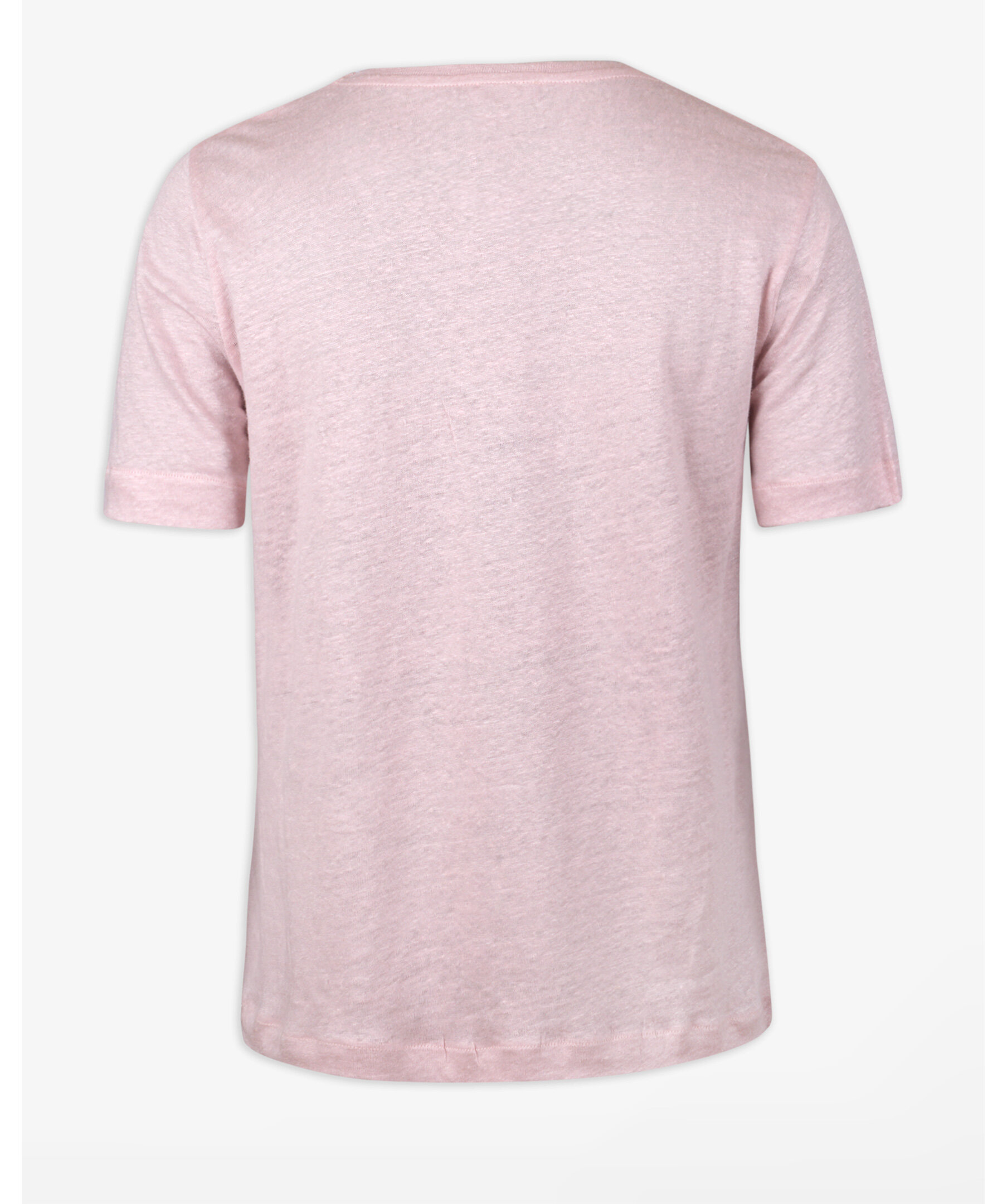 Rosa t-shirt tillverkad av linne och har en klassisk passform. Skjortan har en v-ringning och korta ärmar.