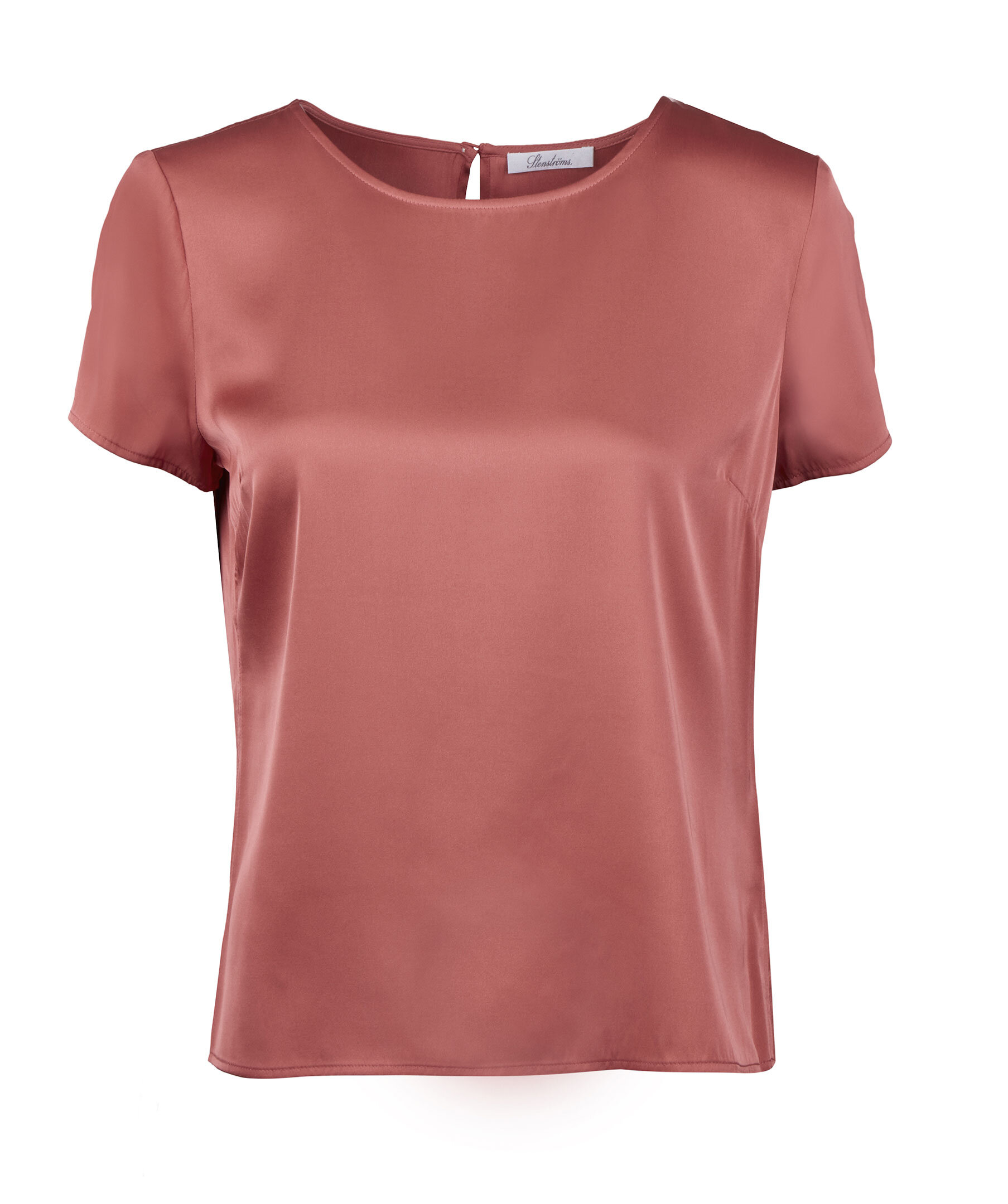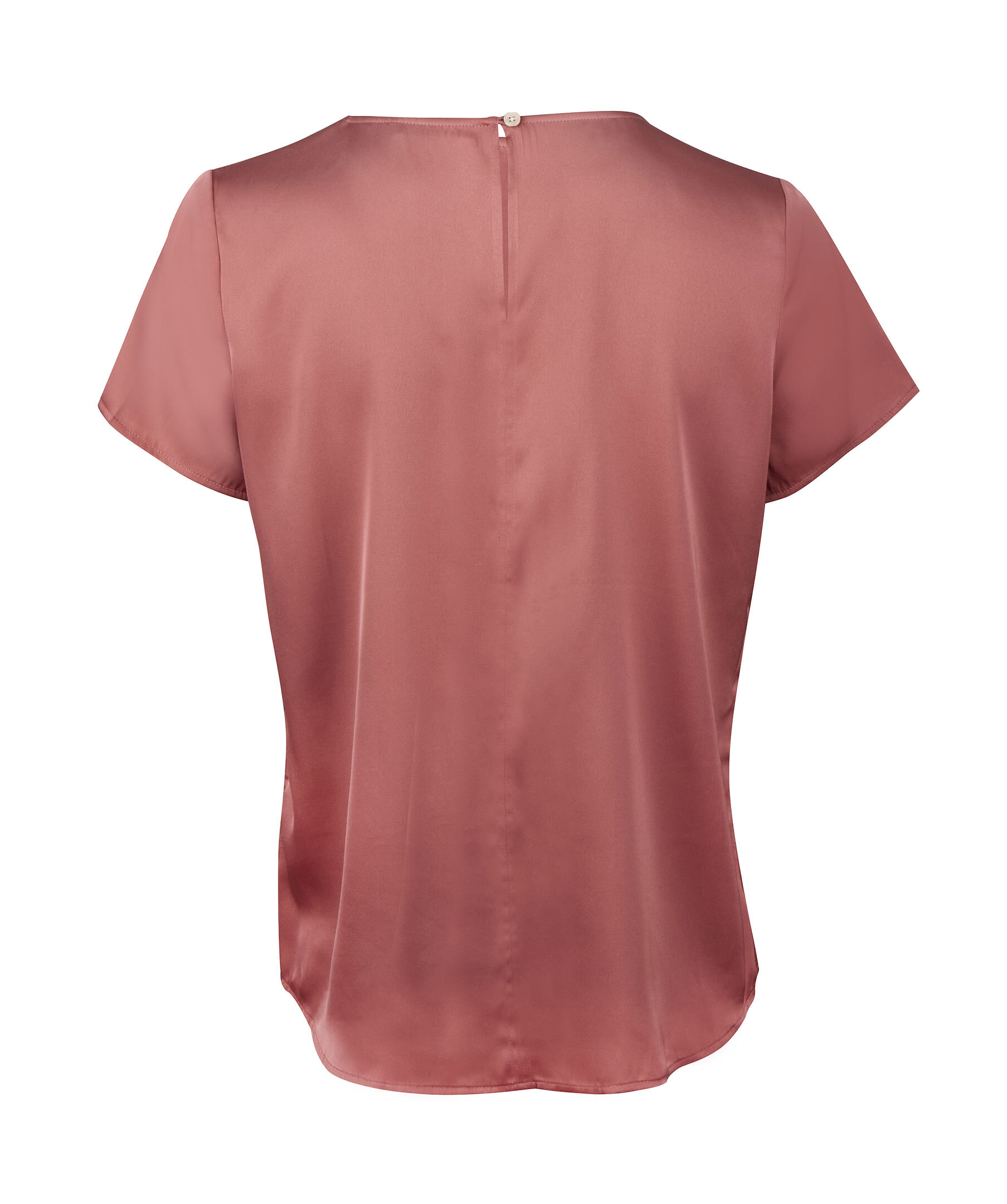 Kortärmad sidentopp med lyster och adderad stretch för en bekväm och feminin passform. Detaljerad med en rundringad hals, knäppning i nacken med ögla. Bär den till kostymbyxor eller till ett par jeans för en avslappnad men elegant stil.
