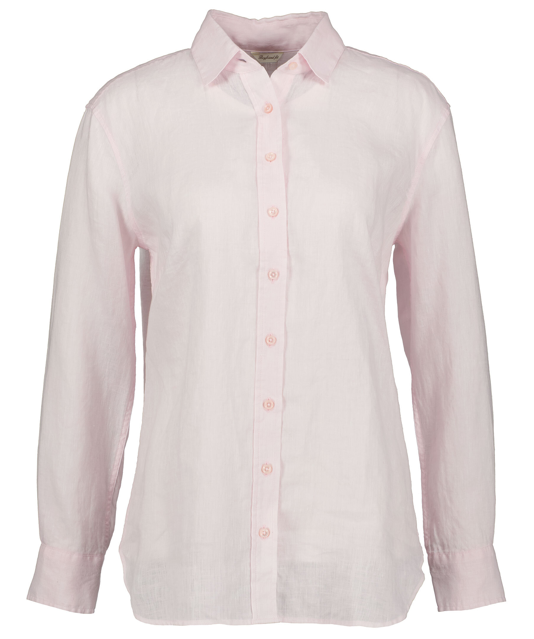 Ljusrosa linneskjorta i en en avslappnad passform från Stenströms. Gjord i 100% lin. Stängs med knappar och har veck i ryggen.