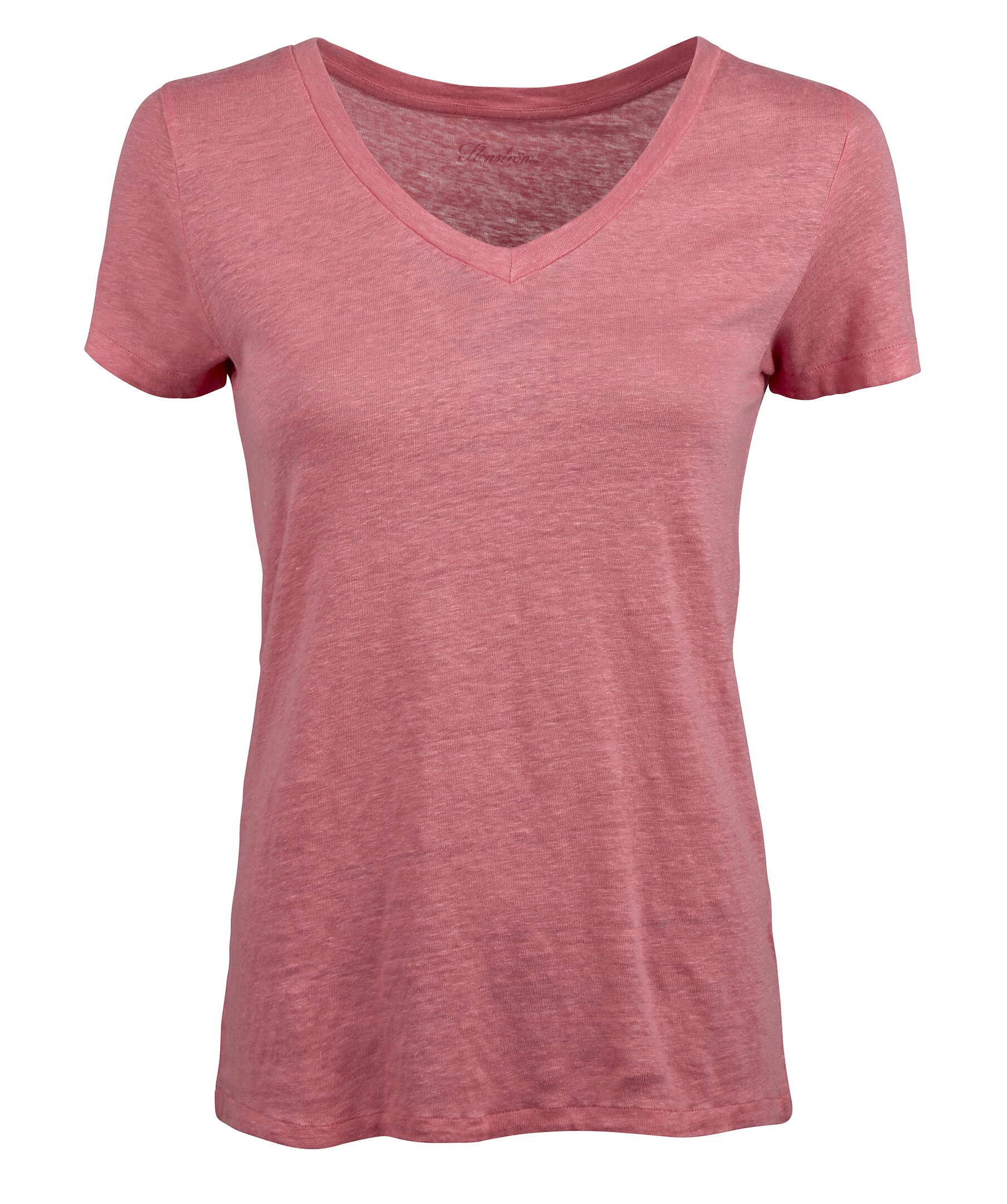 V-ringad t-shirt med en avslappnad passform i mjuk linne-jersey som har en lätt känsla. Minimalt detaljerad med V-ringad hals och korta ärmar. En grundsten i garderoben som är perfekt att bära lager-på lager under en stickad tröja eller kofta. Bär den som den är till ett par jeans för en enkel ledig stil. Kan dra ihop sig vid tvätt.