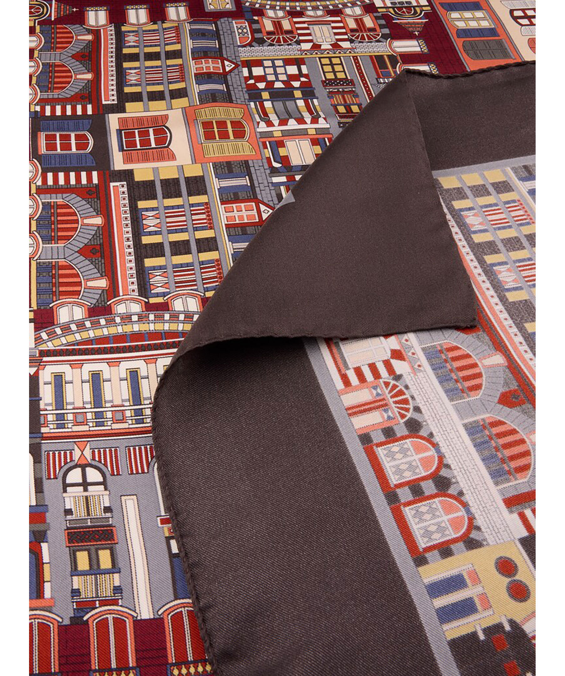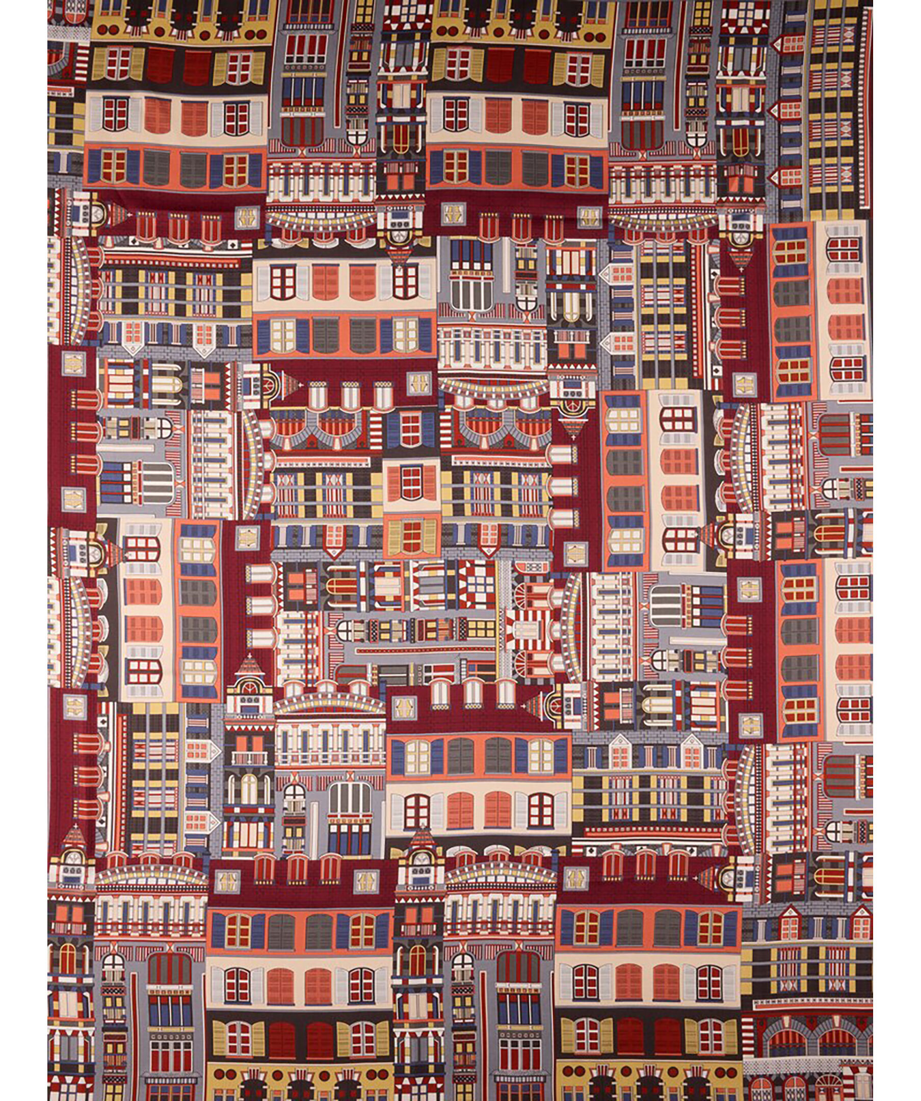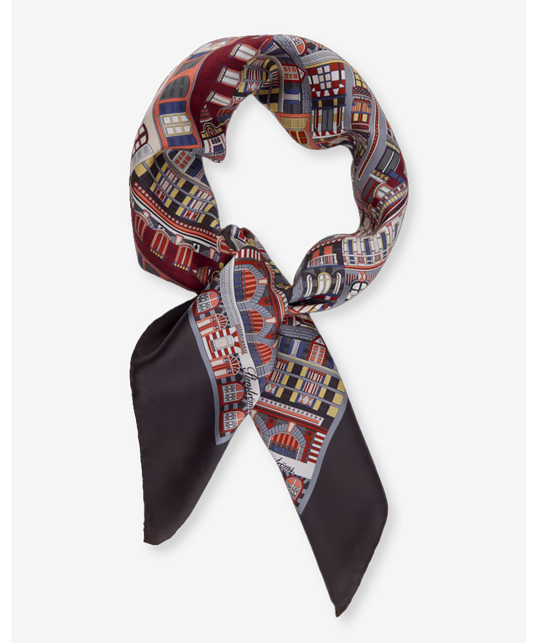 Mönstrad scarf i siden från Stenströms. Motivet föreställer olika hus. Mått: 90x90cm.