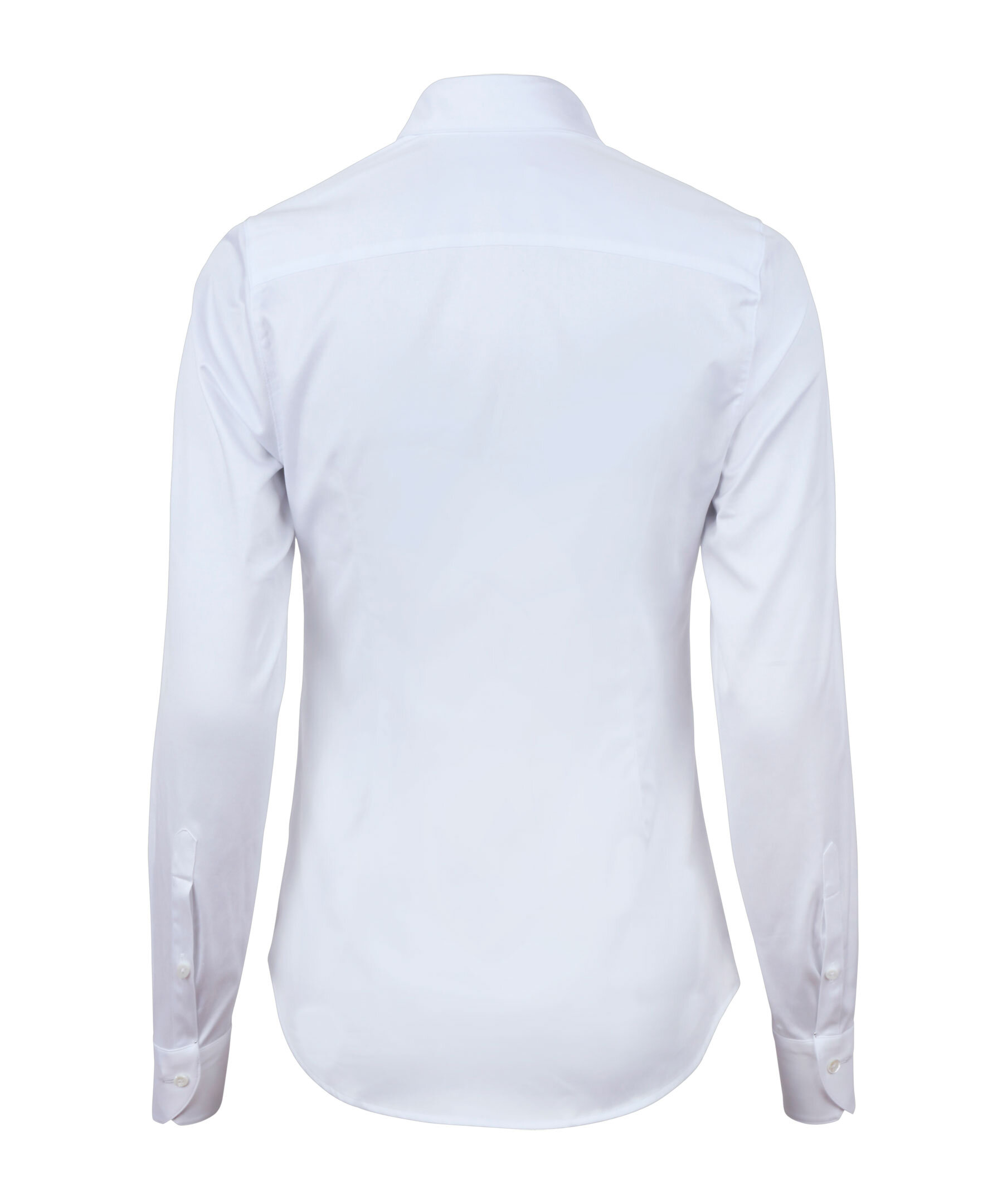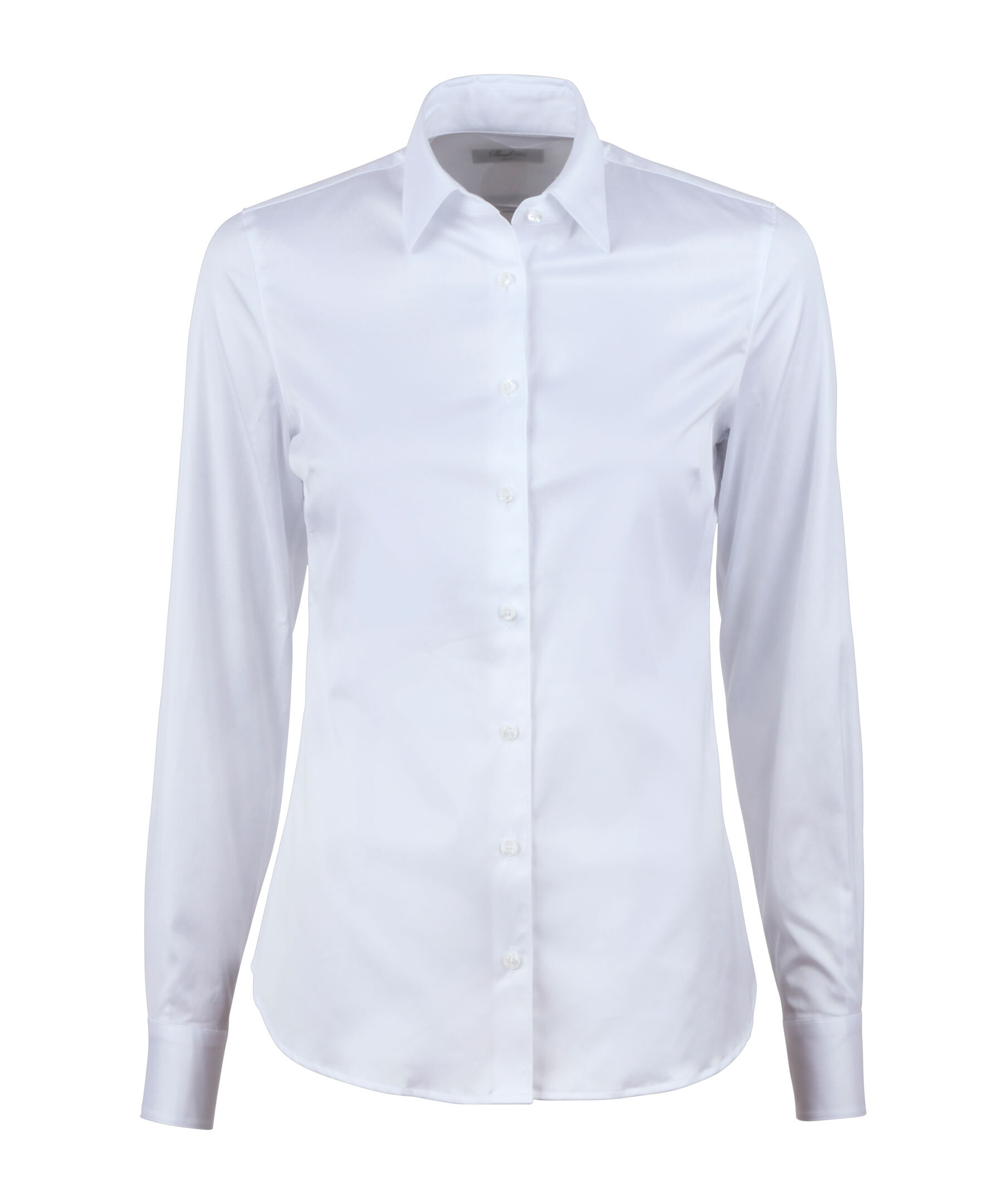 Denna skjorta är tillverkad av bomull och har en feminin passform. Skjortan har pärlemorknappar, enkla manschetter och en klassisk krage. Detta plagg är en Stenströms Essential, och har en given plats i allas garderob.