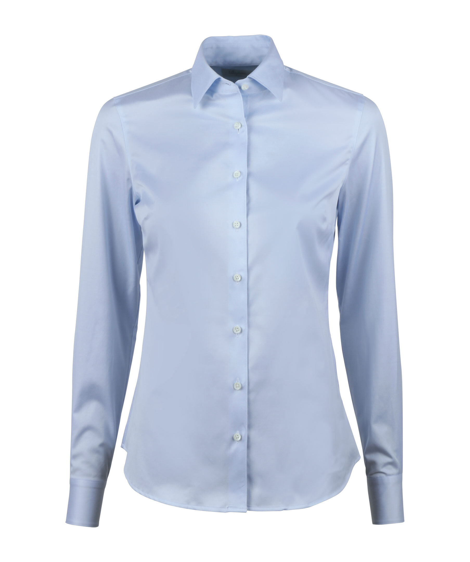 Denna skjorta är tillverkad av bomull och har en feminin passform. Skjortan har pärlemorknappar, enkla manschetter och en klassisk krage. Detta plagg är en Stenströms Essential, och har en given plats i allas garderob.