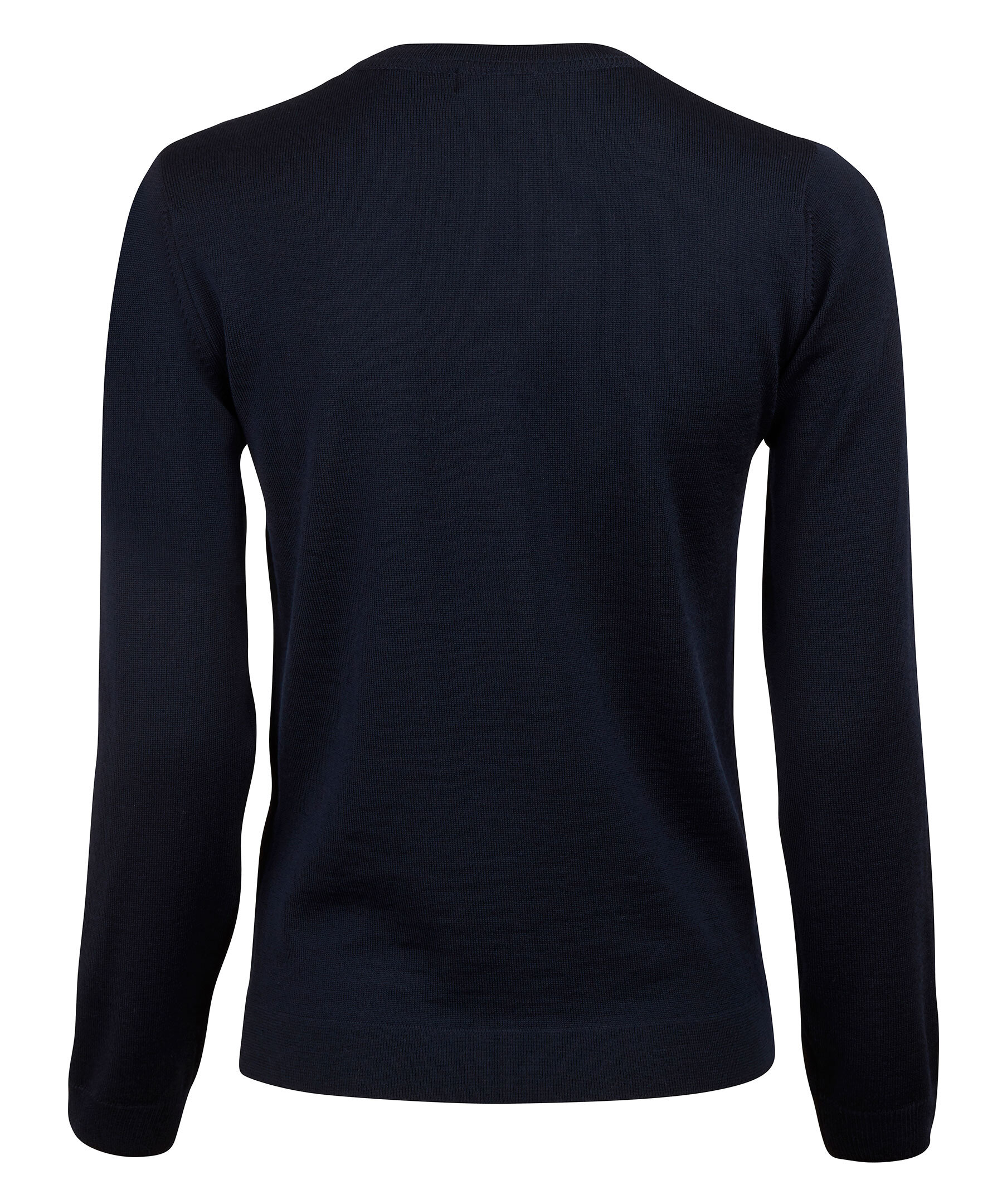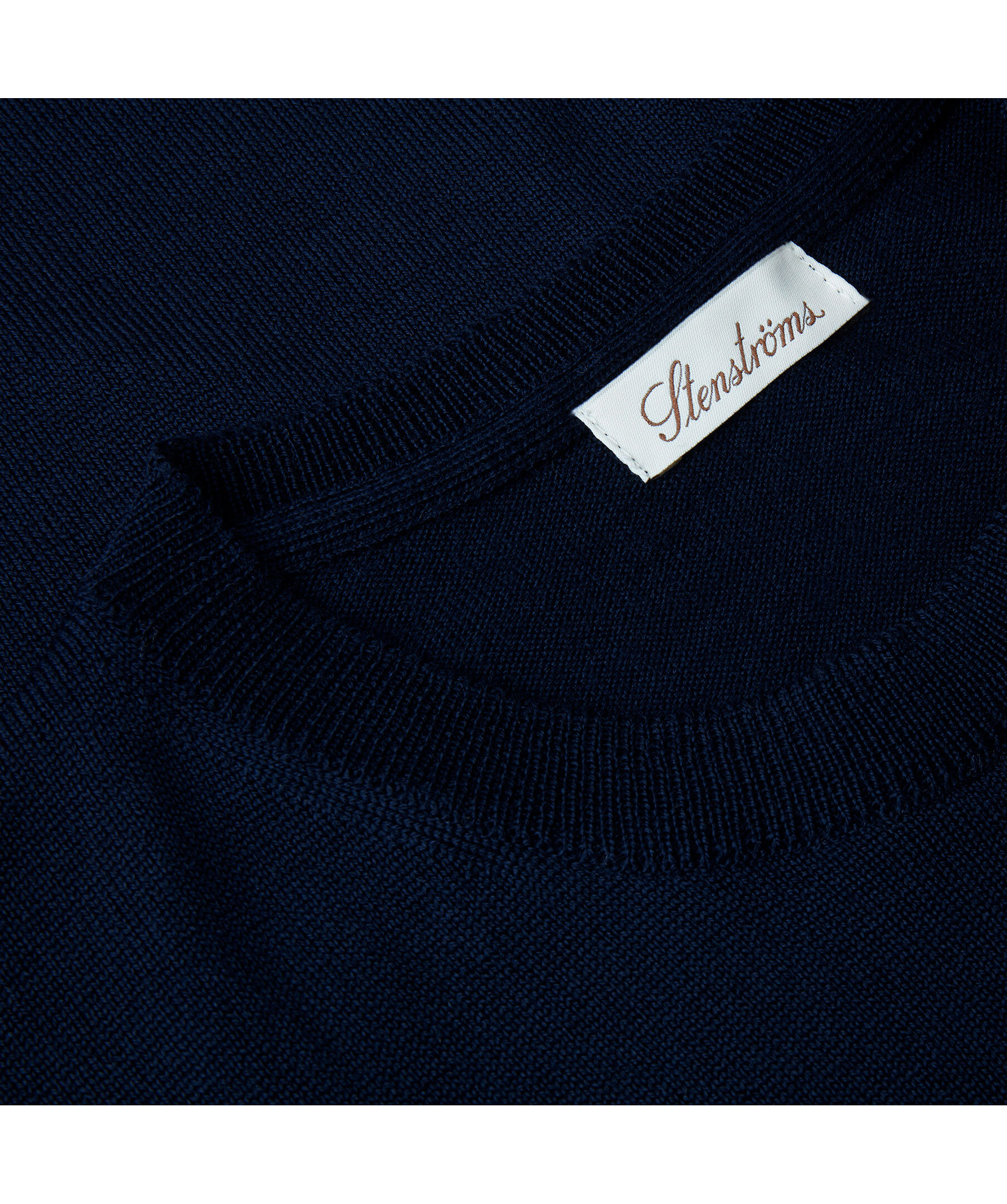 Marinblå finstickad tröja från Stenströms. Ribbstickade detaljer och rundad halsringning. Tillverkad i 100% merinoull.