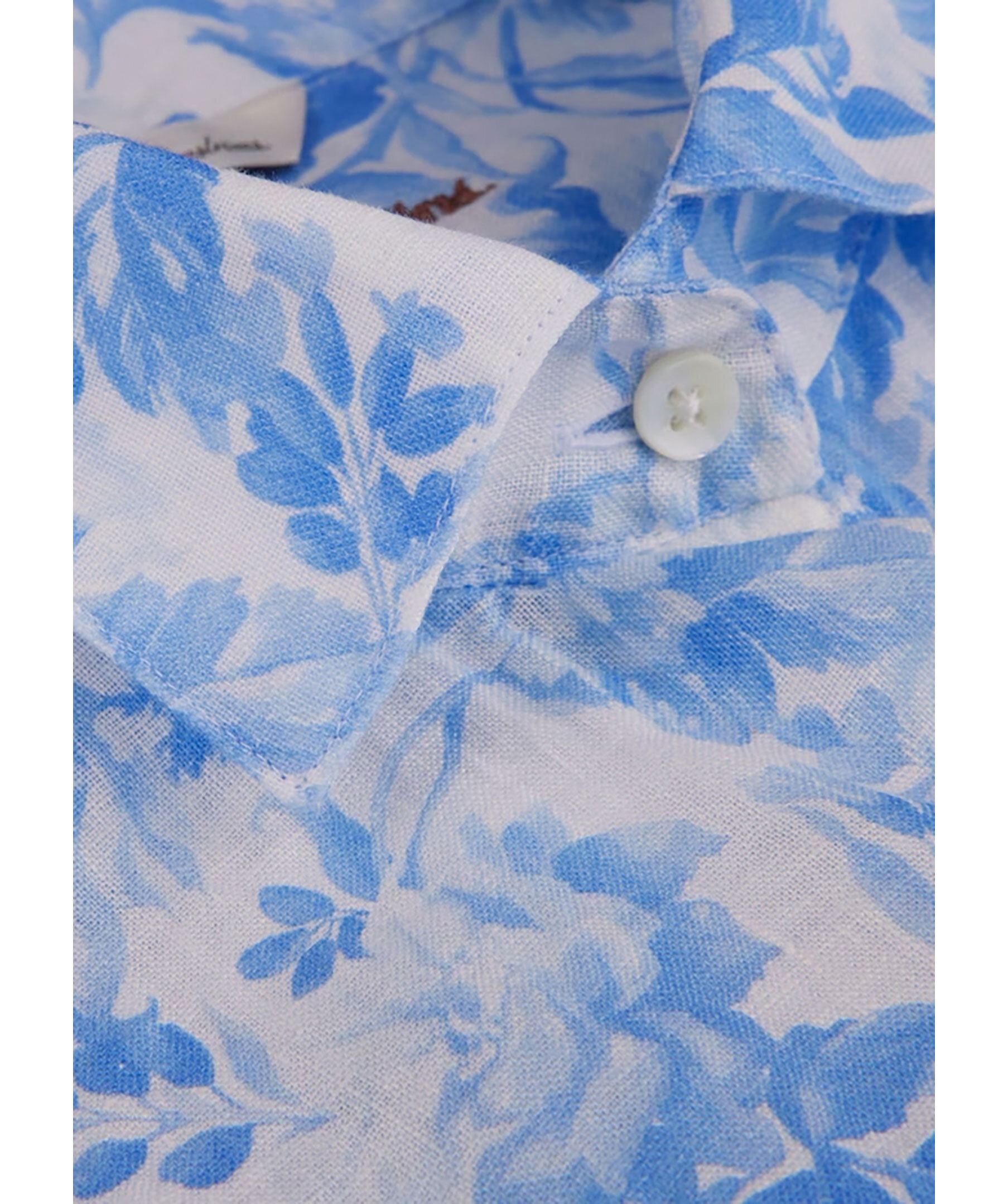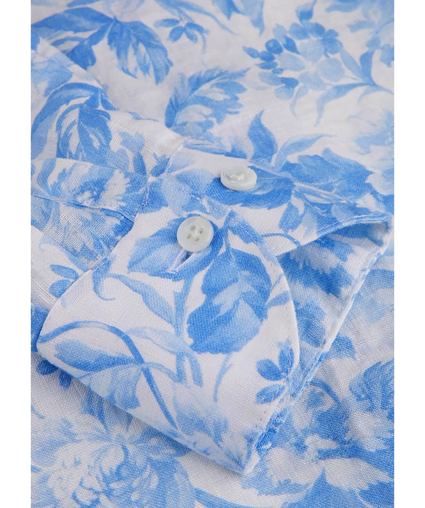 Blå och vit blommönstrad skjorta från Stenströms. Tillverkad i 100% linne. Skjortan har vita knappar, enkla manschetter och en klassisk krage. Oversized passform.