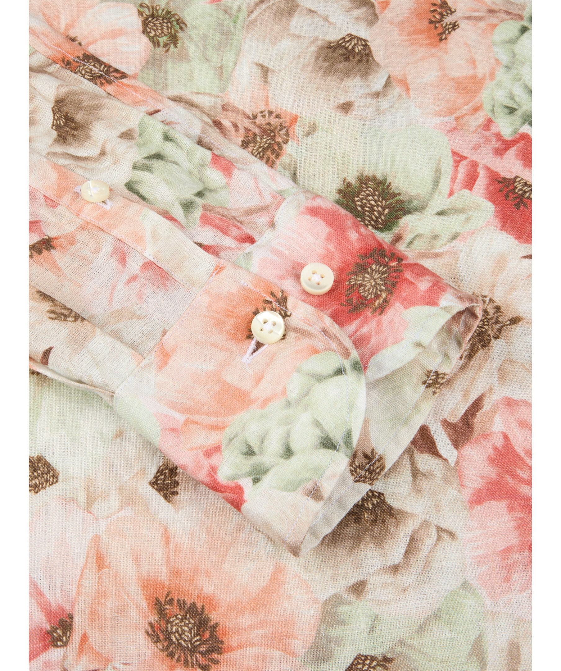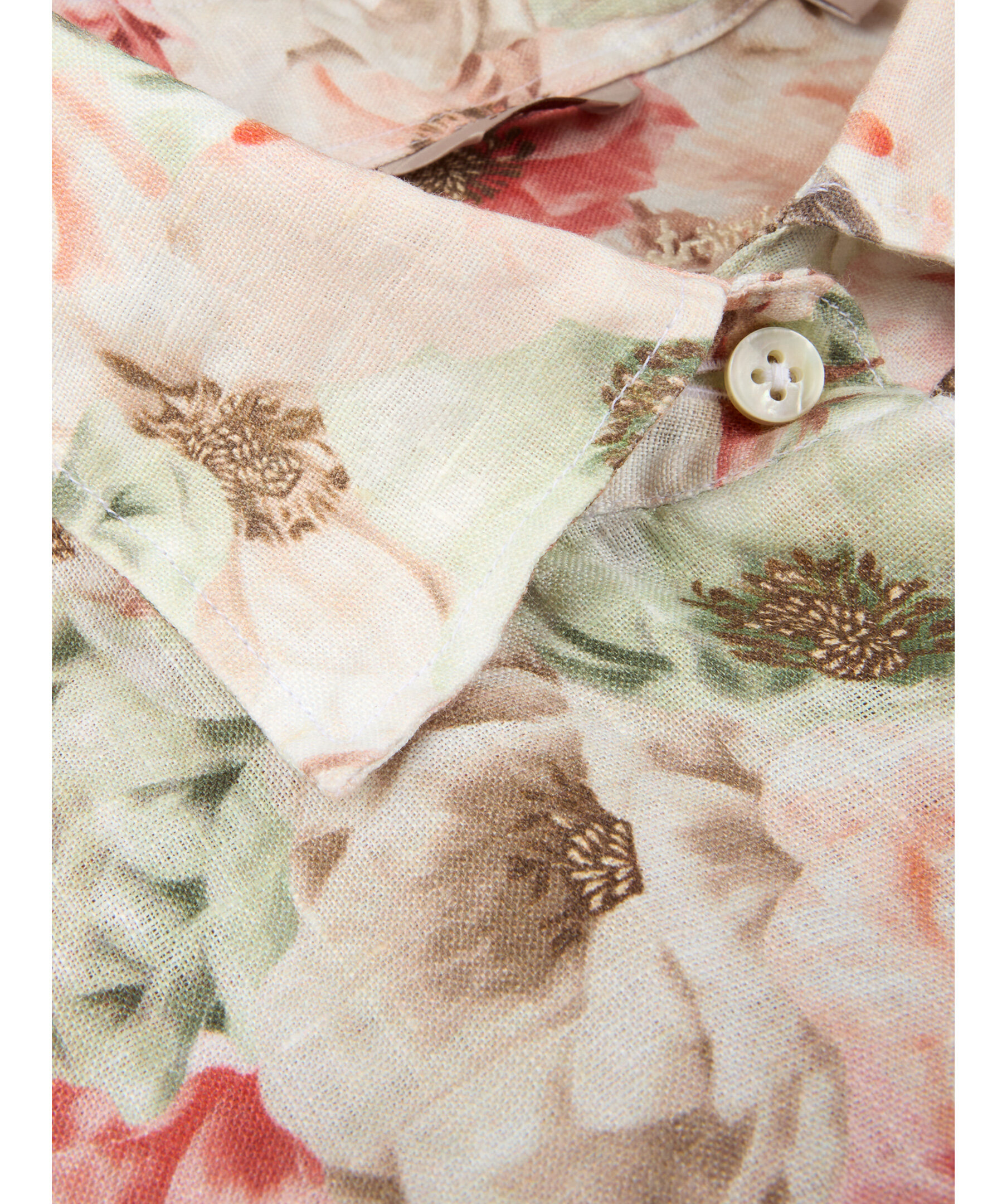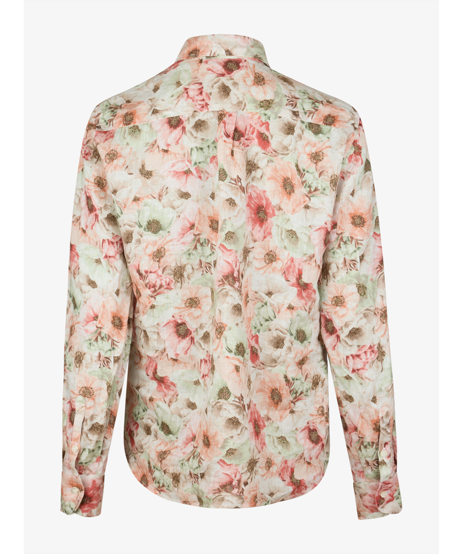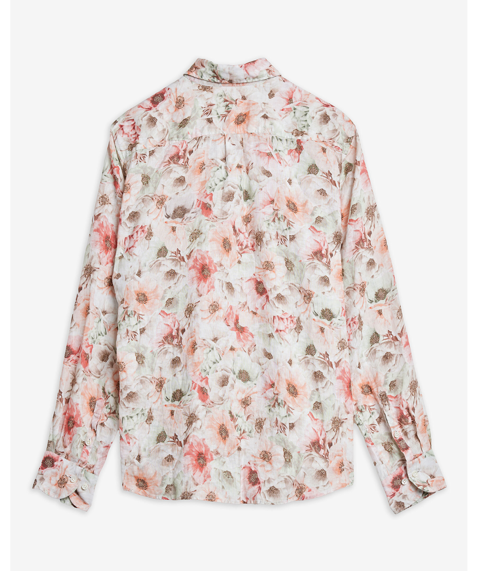 Ljusorange blommig skjorta är tillverkad av linne och har en oversized passform. Skjortan har pärlemorknappar, enkla manschetter och en klassisk krage.