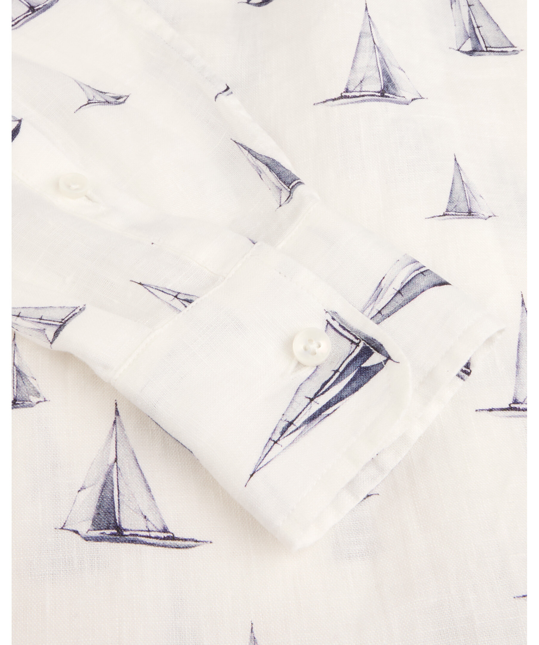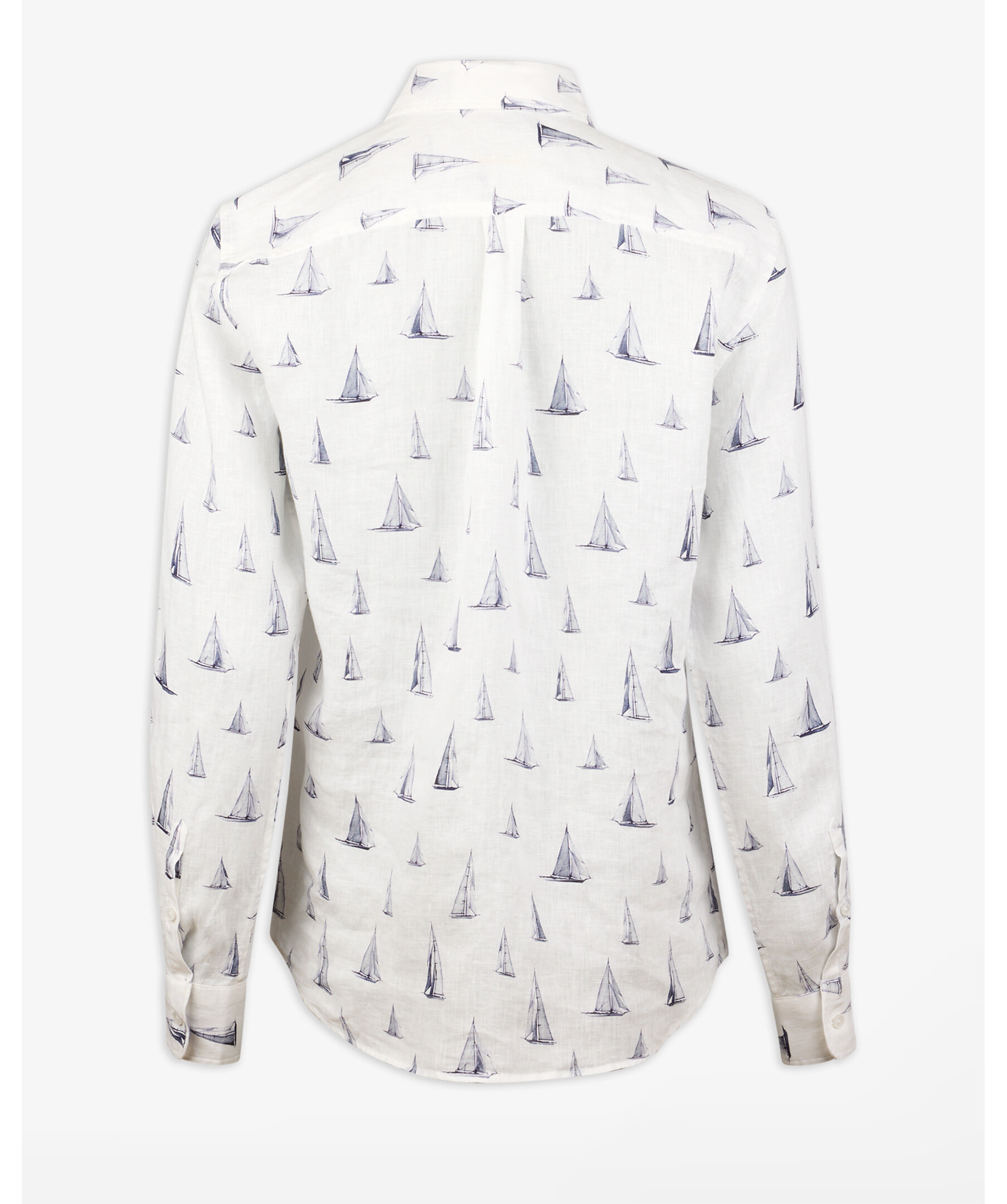 Mönstrad skjorta tillverkad av linne och har en avslappnad passform. Skjortan har pärlemorknappar, enkla manschetter och en klassisk krage.