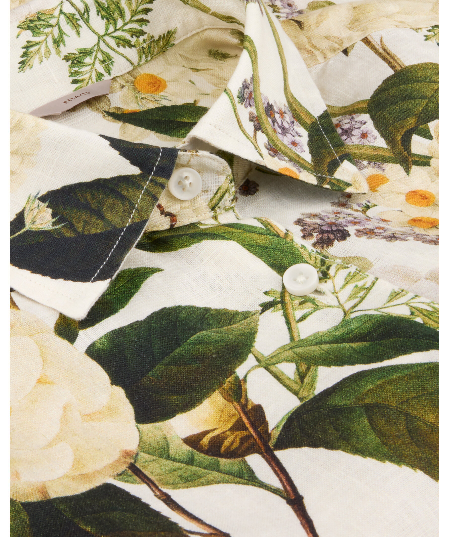 Mönstrad skjorta tillverkad av linne och har en avslappnad passform. Skjortan har pärlemorknappar, enkla manschetter och en klassisk krage.