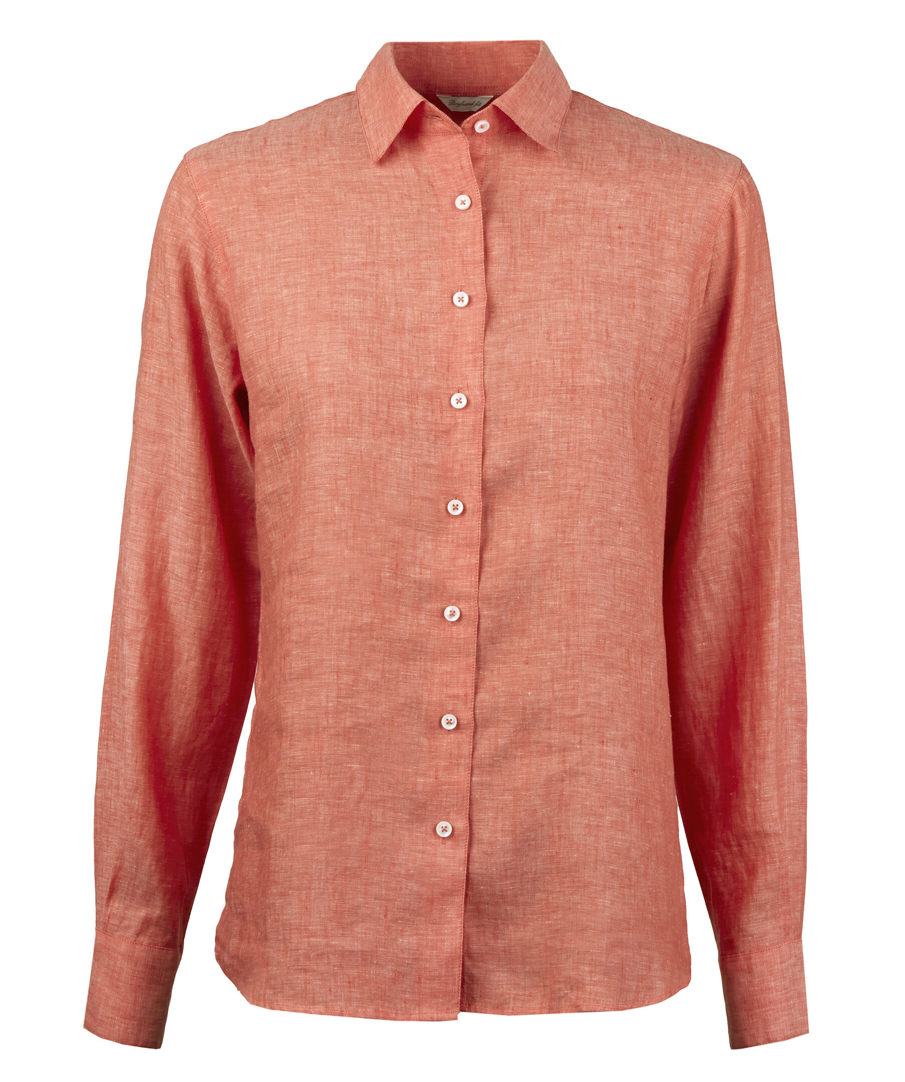 Orange ledig skjorta med avslappnad, lös passform. Designad i linne med slät knappslå, klassisk krage och enkla manschetter.