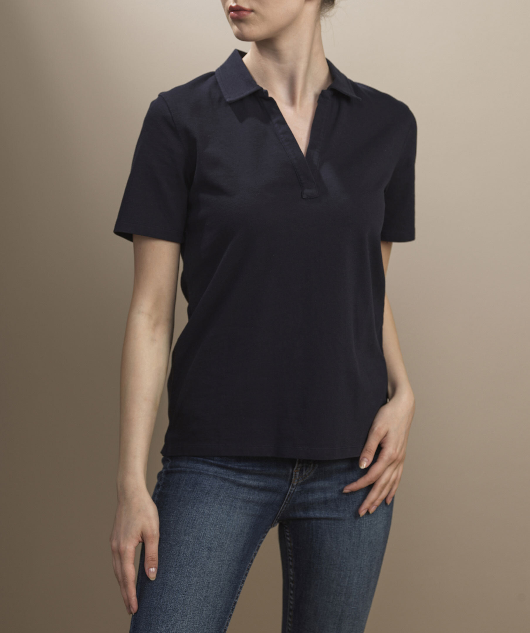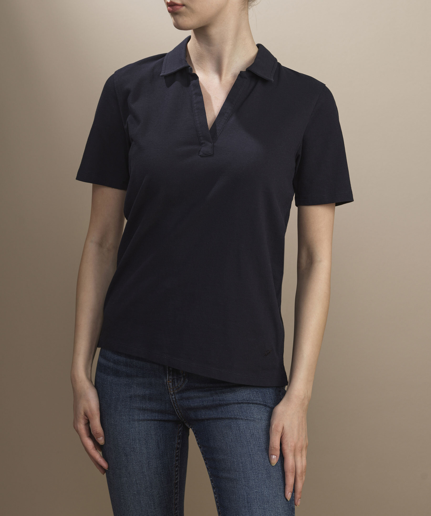 En klassisk kortärmad t-shirt i bomull piquet är ett nyckelplagg i var kvinnas garderob. Skuren för en feminin passform med en klassisk krage, V-ringad hals kosta ärmar och små slitsar i sidorna. Ett enkelt sätt att uppdatera din lediga vår -och sommarstil.