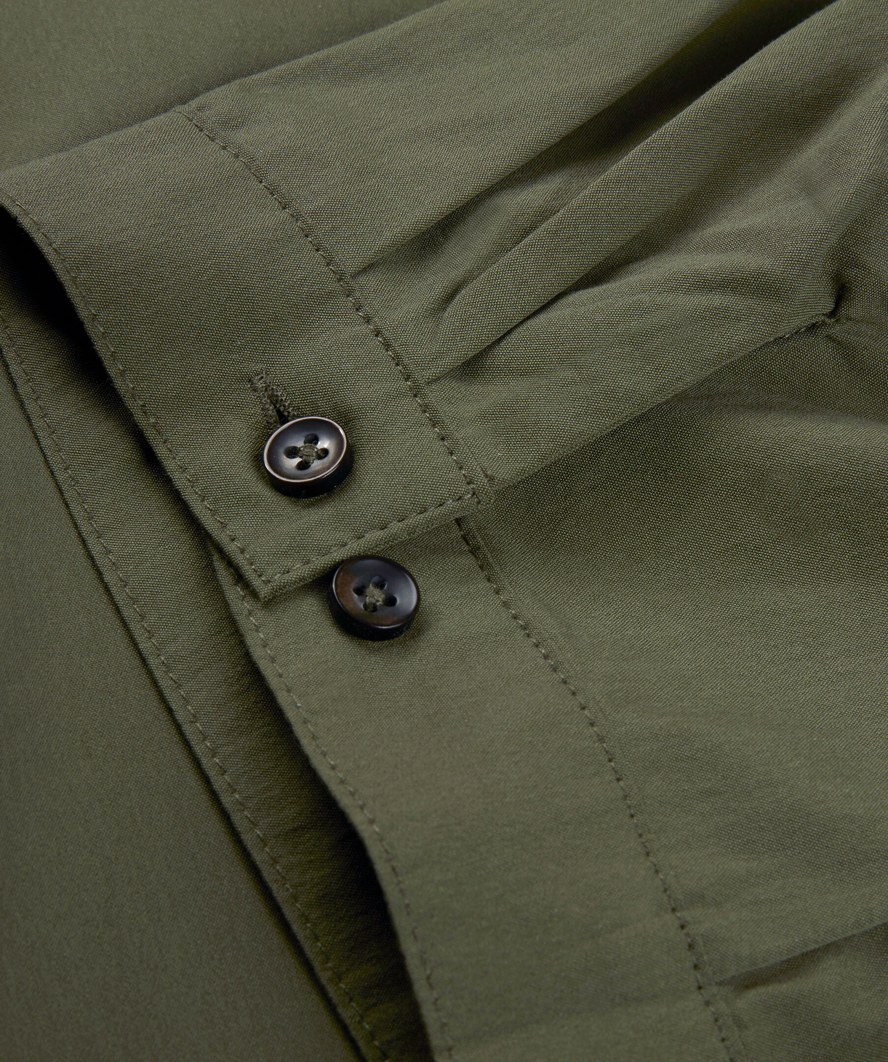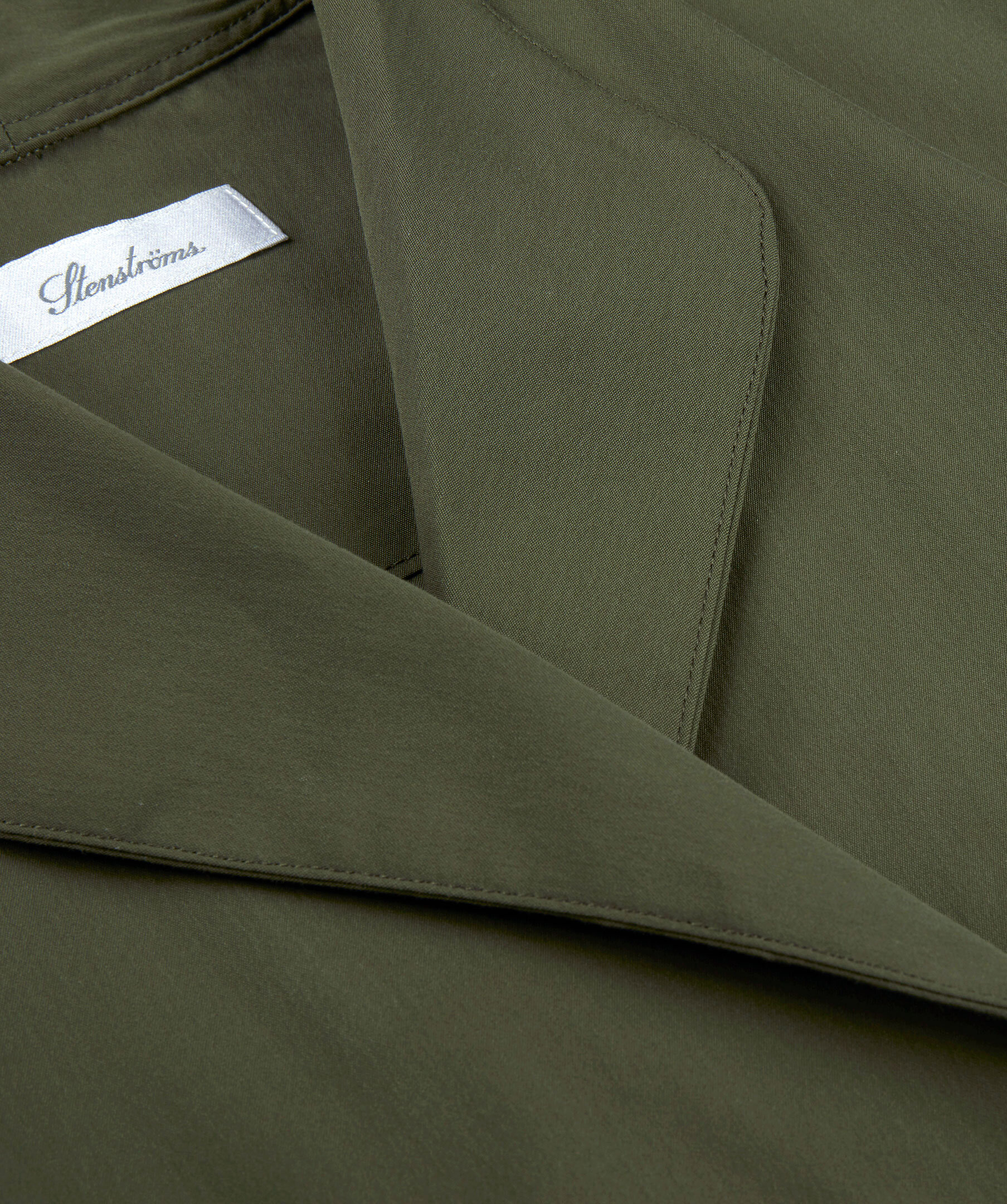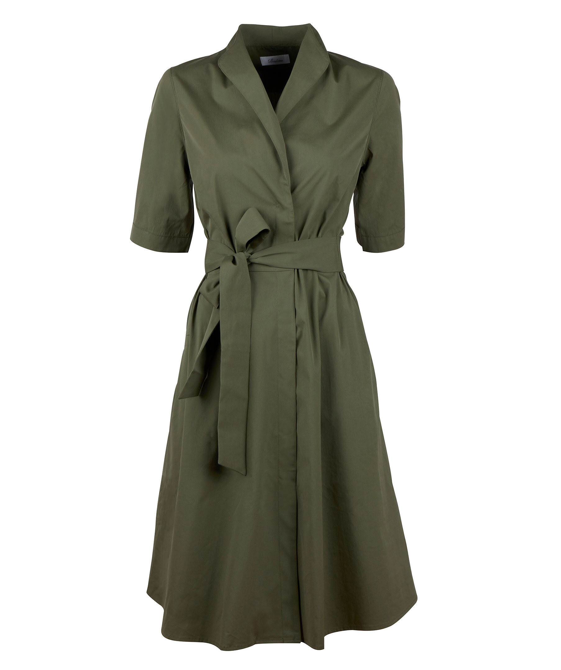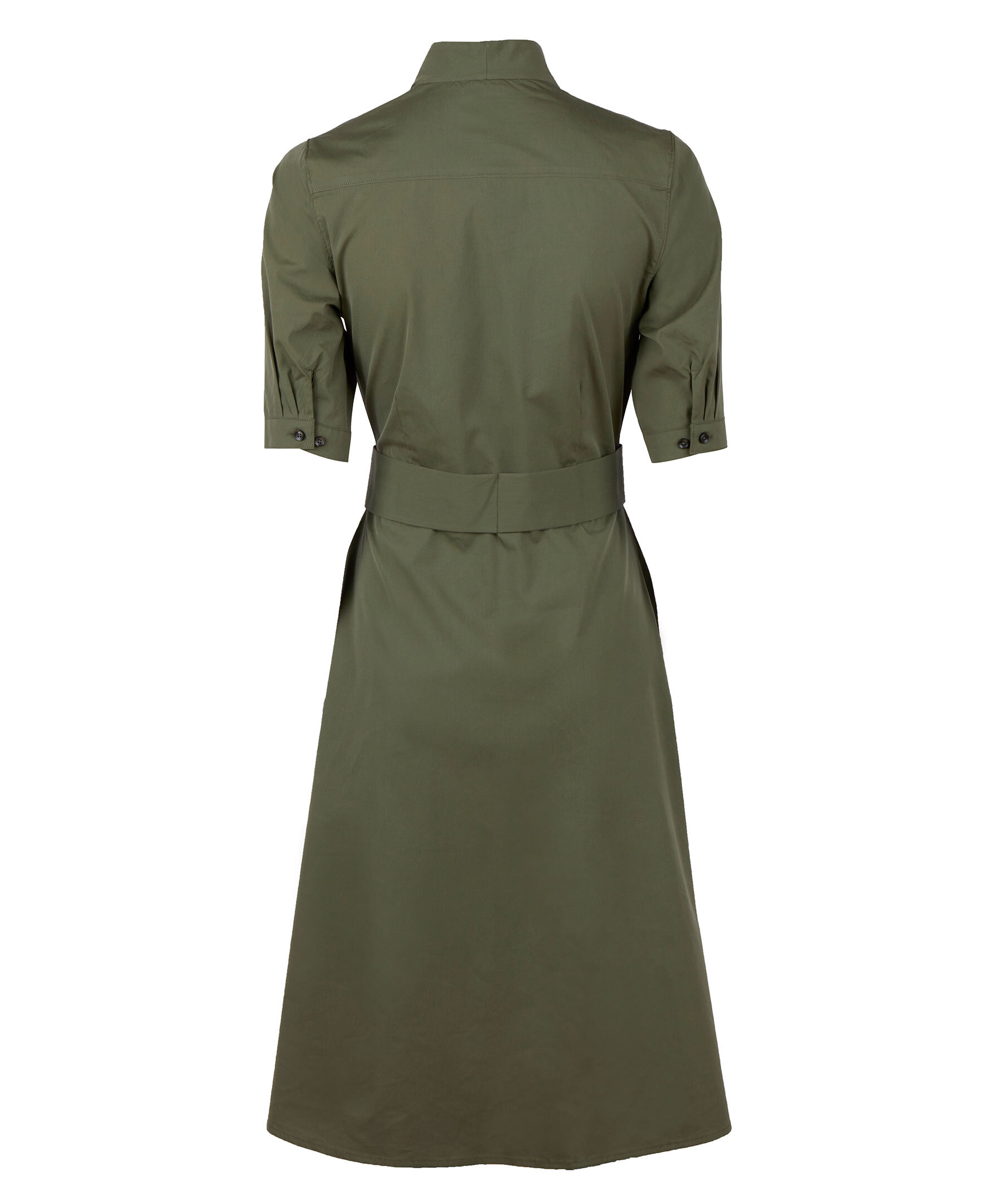 Omlottklänning. Designad i poplin stretch med randigt mönster, rundade slag framtill, korta ärmar med två justerbara knapplägen. Klänningen har ett band i midjan och stängs med dolda tryckknappar framtill.