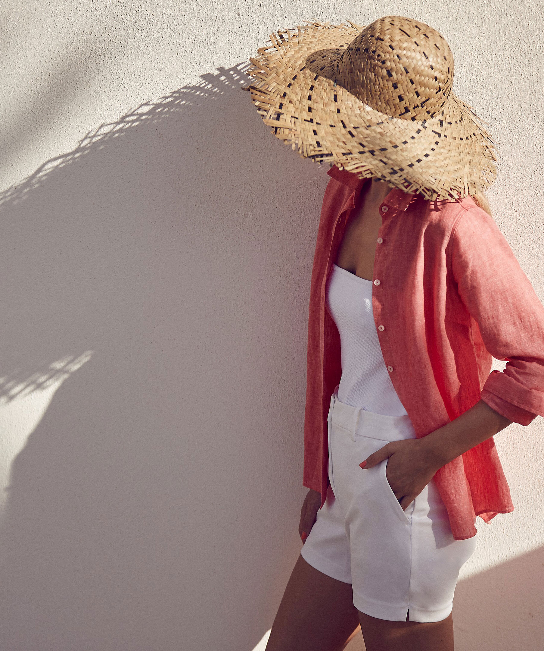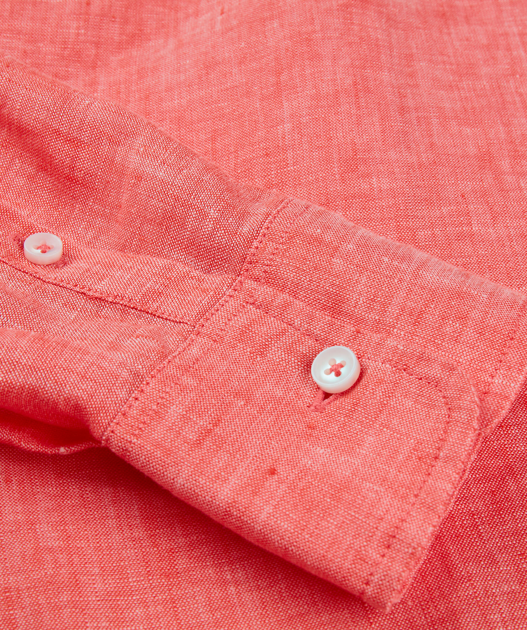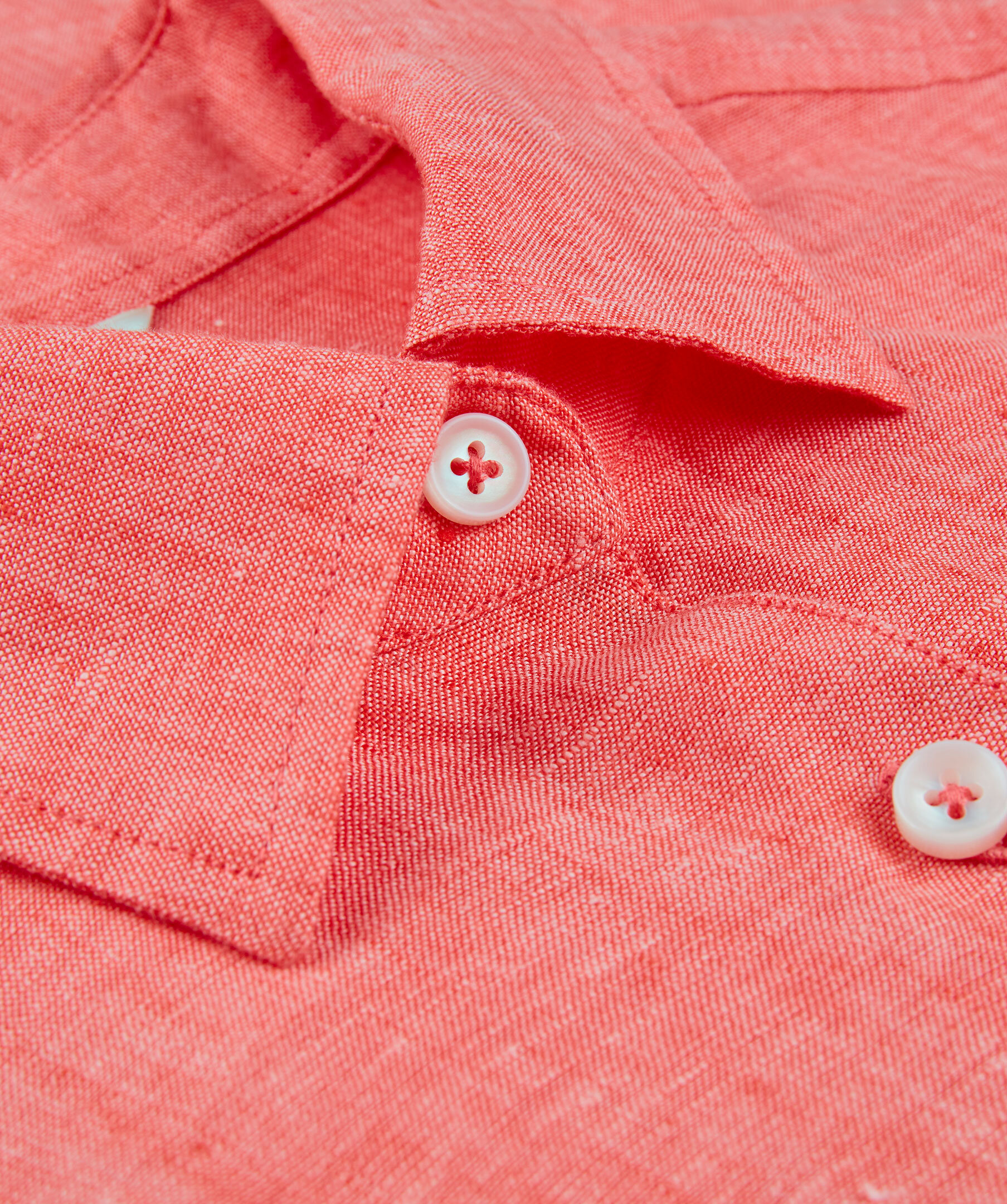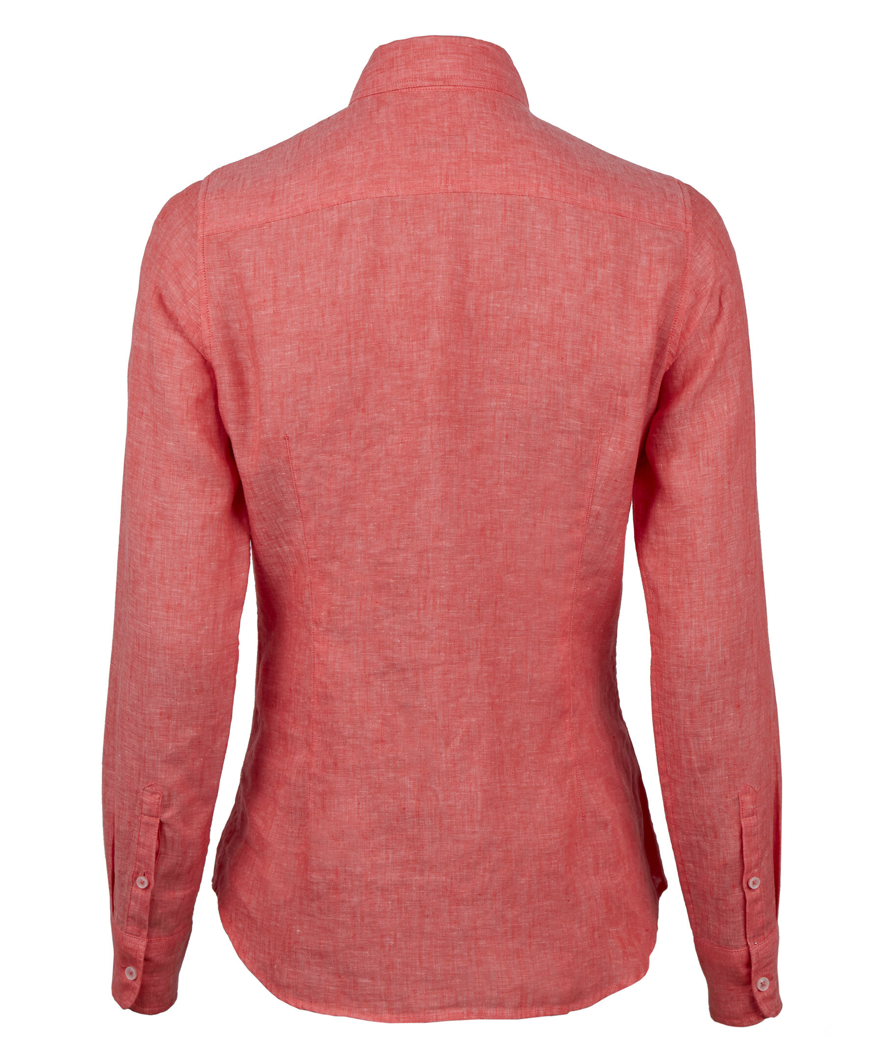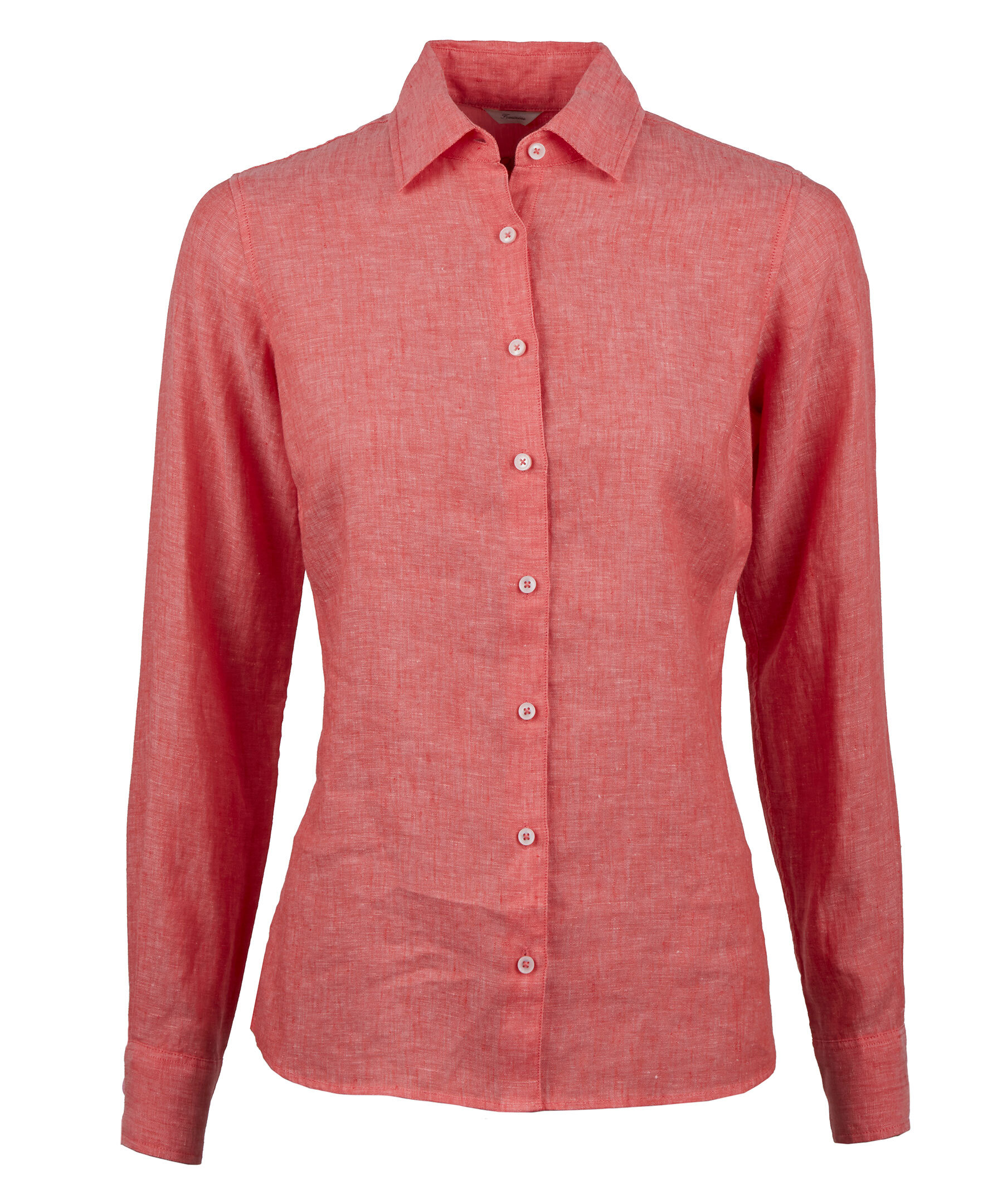 Korallröd skjorta med Feminin passform. Tillverkad i linne med en slät knappslå, enkla manschetter och klassisk krage.